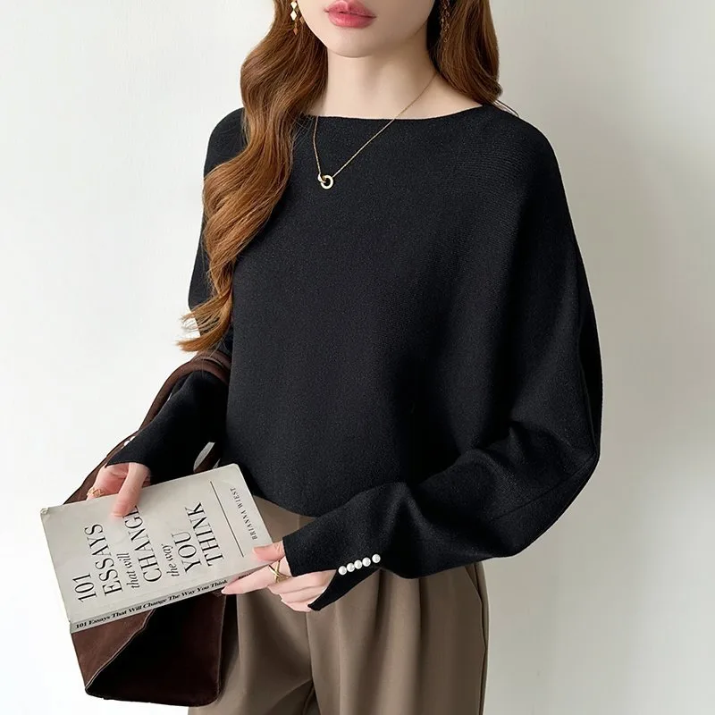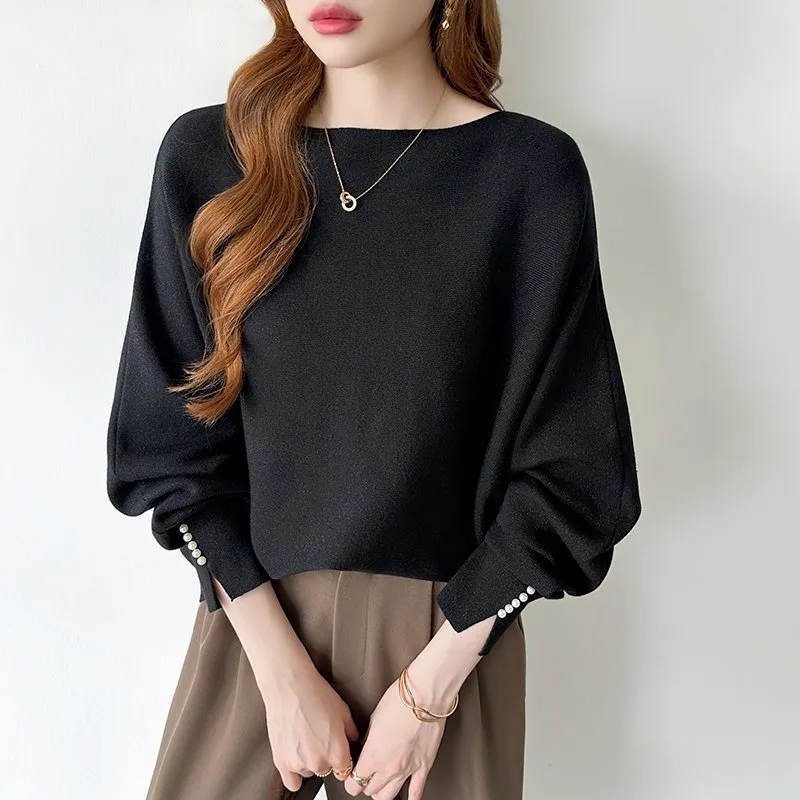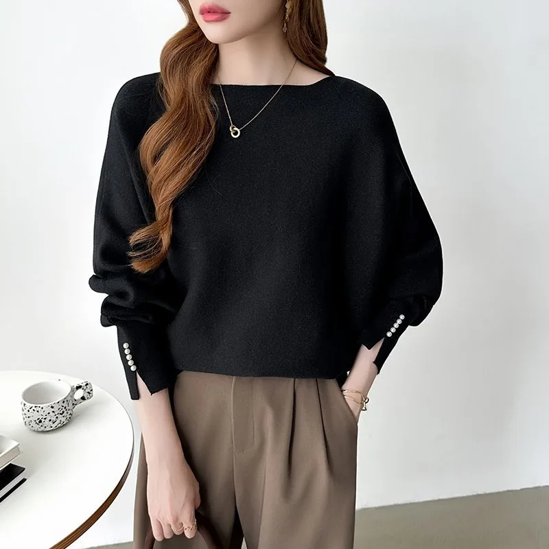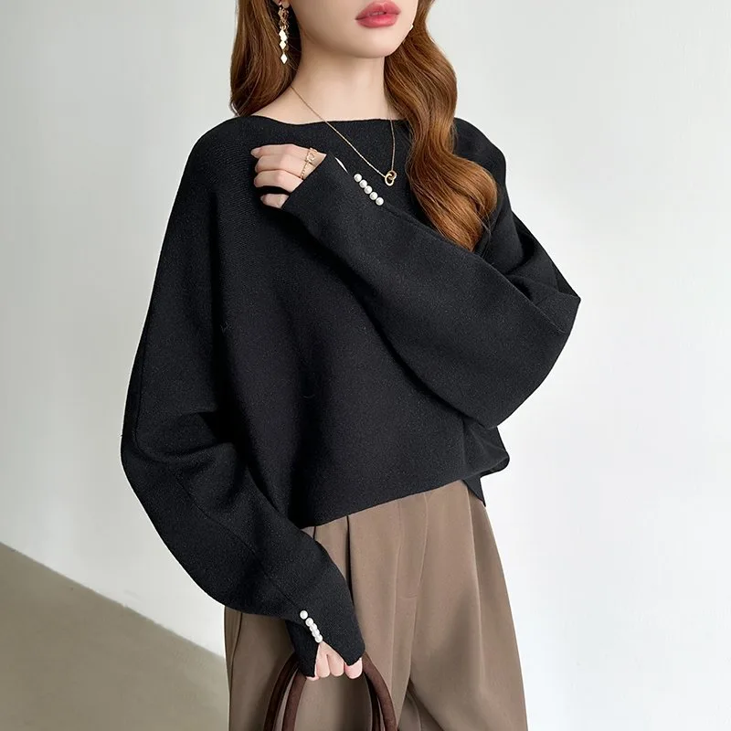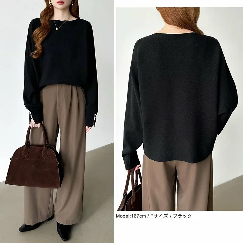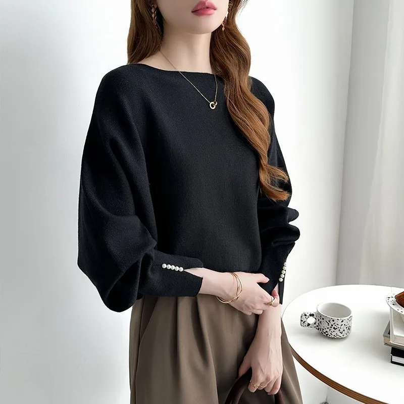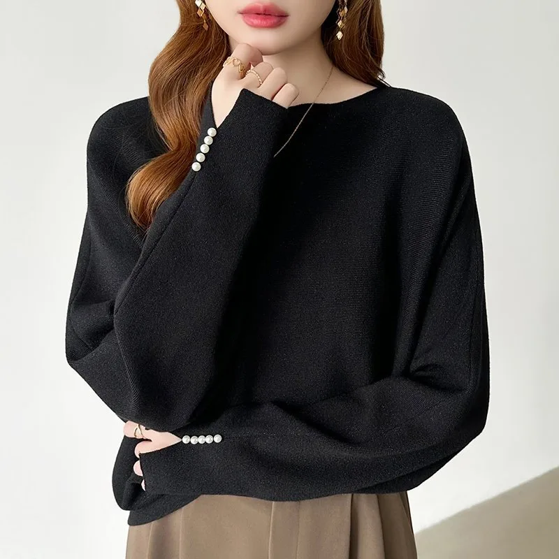 Элегантные блестки и жемчуг добавляют гламура этому трикотажному рукаву-летучей мыши с жемчужной отделкой.