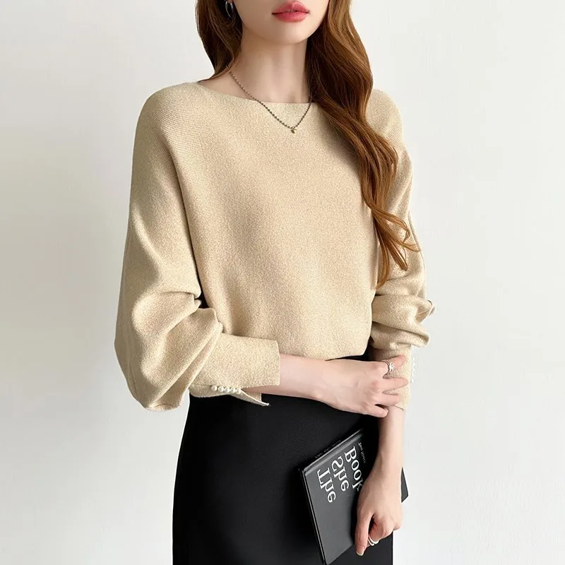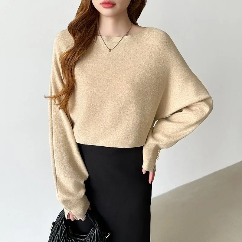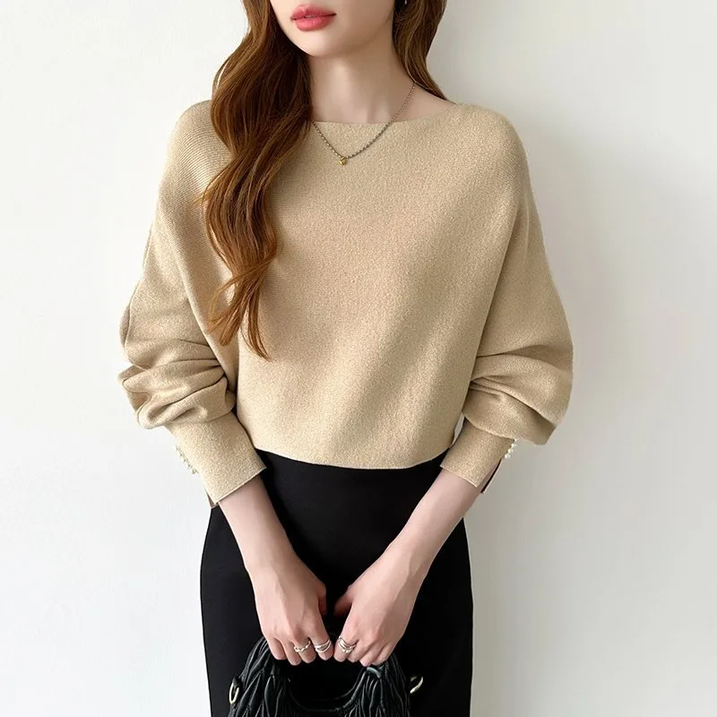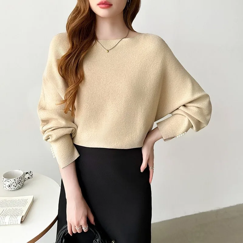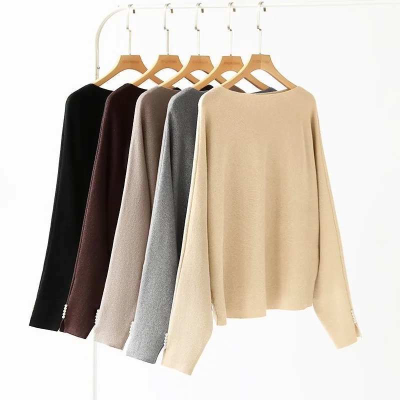 Элегантные блестки и жемчуг добавляют гламура этому трикотажному рукаву-летучей мыши с жемчужной отделкой.