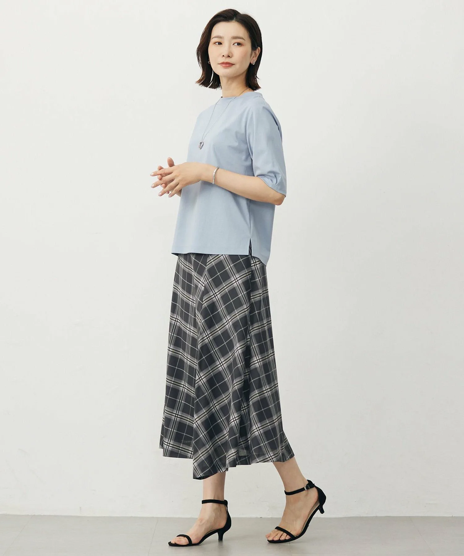 Материал: Изготовленная из хлопка с очень длинными волокнами, эта компактно скрученная пряжа минимизирует пушистость, в результате чего получается красивый блеск и мягкость. Эта пряжа обеспечивает превосходный баланс влагоудержания и воздухопроницаемости. Эта хлопчатобумажная пряжа переплетена с пряжей OHSII, смесью двух типов полиэстера, разработанной компанией Toray, что позволяет создать удобную, немнущуюся одежду с превосходной эластичностью, драпировкой и упругостью. Трикотажное полотно изготовлено из плотного двойного трикотажа 40-го калибра, который помогает сохранять форму, и обработано антибактериальными, дезодорирующими и охлаждающими свойствами. Его воздухопроницаемость и быстрое высыхание делают его комфортным материалом для летней одежды. Товары из того же материала: Топ с вырезом-лодочкой (KKGJGA0801) Большой размер (KKGTGA0801) Маленький размер (KKG0GA0801) Топ-клеш (KKGJGA0802) Большой размер (KKGTGA0802) Маленький размер (KKG0GA0802) Примечание: Изображения товаров являются образцами и могут быть изменены без предварительного уведомления. Модель: H174, B80, W61, H86