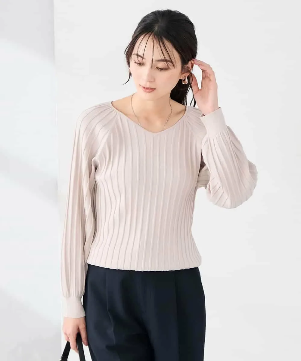 Трикотаж с V-образным вырезом и пышными рукавами: K2FED59039