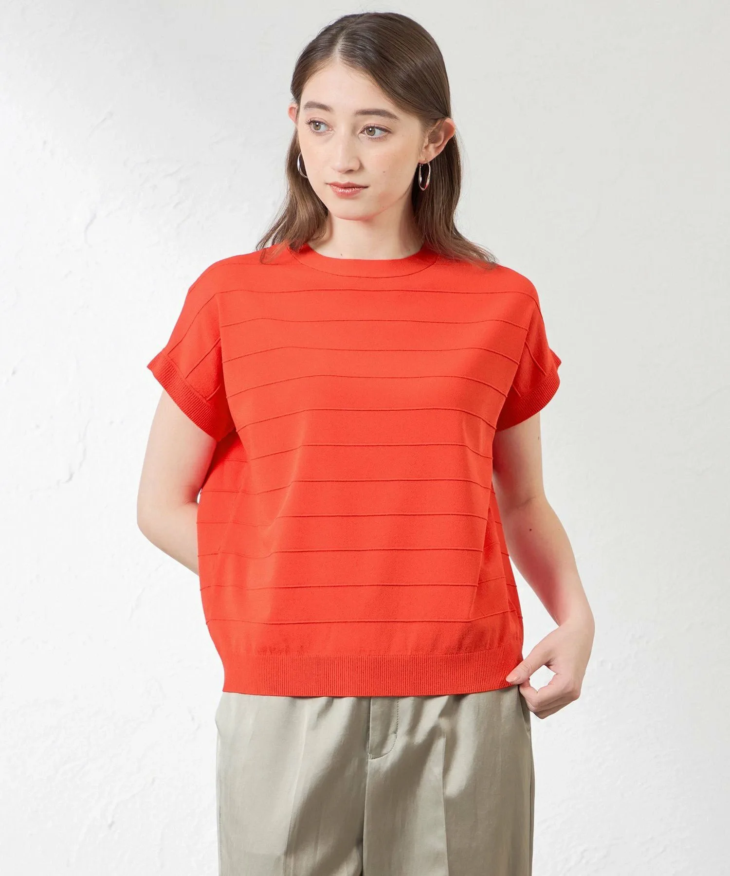 Изготовлена из эластичного материала с матовой, гладкой и сухой текстурой. Имеет умеренную драпировку, а эластичность делает ее мягкой и комфортной в носке. Материал с защитой от УФ-излучения обеспечивает комфорт даже летом.