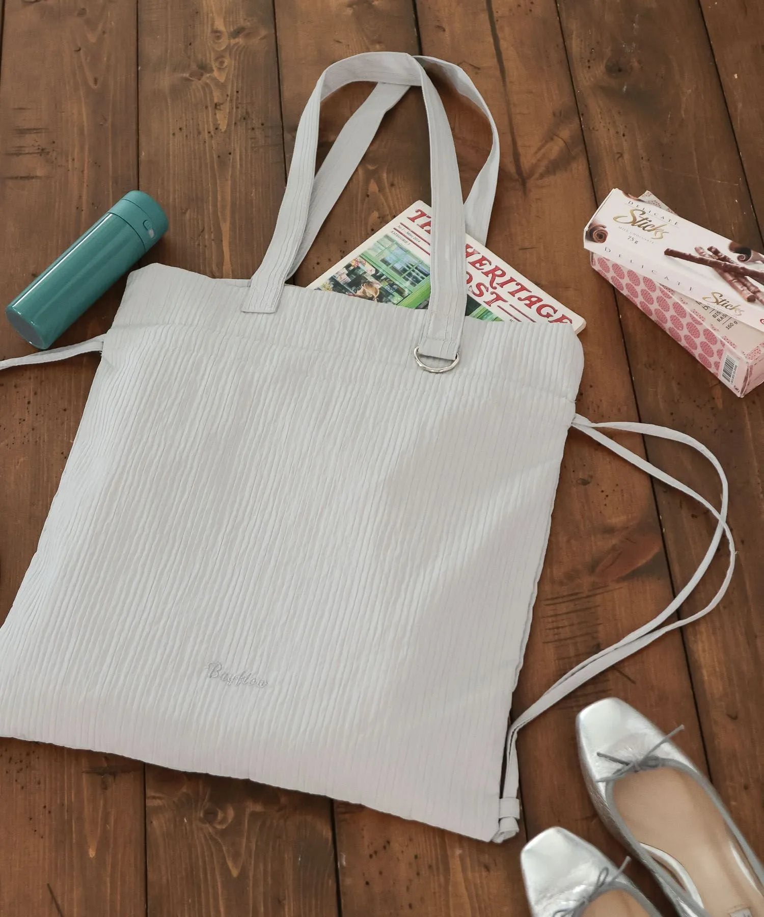 Она может превратиться в сумку на завязках, если затянуть отверстие, что делает ее многофункциональной вещью.