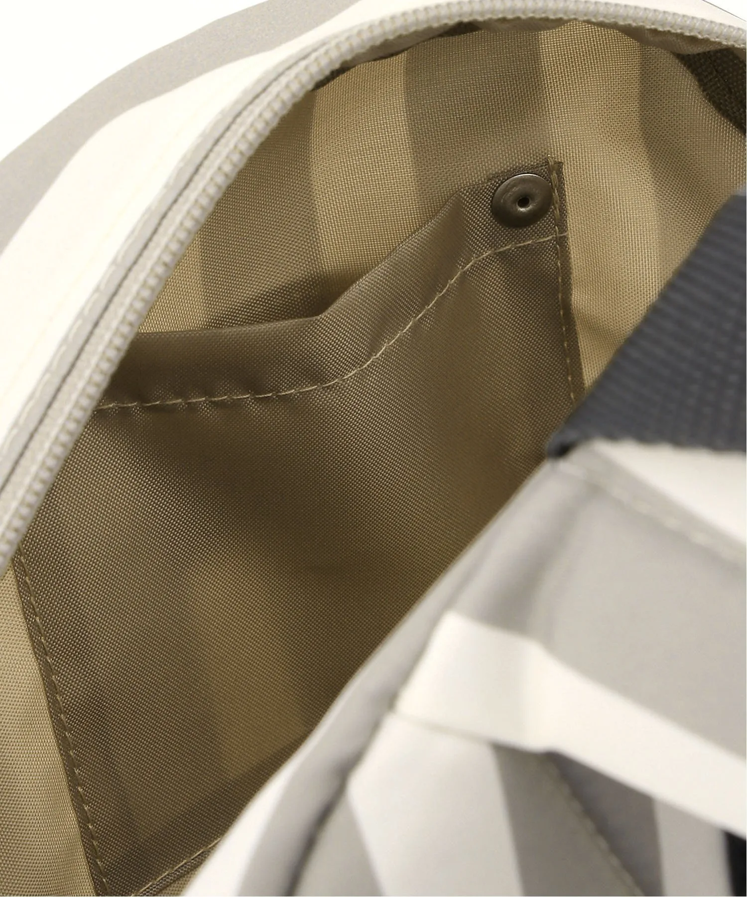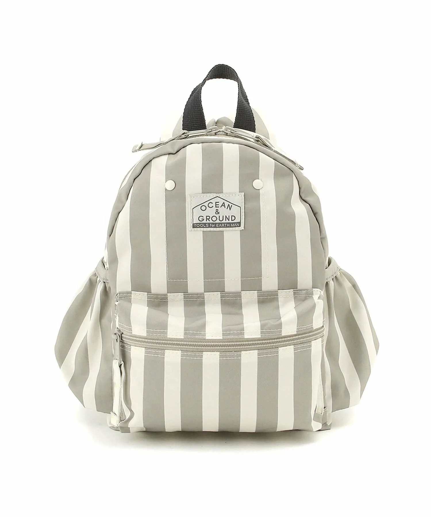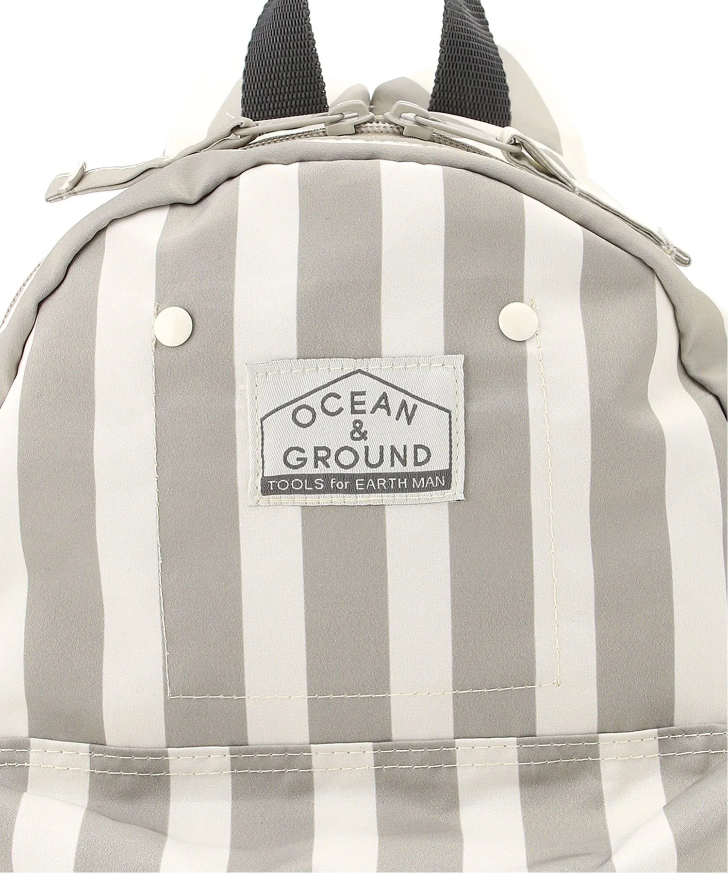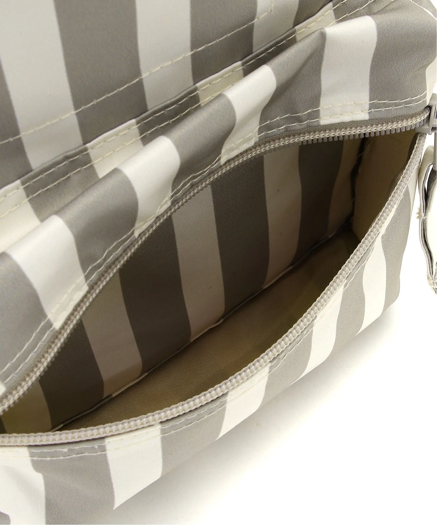 Рюкзак с узором из случайных точек натурального цвета и однотонным полосатым принтом по всей поверхности.