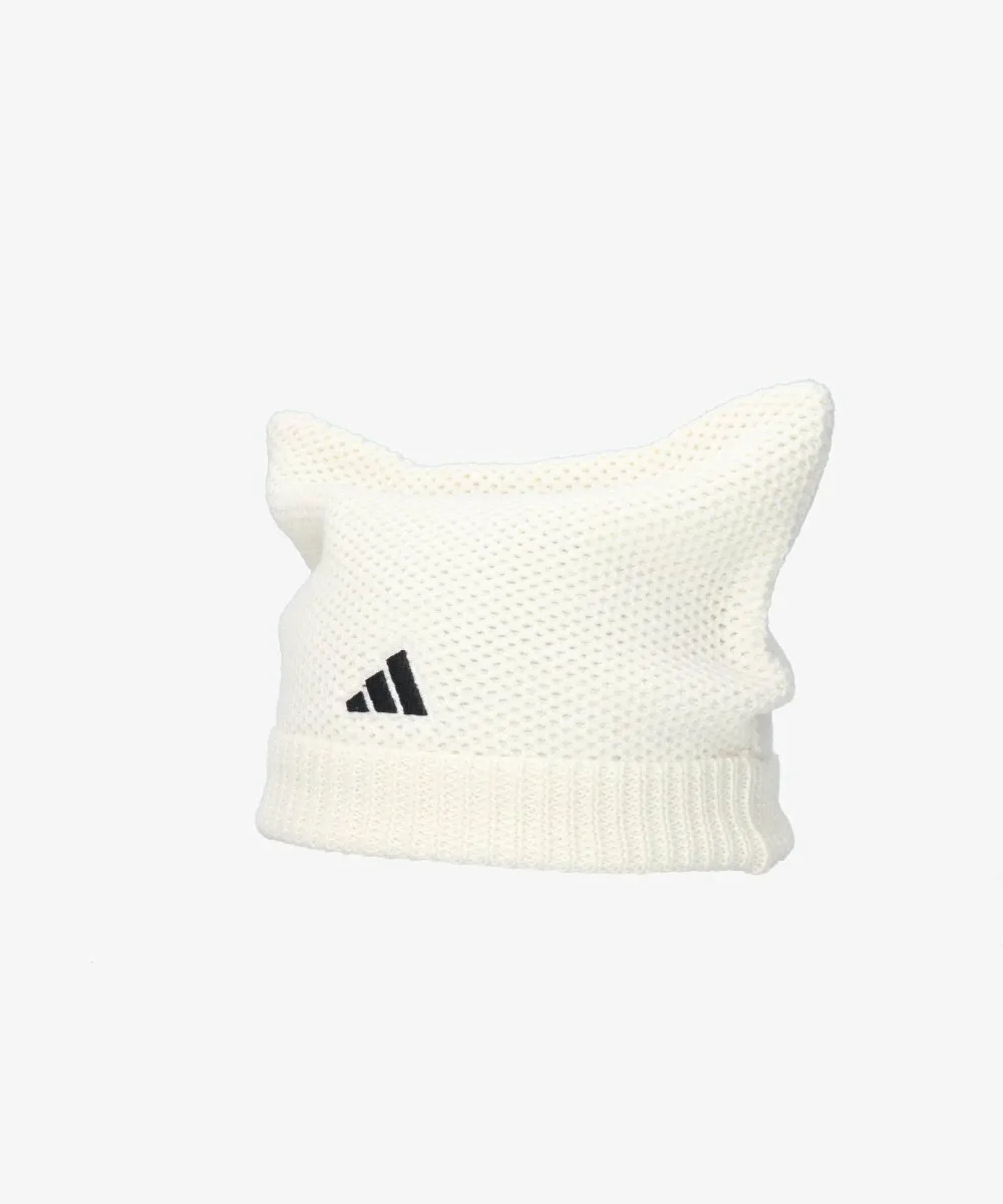 Представляем вязаную шапку adidas с кошачьими ушками. Эта шапка квадратной вязки изготовлена из переработанной полиэстерной пряжи. Милая, модная вещь, которая при ношении создает силуэт, напоминающий кошачьи ушки. Свободный крой и сетчатая структура обеспечивают отличную воздухопроницаемость.