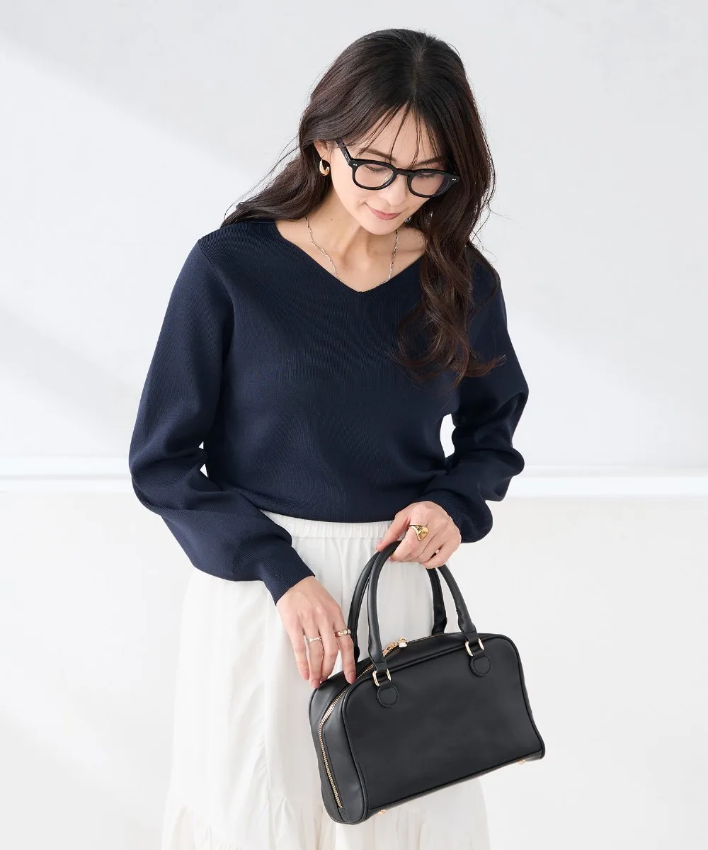Трикотаж с V-образным вырезом и пышными рукавами: K2FED59039