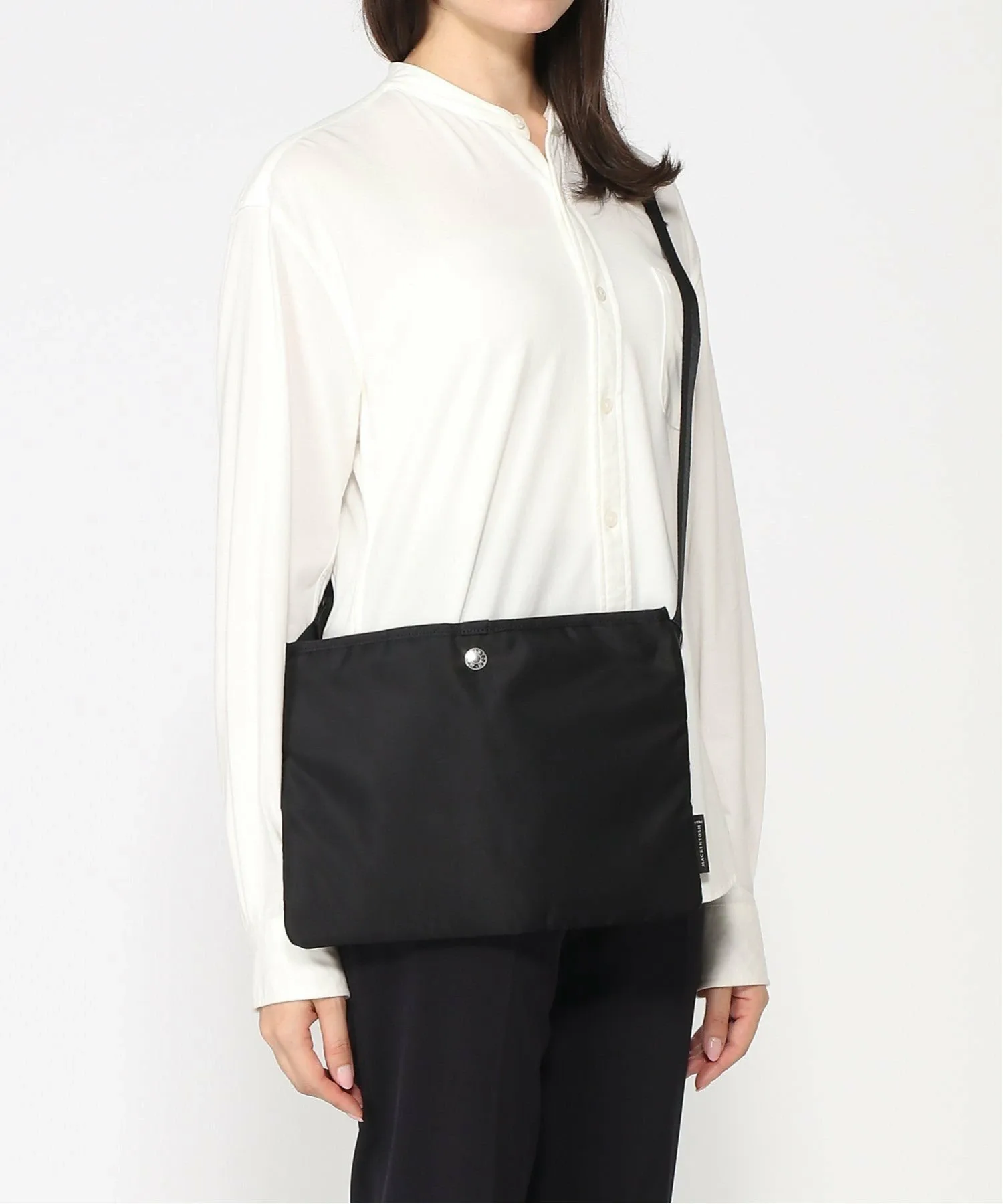 Глянцевые точечные пуговицы, используемые на фирменном прорезиненном пальто Макинтоша, добавляют акцент. [RAINTEC NYLON]