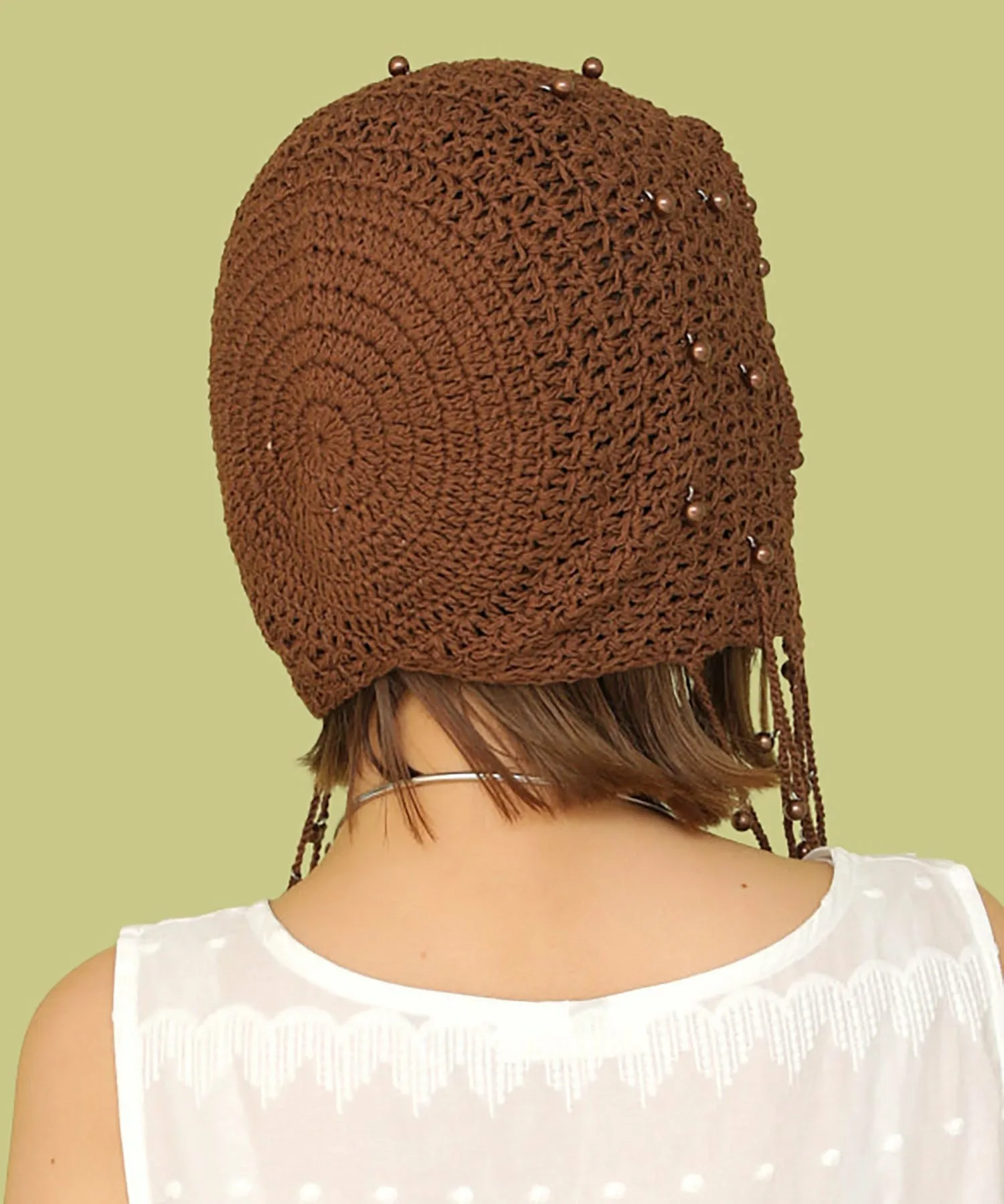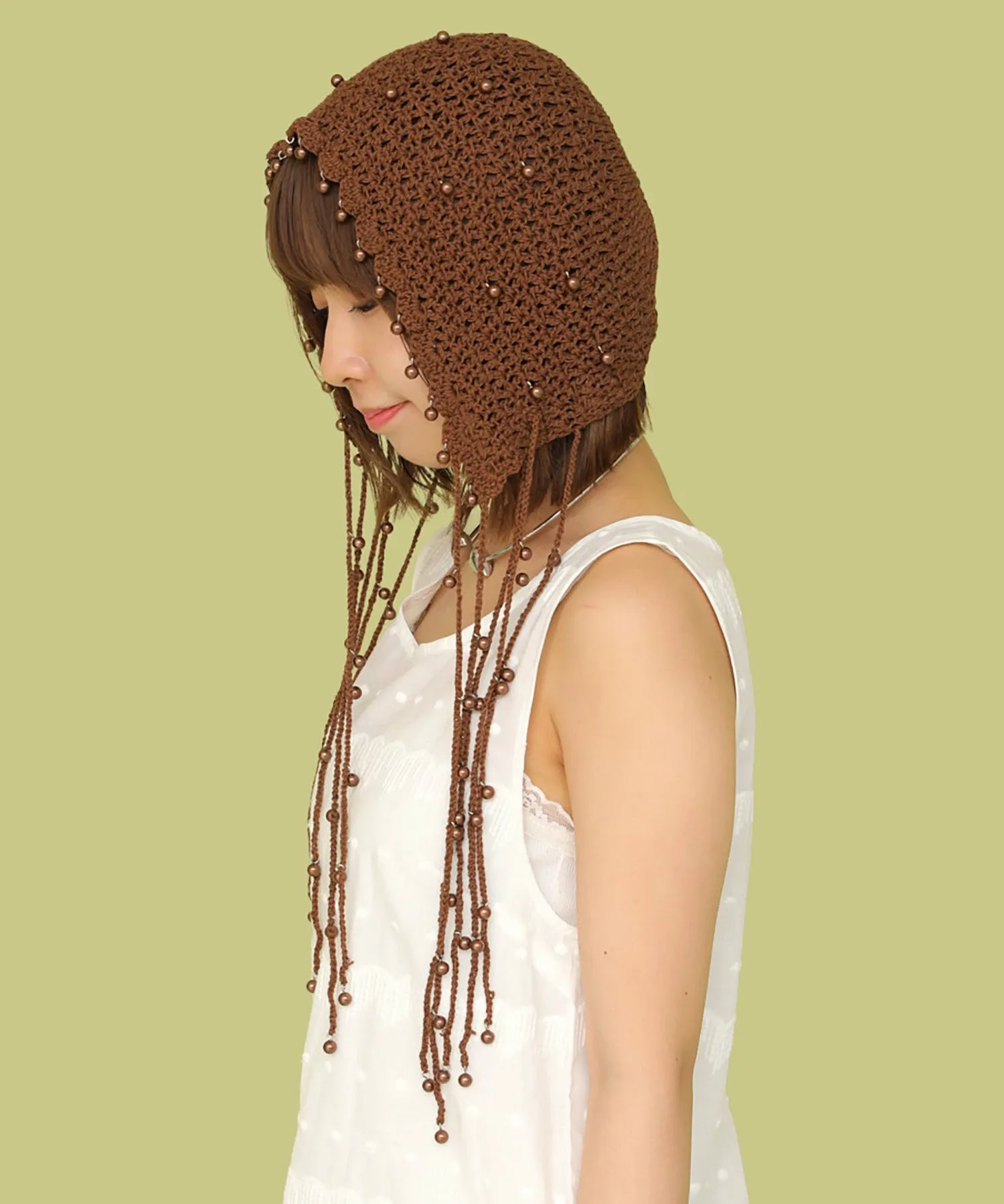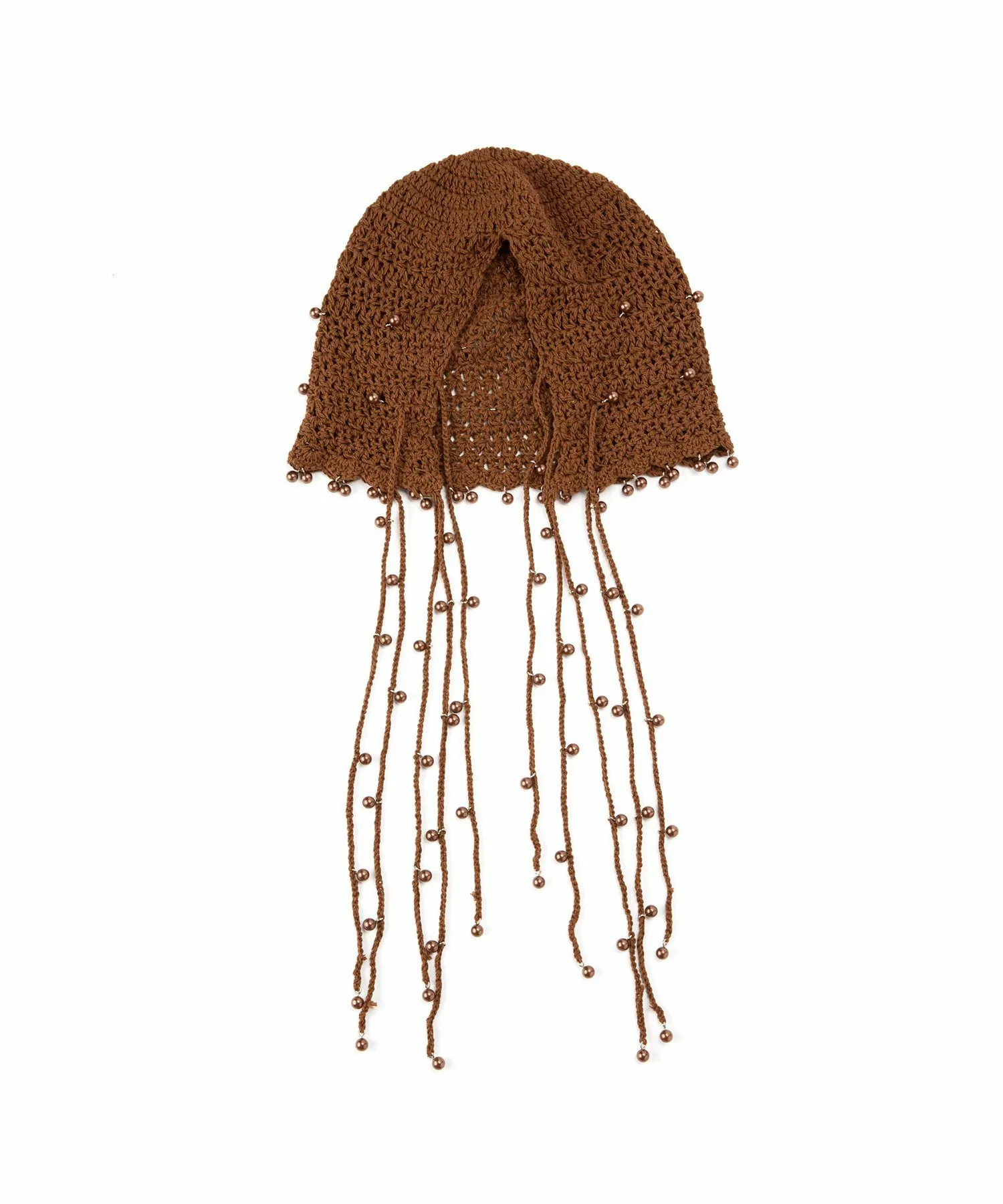 Головной убор, украшенный большим количеством жемчужных бусин.