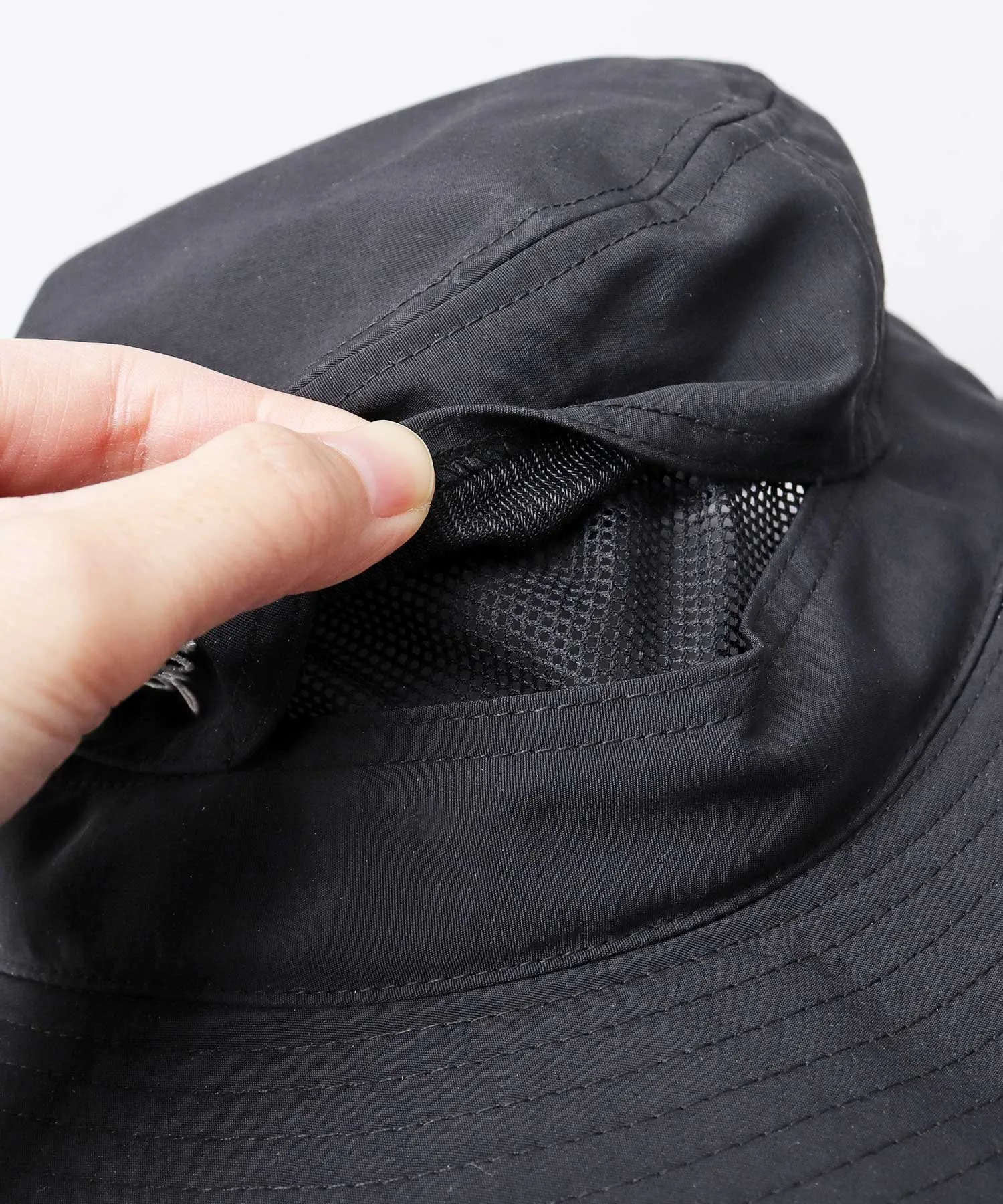 Тонна шляпы вентилируется сетчатой подкладкой по всему периметру. Это улучшает воздухопроницаемость и предотвращает накопление тепла внутри шляпы.