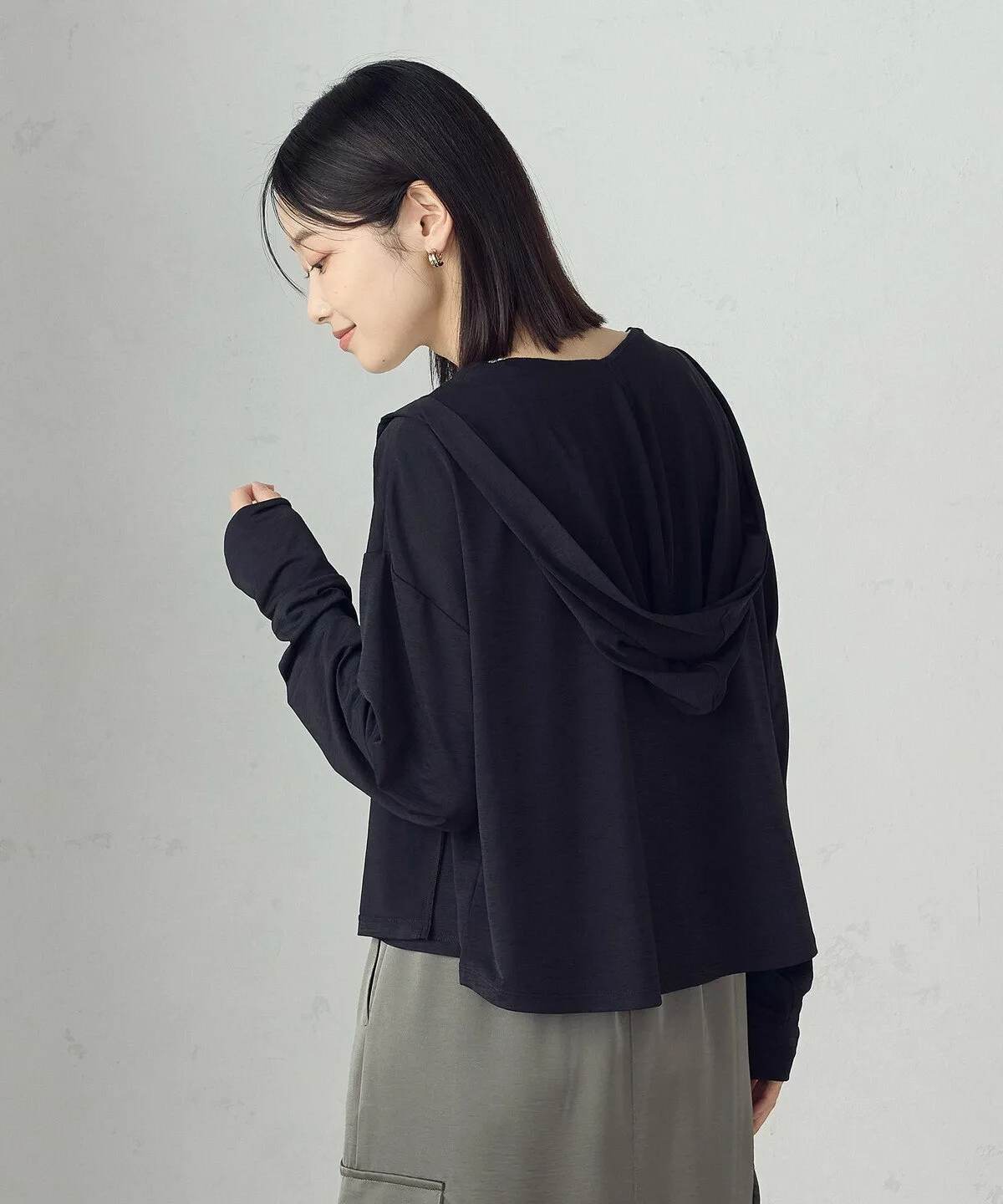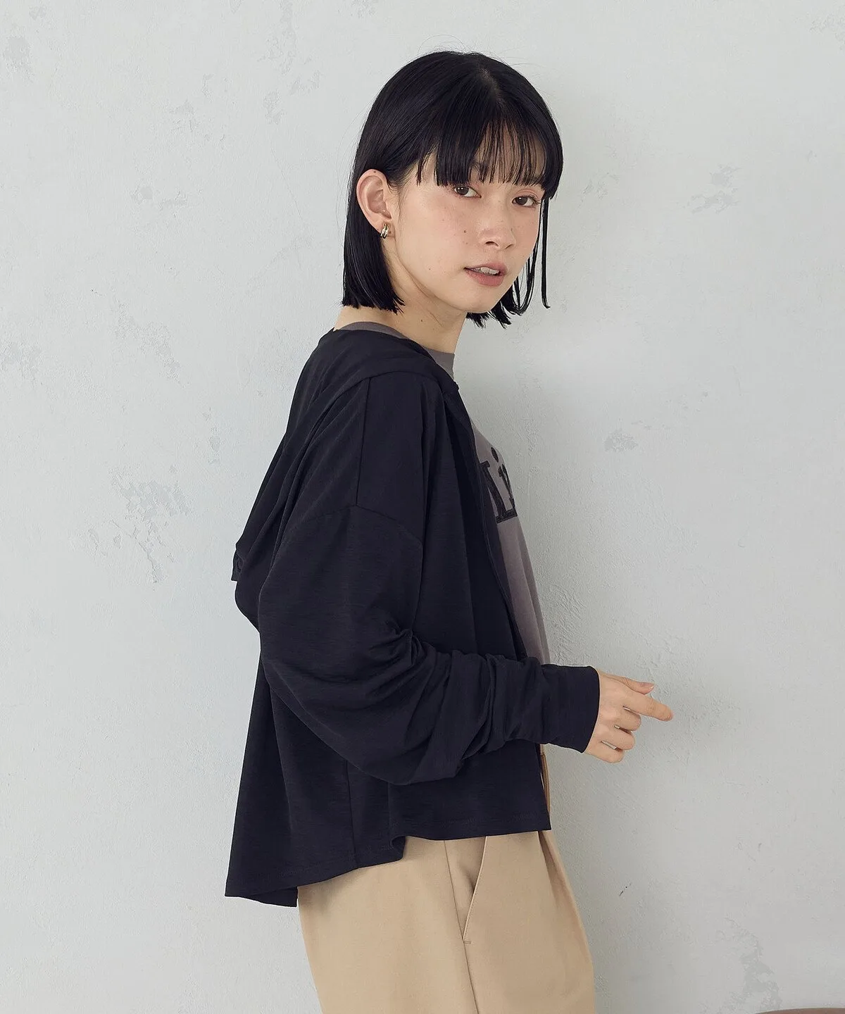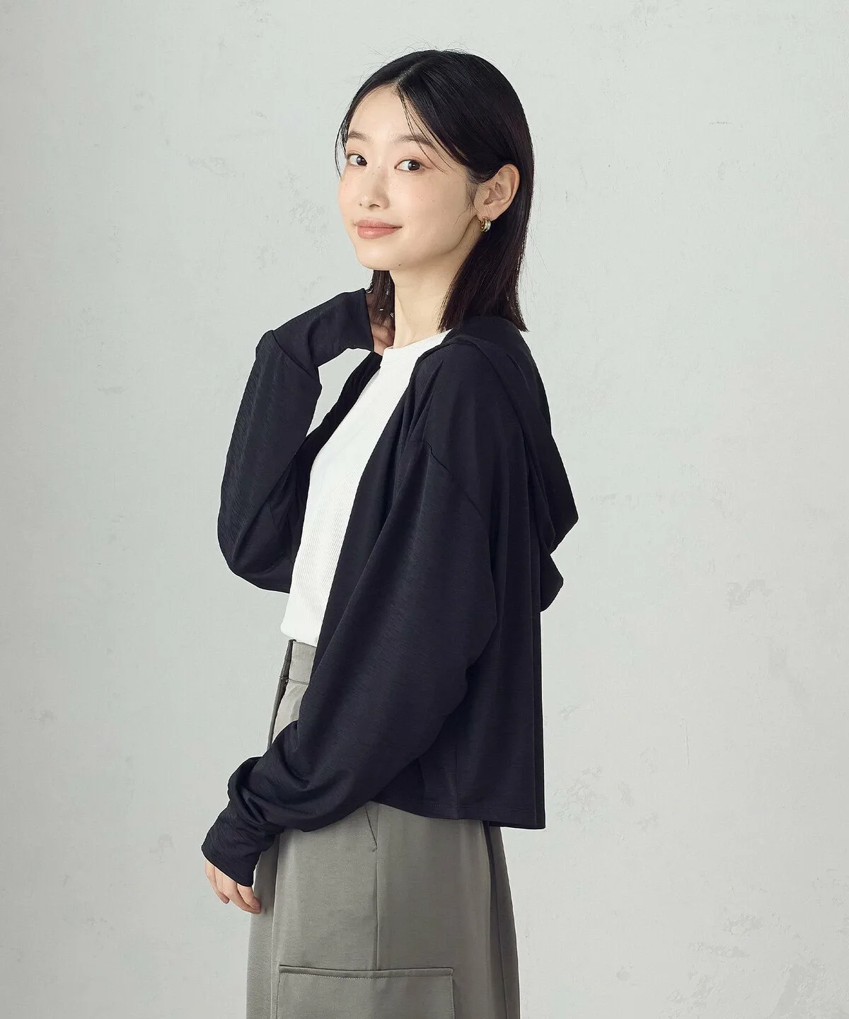 Укороченный кардиган с капюшоном, который можно просто накинуть.