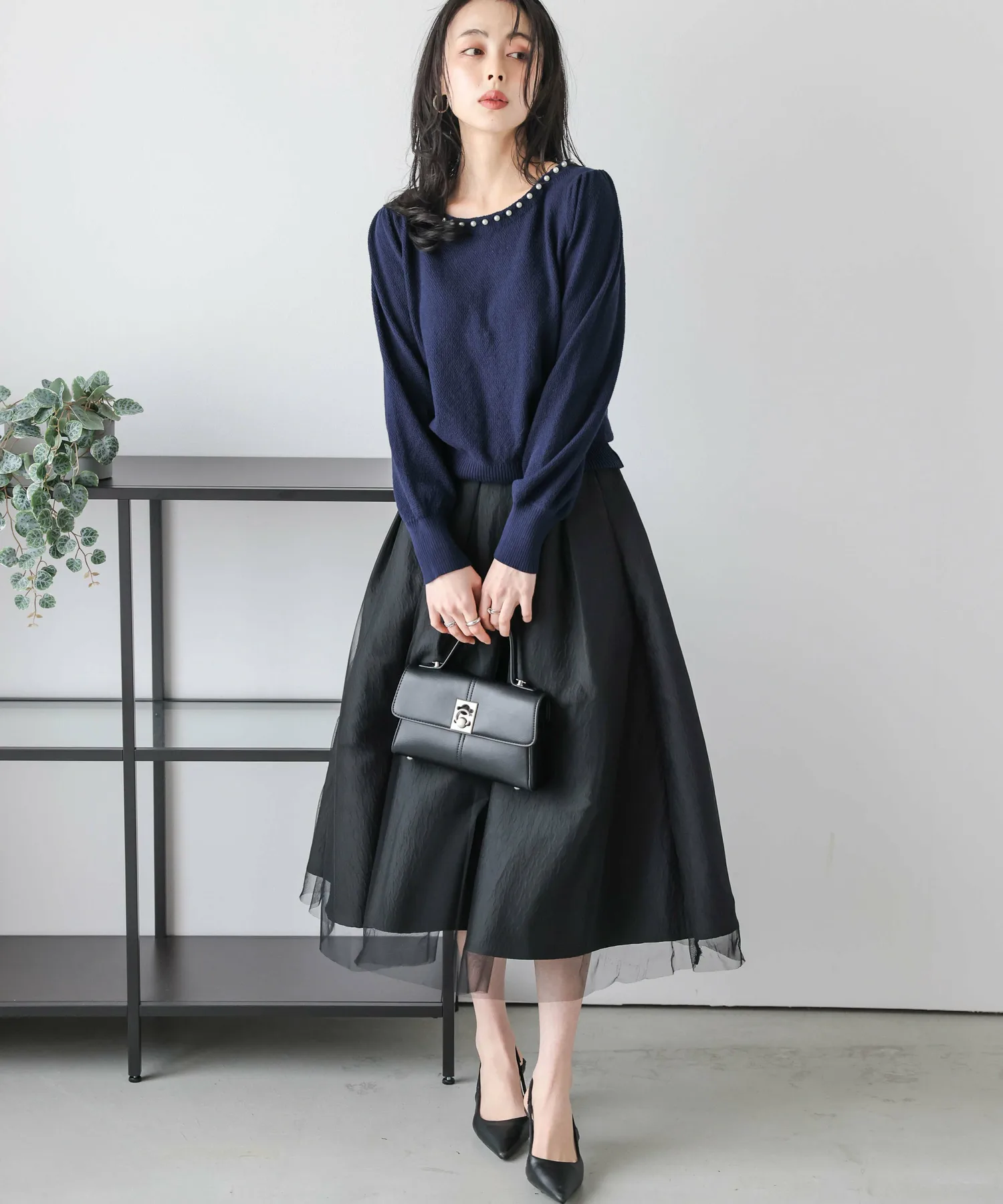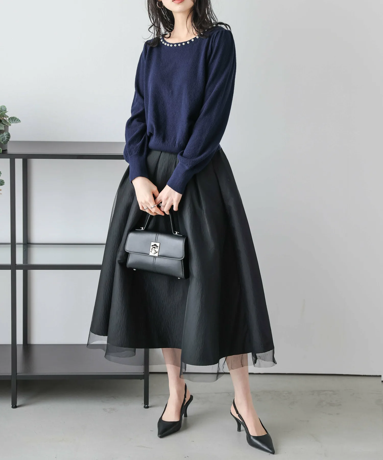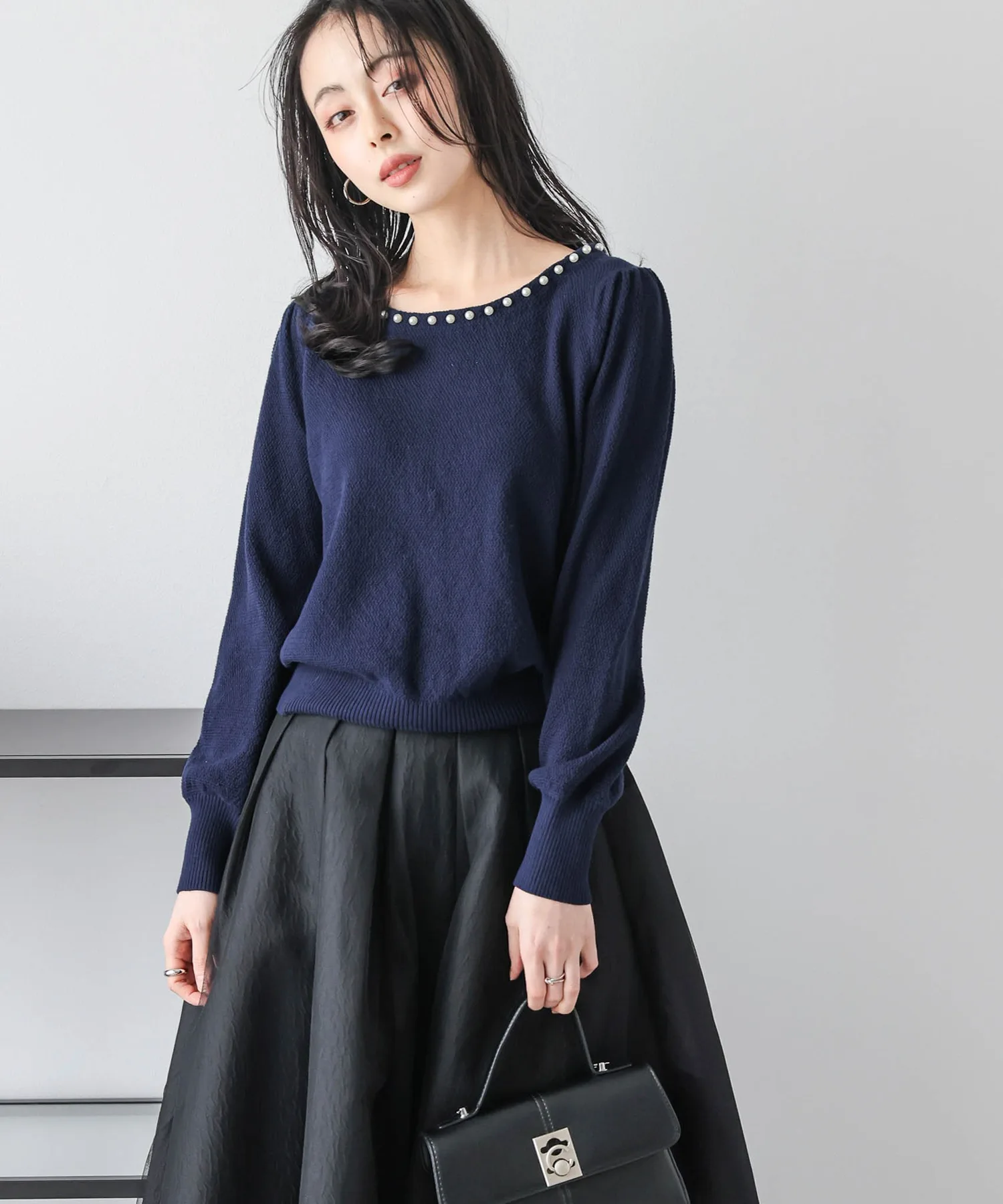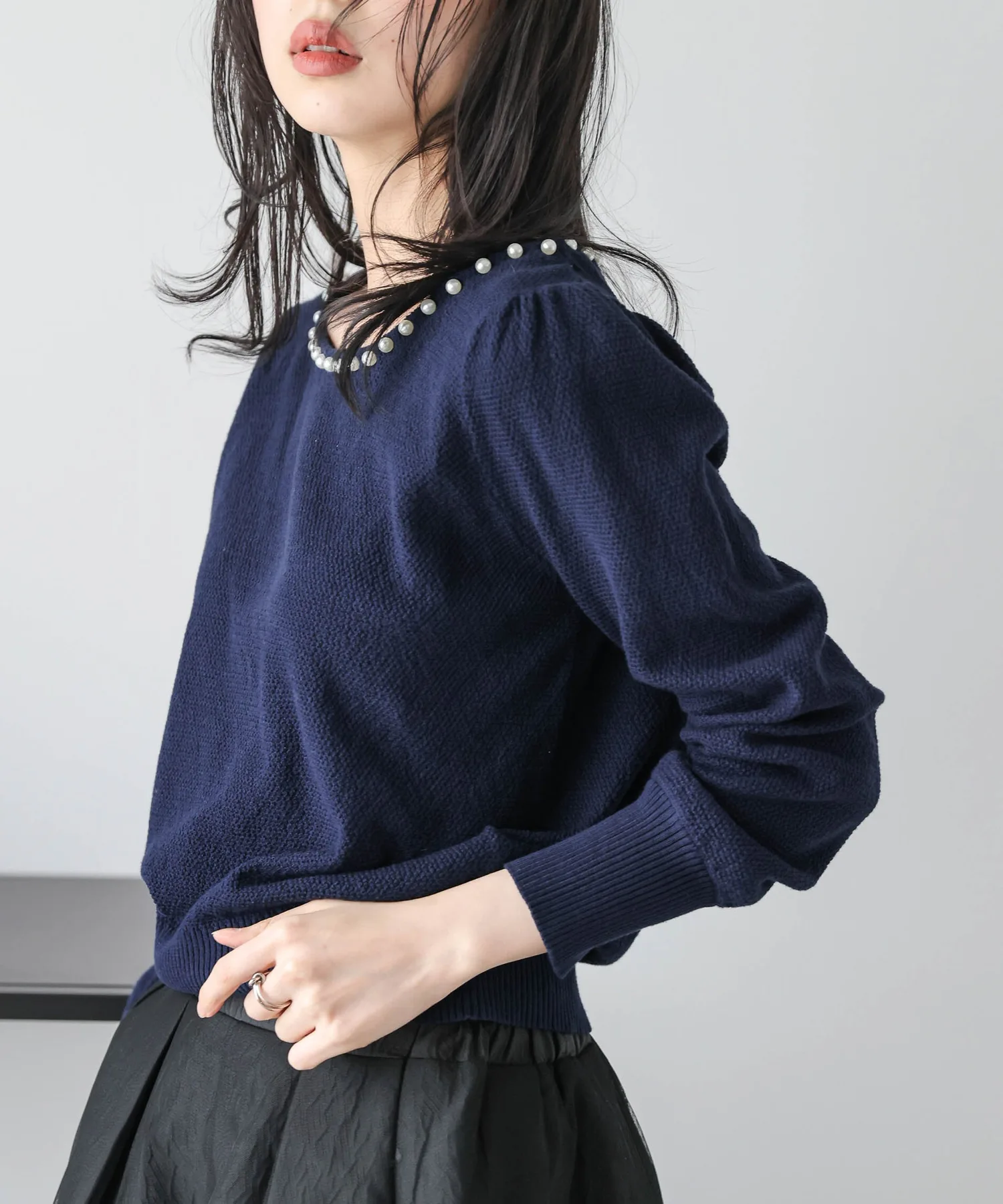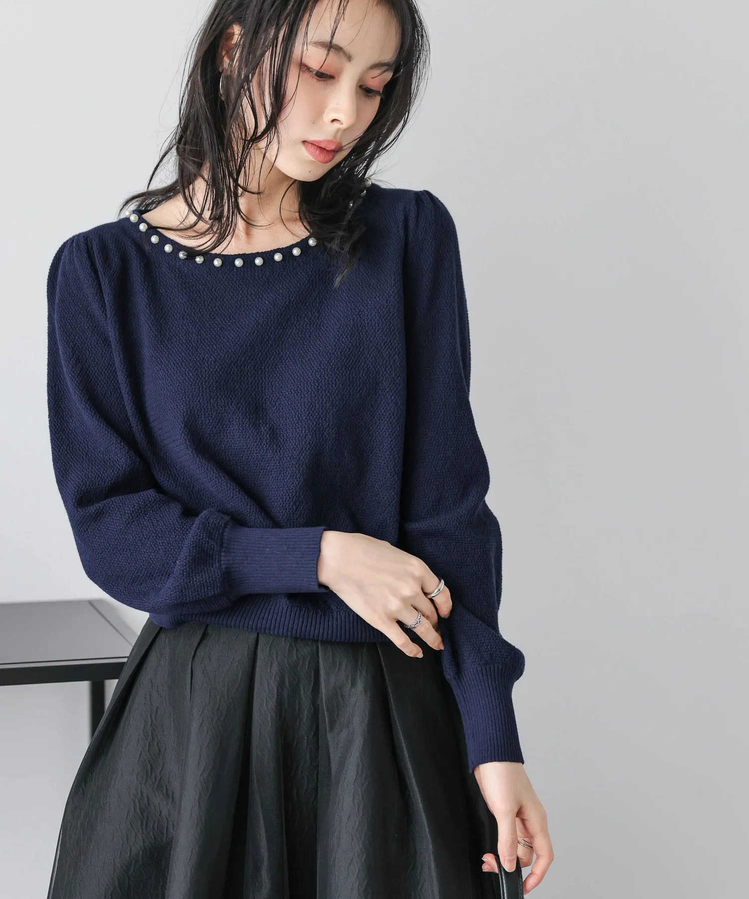 Жемчуг на вырезе добавляет гламура лицу и линии декольте. Аксессуары не требуются, и эта вещь позволяет легко создавать стильные образы даже в одиночку.