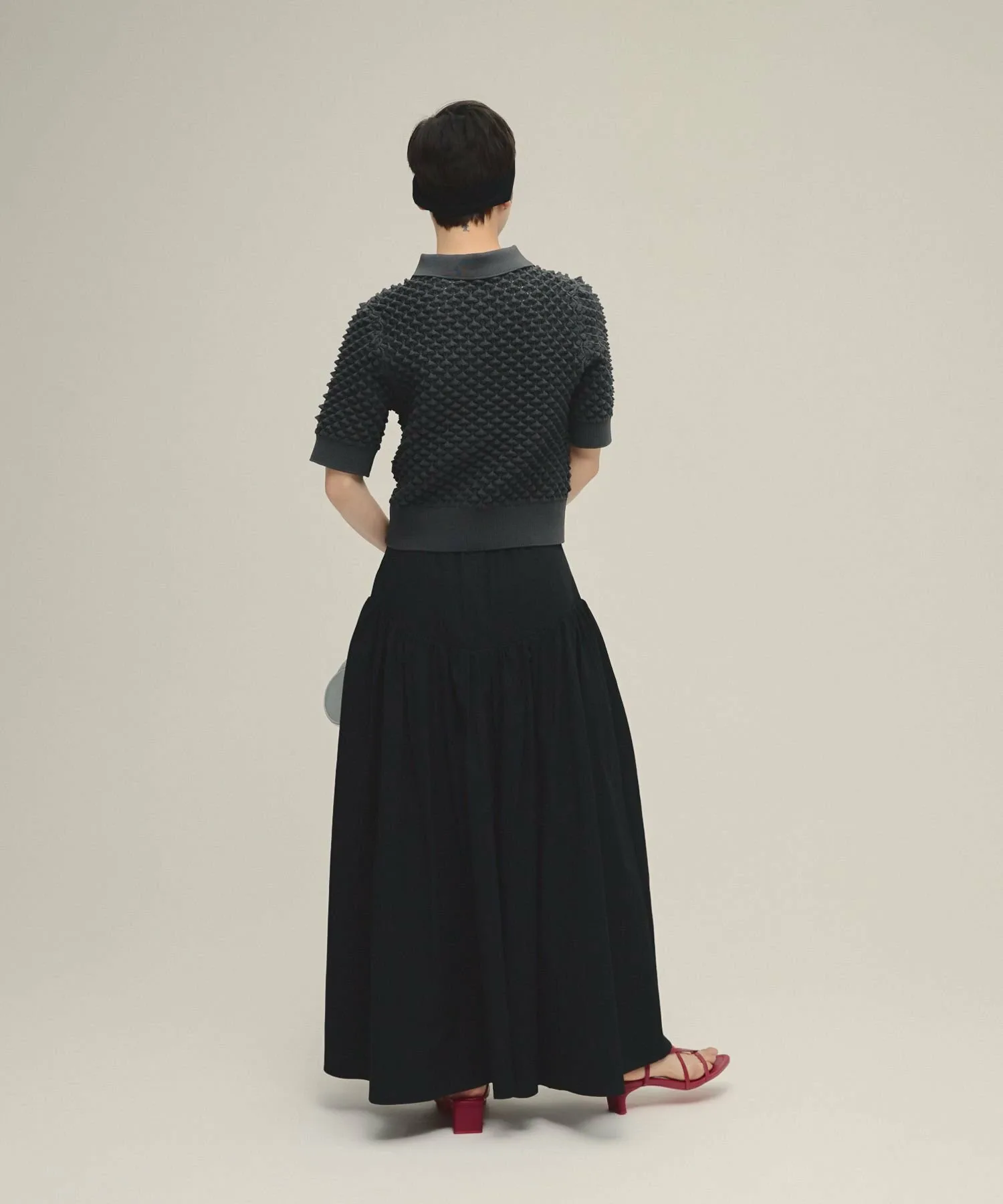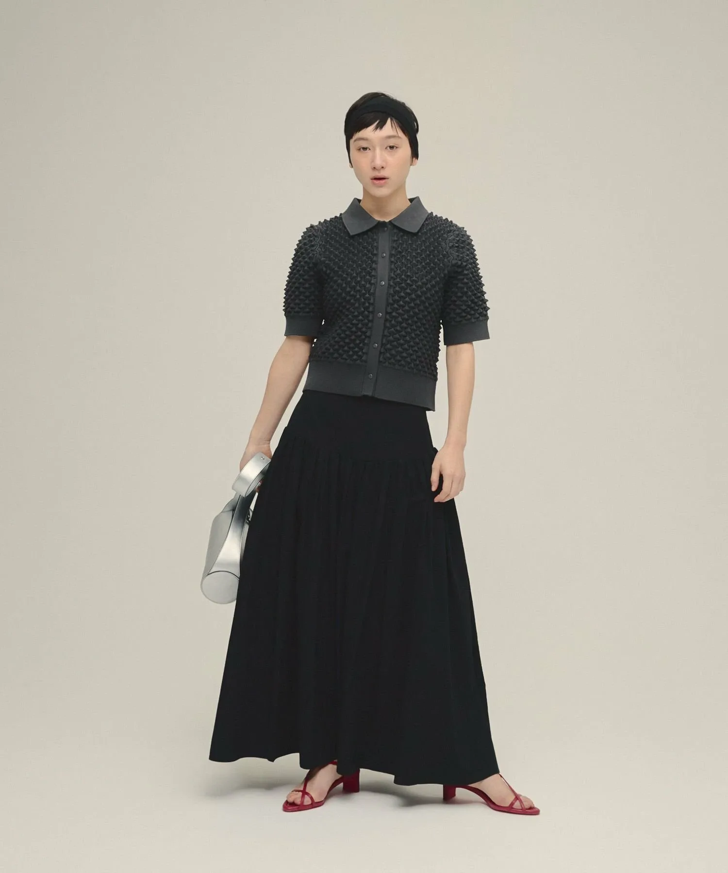 Компактный размер позволяет сочетать его с широкими брюками и объемными юбками.