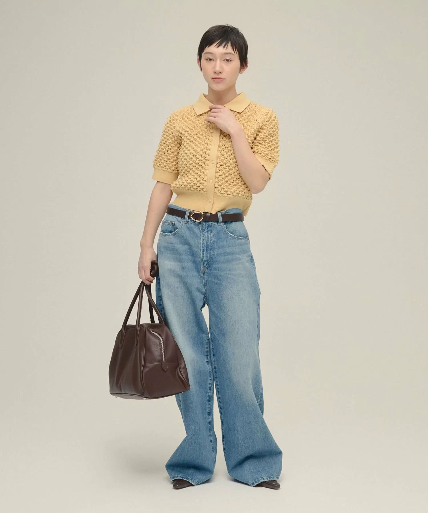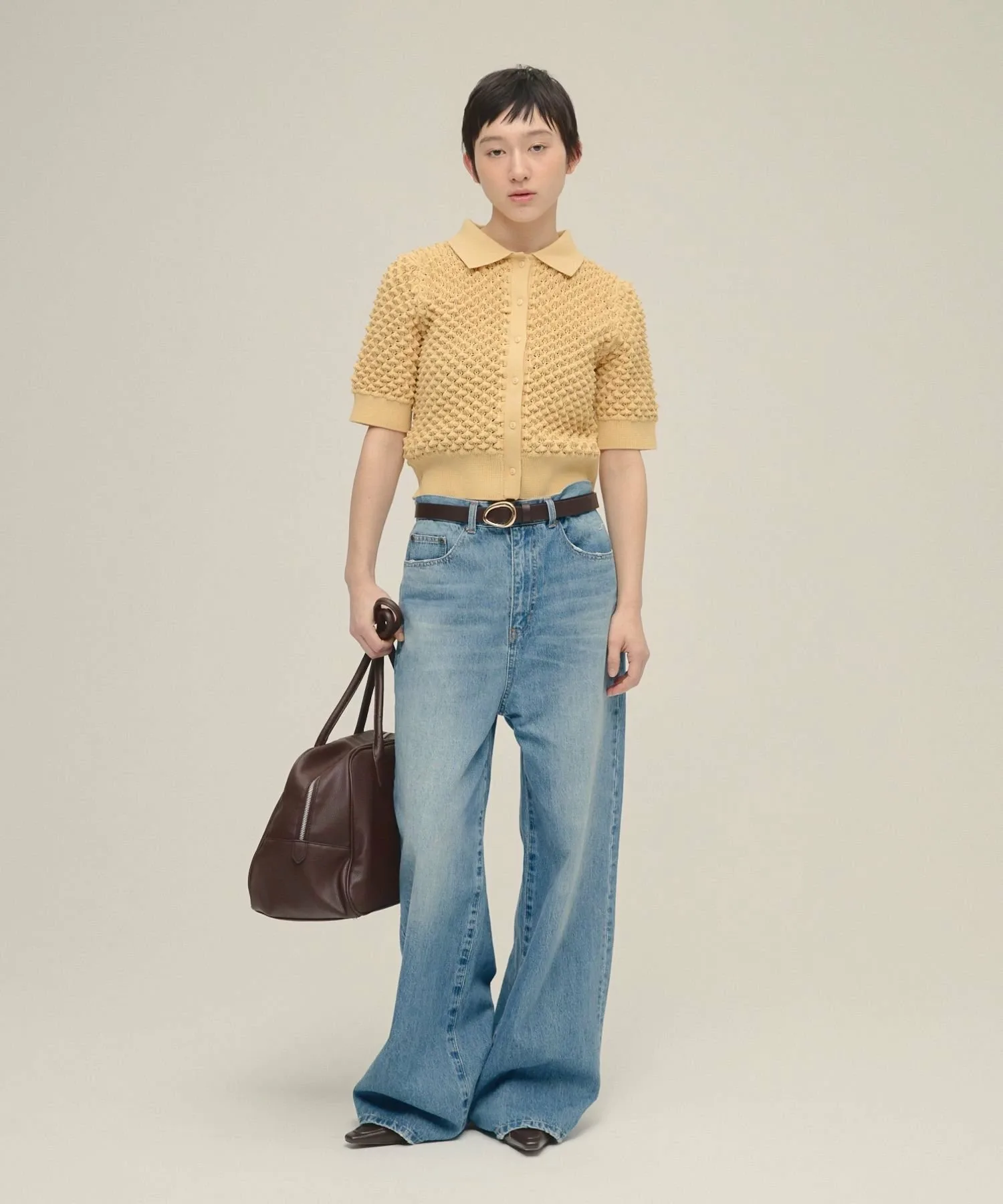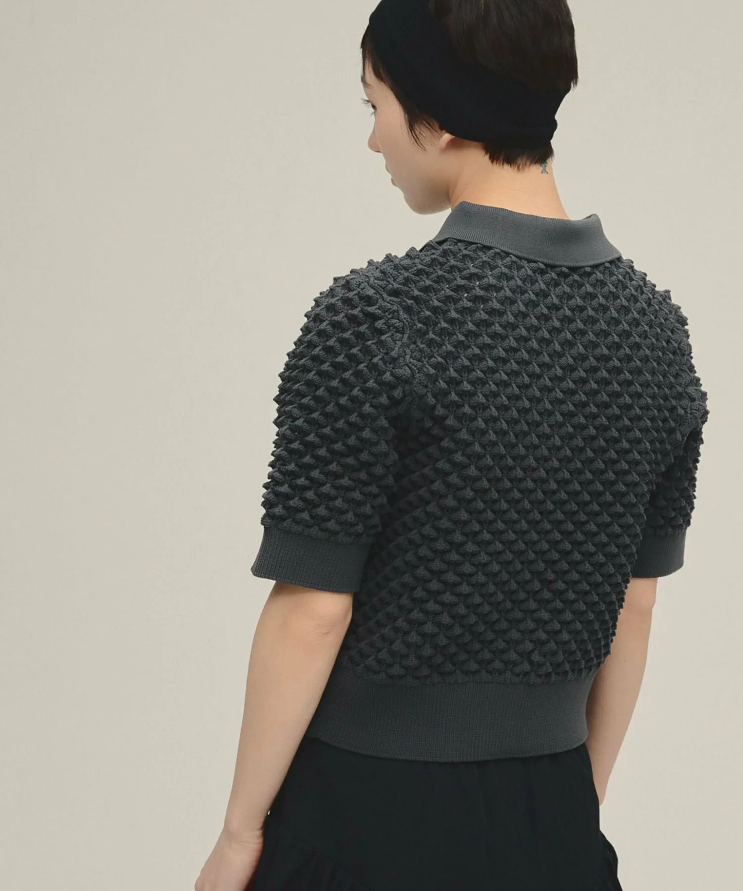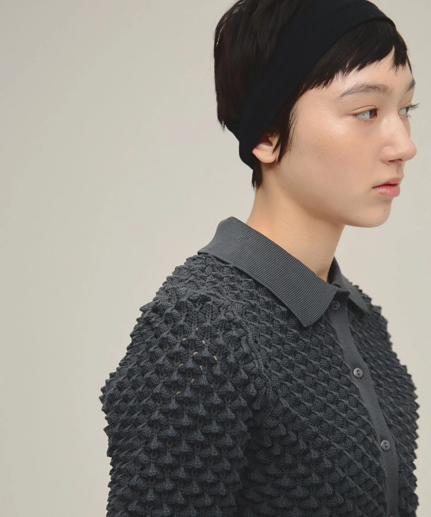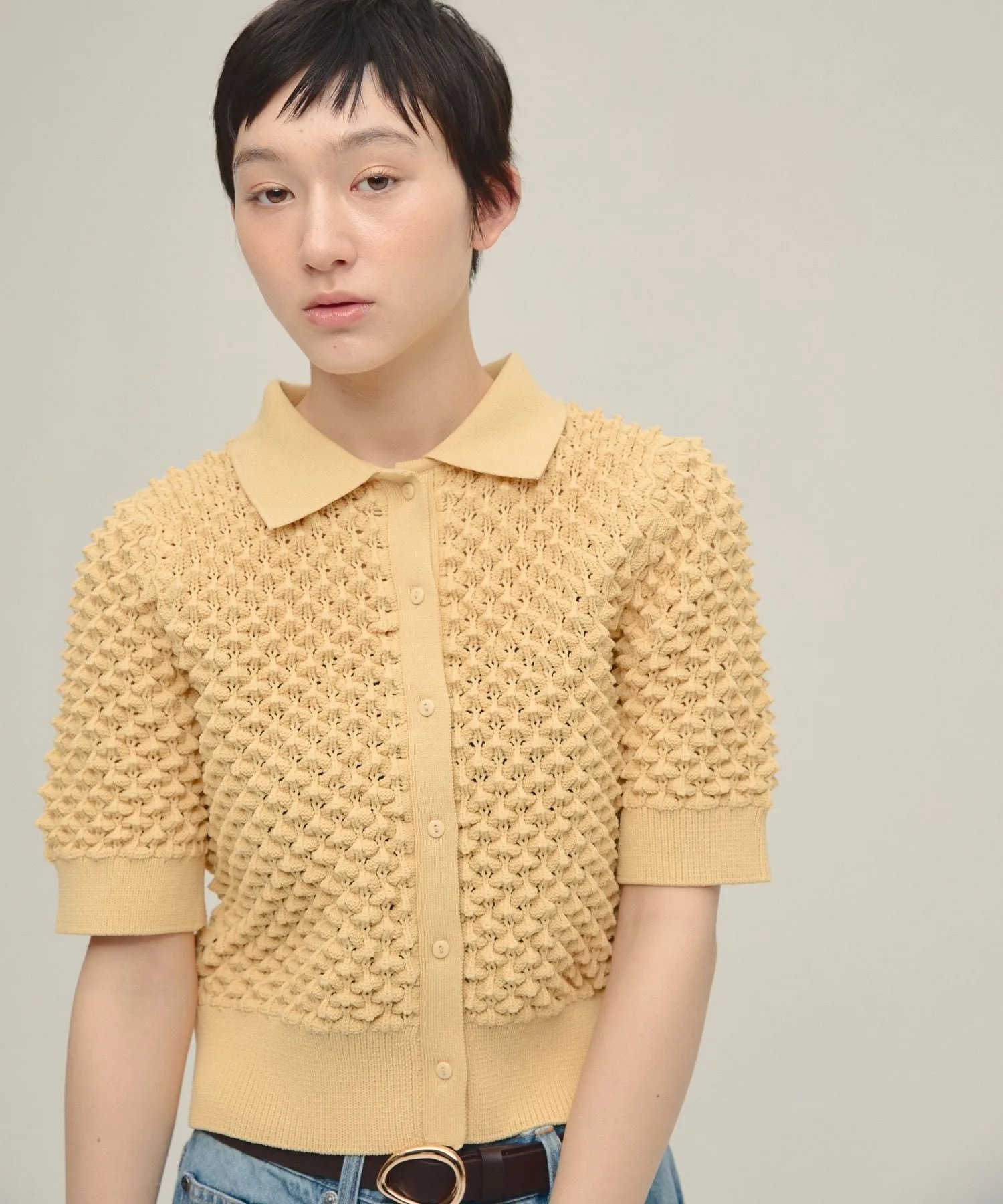 Кардиган-поло с привлекательным, свежим, объемным вязаным узором.