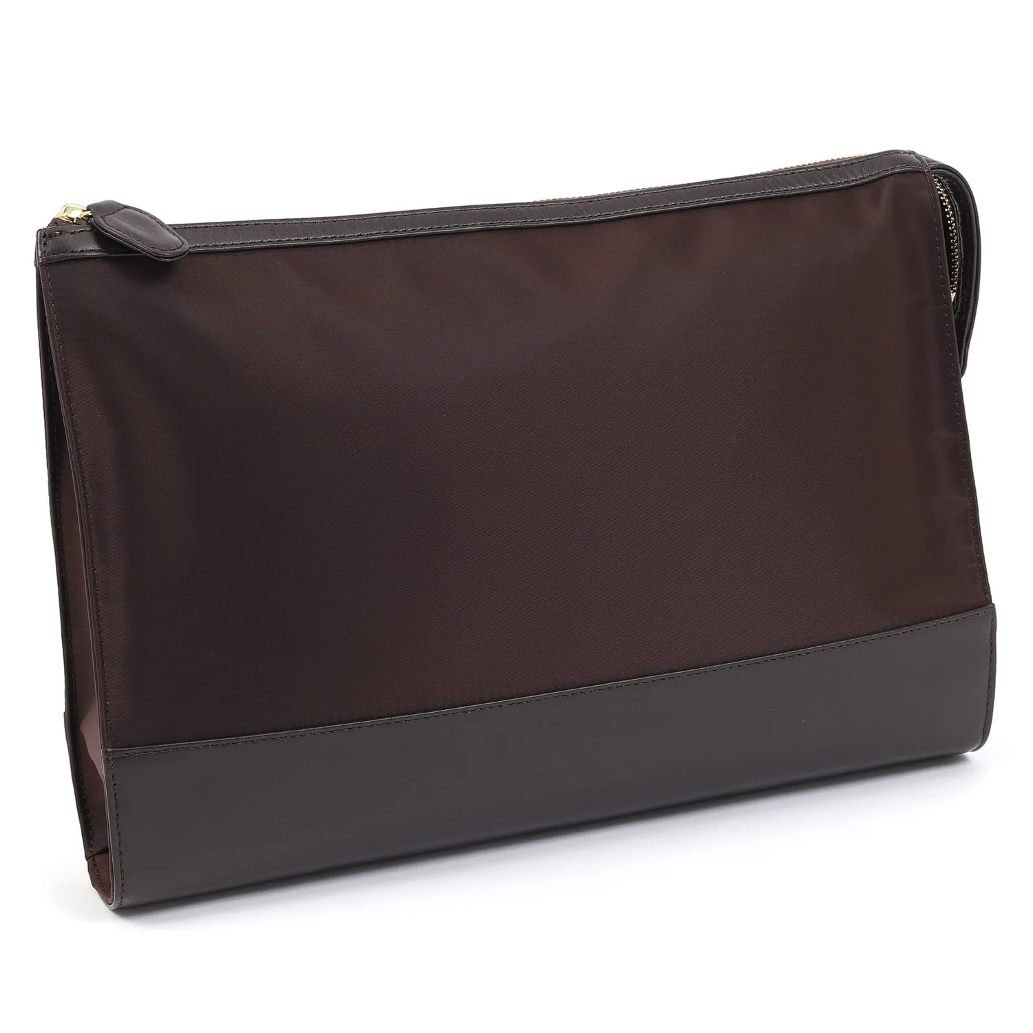 Простая и легкая нейлоновая сумочка-клатч. Изготовлена из роскошного двухслойного нейлона со слегка приглушенным блеском. Кожа, используемая на часто используемых частях, таких как дно и молния, не только добавляет изюминку в дизайн, но и повышает функциональность за счет увеличения прочности. Она достаточно вместительна для бутылки с водой или планшета.
