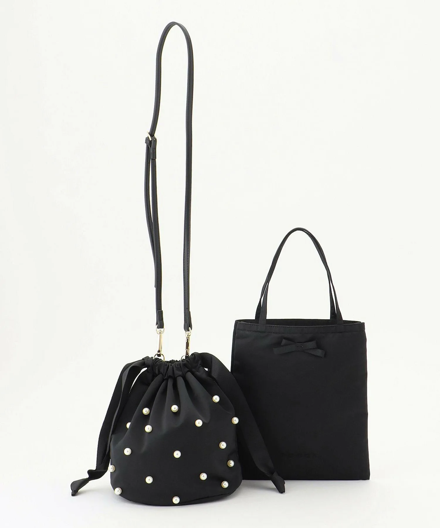 Эта сумка на завязках, украшенная белоснежными жемчужинами, аккуратно пришитыми одна за другой к блестящему, роскошному атласному нейлону, имеет регулируемую форму и вместимость. В комплекте идет плоский мешочек с ленточной отделкой, идеально подходящий для хранения мелких предметов, таких как подарочные конверты или смартфоны, который можно удобно сложить внутрь сумки.