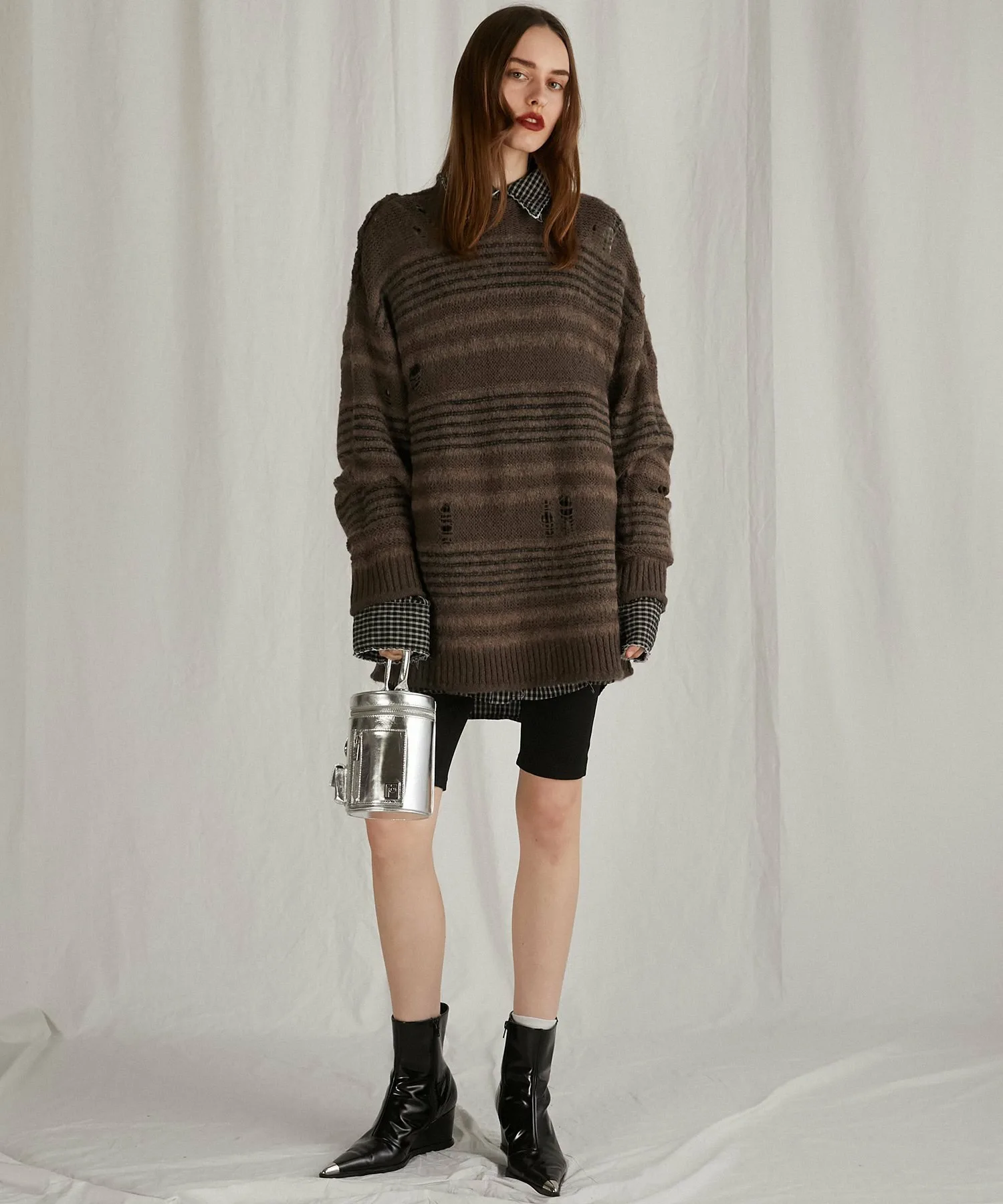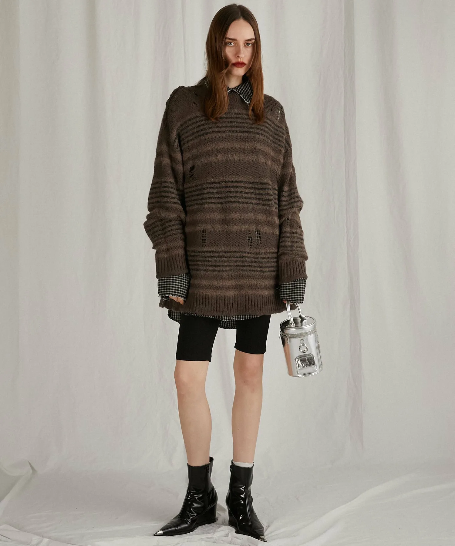 Внешний шов и легкие потертости придают ему гранжевый вид.