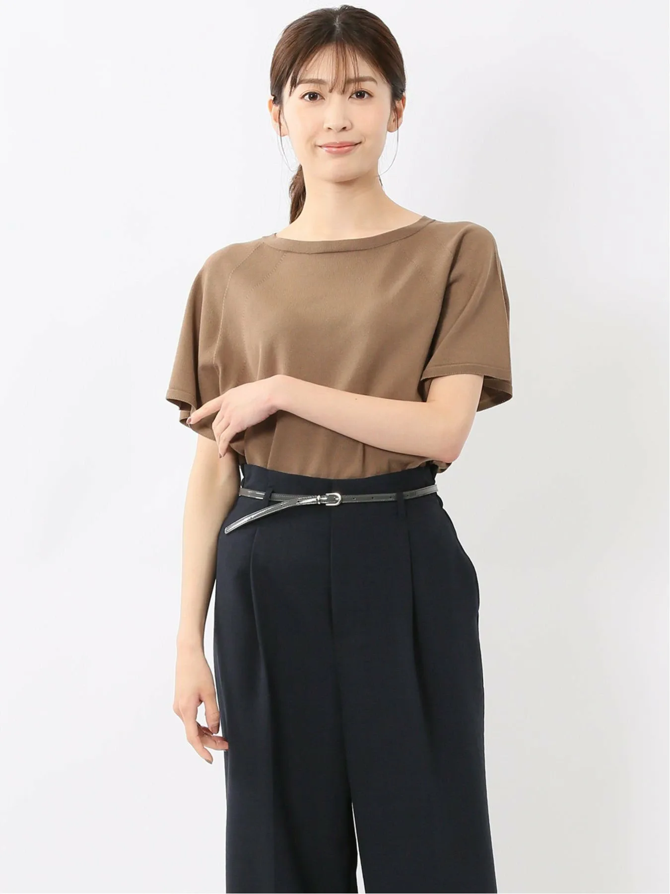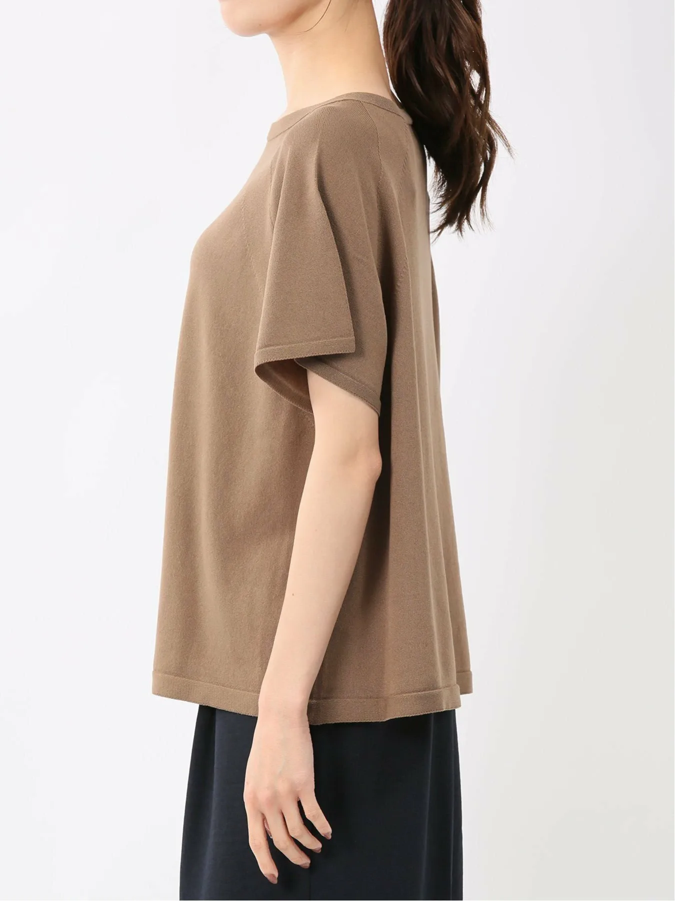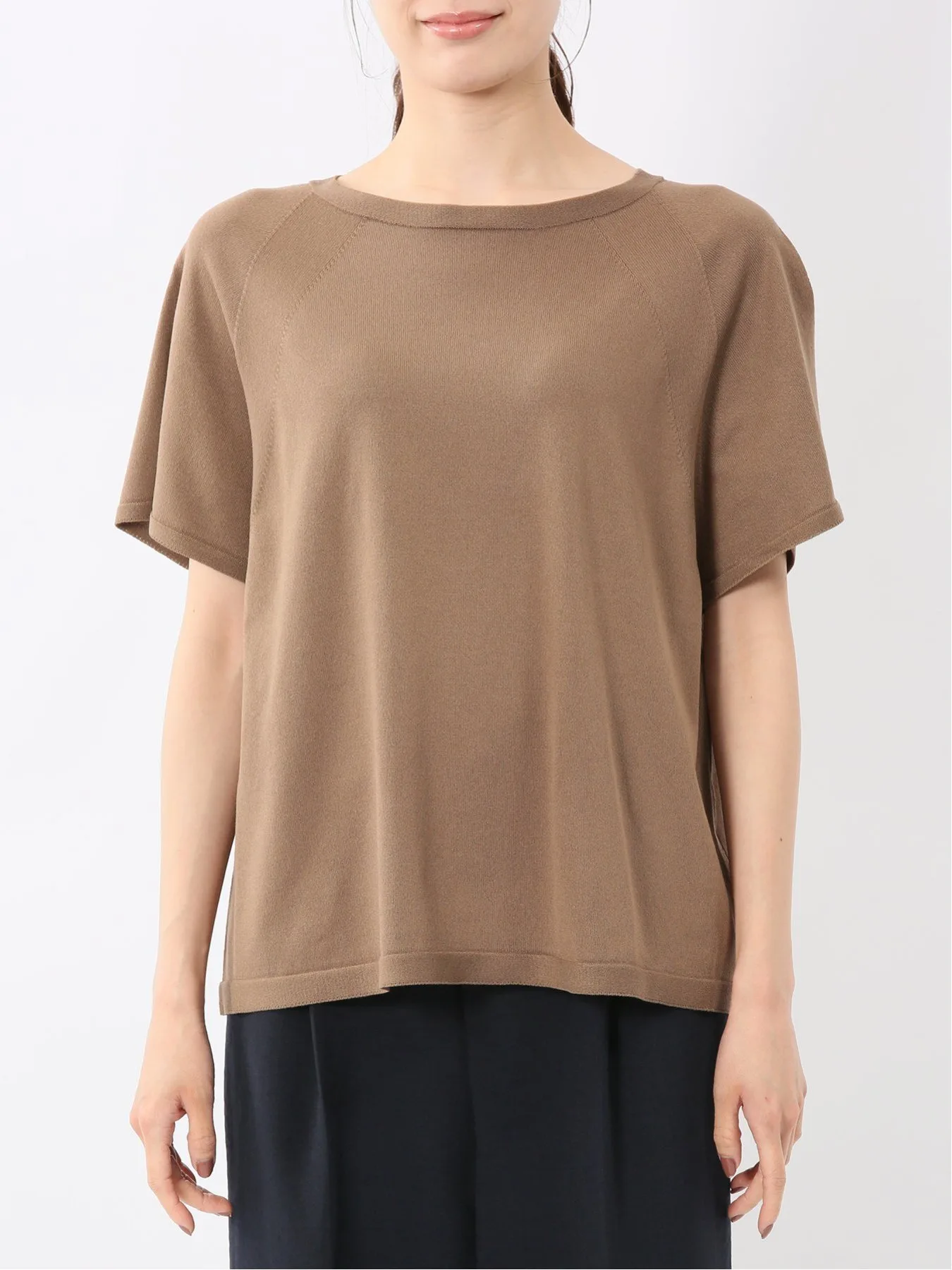 Этот вязаный пуловер с круглым вырезом можно носить как на работе, так и вне ее, создавая как элегантный, так и повседневный образ. Рукава реглан обеспечивают свободу движений рук, а французские рукава закрывают плечи. Эта футболка сочетает в себе удобство и изысканность.