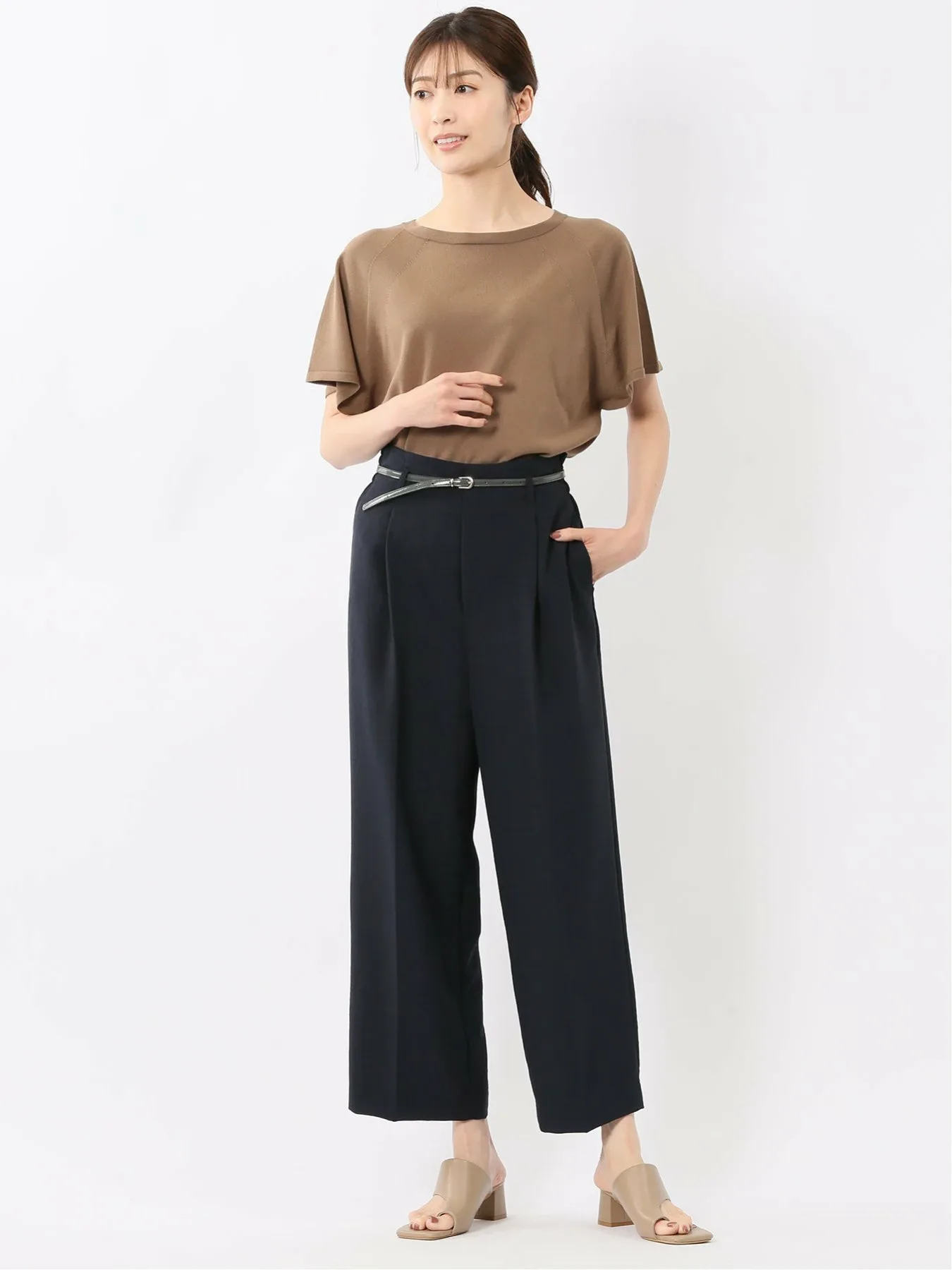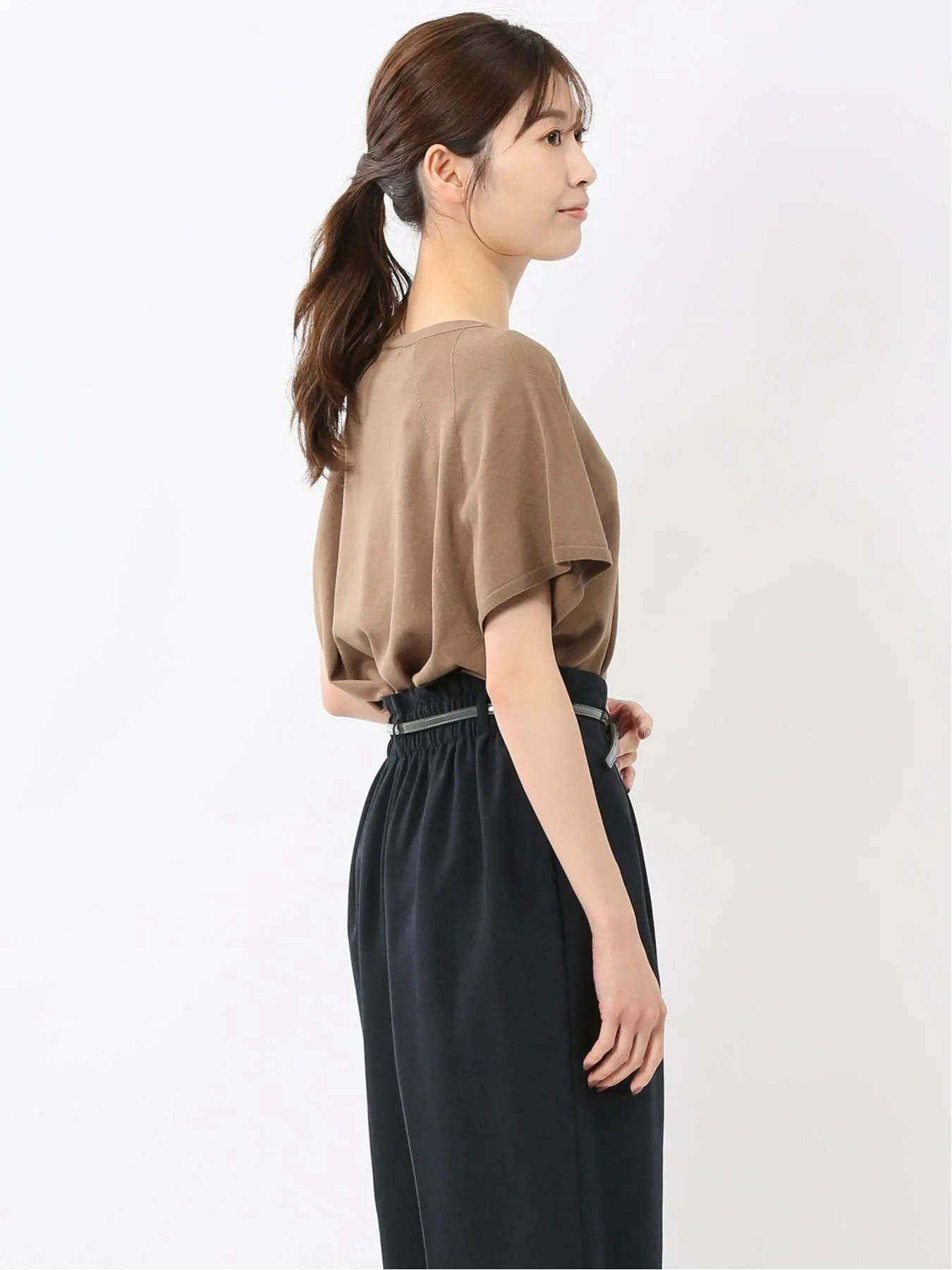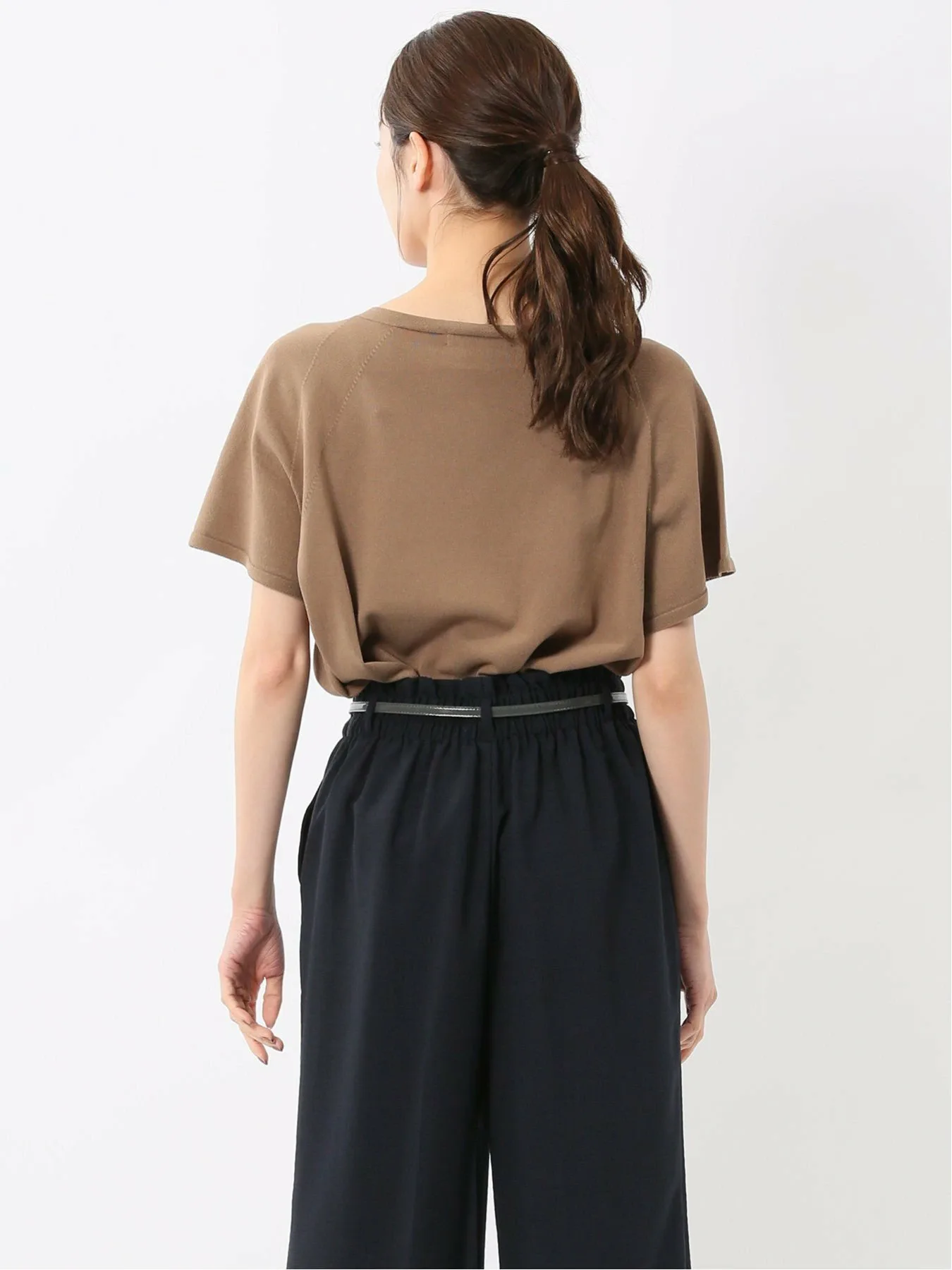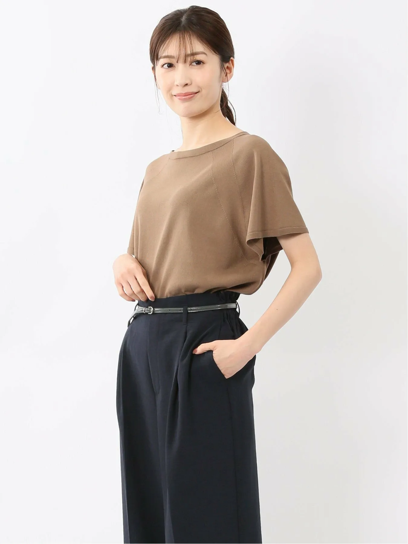 Этот вязаный пуловер с круглым вырезом можно носить как на работе, так и вне ее, создавая как элегантный, так и повседневный образ. Рукава реглан обеспечивают свободу движений рук, а французские рукава закрывают плечи. Эта футболка сочетает в себе удобство и изысканность.