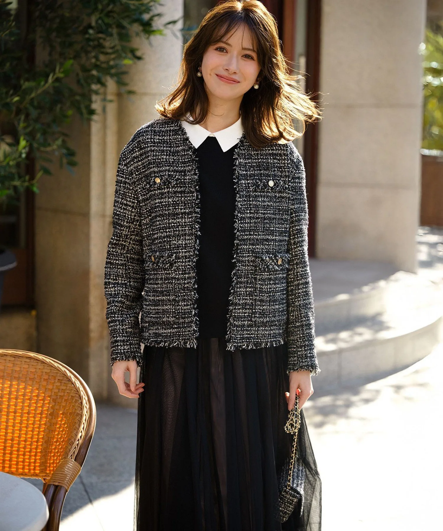 Этот пуловер с воротником выполнен из изысканной, плотной вязки и может носиться как спереди, так и сзади. Чистый, кремовый воротник освежает лицо и создает утонченный образ. Мягкие рукава-фонарики добавляют женственности, а едва заметные пуговицы с выгравированным логотипом бренда — акцент. Сочетайте его с простыми брюками или юбками для создания универсального образа, от офиса до повседневных прогулок. Наслаждайтесь разнообразием вариантов сочетания: от повседневной одежды с джинсами до элегантных брюк или юбок. Доступен в трех цветах: шикарный и универсальный черный (#005), изысканный и интеллектуальный темно-синий (#075) и темно-коричневый (#035) для утонченного и утонченного образа.