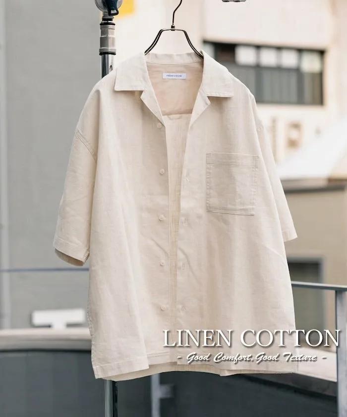 Рубашка с открытым воротником и коротким рукавом из льна и хлопка
