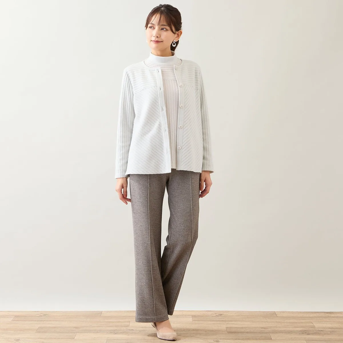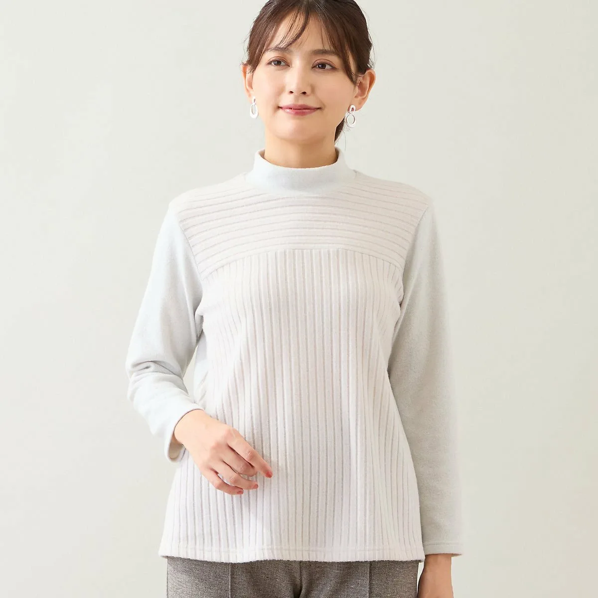 Передняя часть имеет ребристую текстуру, в то время как рукава и спинка плоские и однотонные, создавая изменение текстуры.