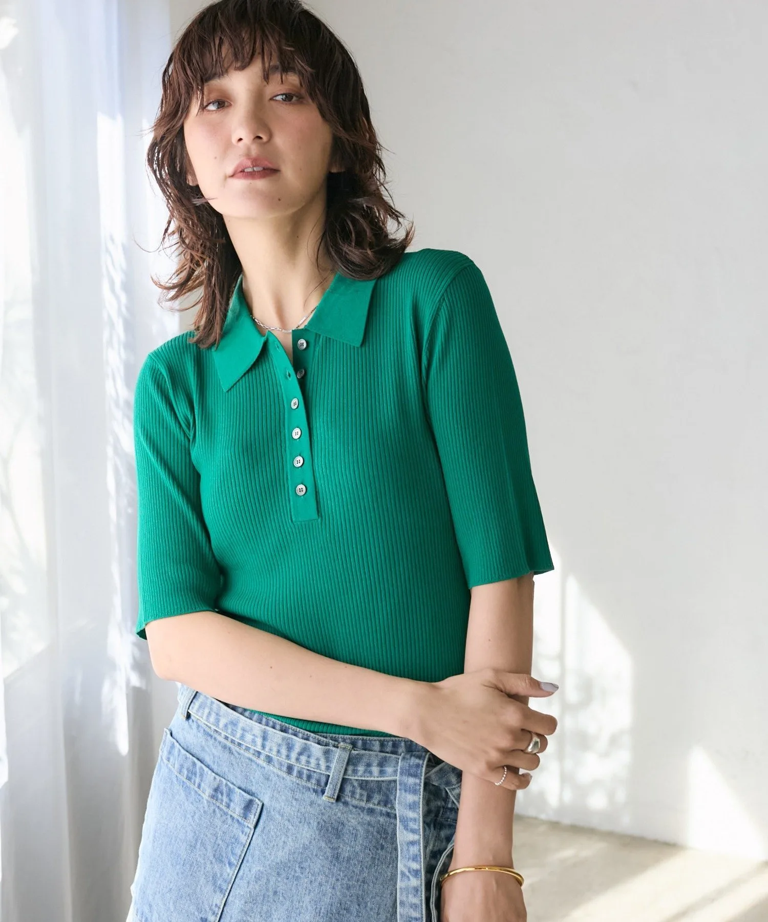 Элегантная трикотажная рубашка-поло с рукавами три четверти, на которую можно положиться каждый день.