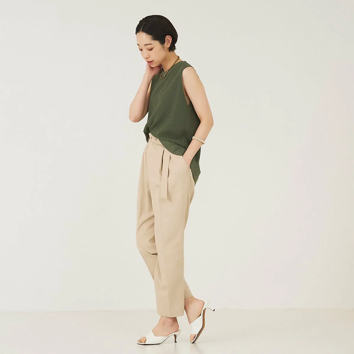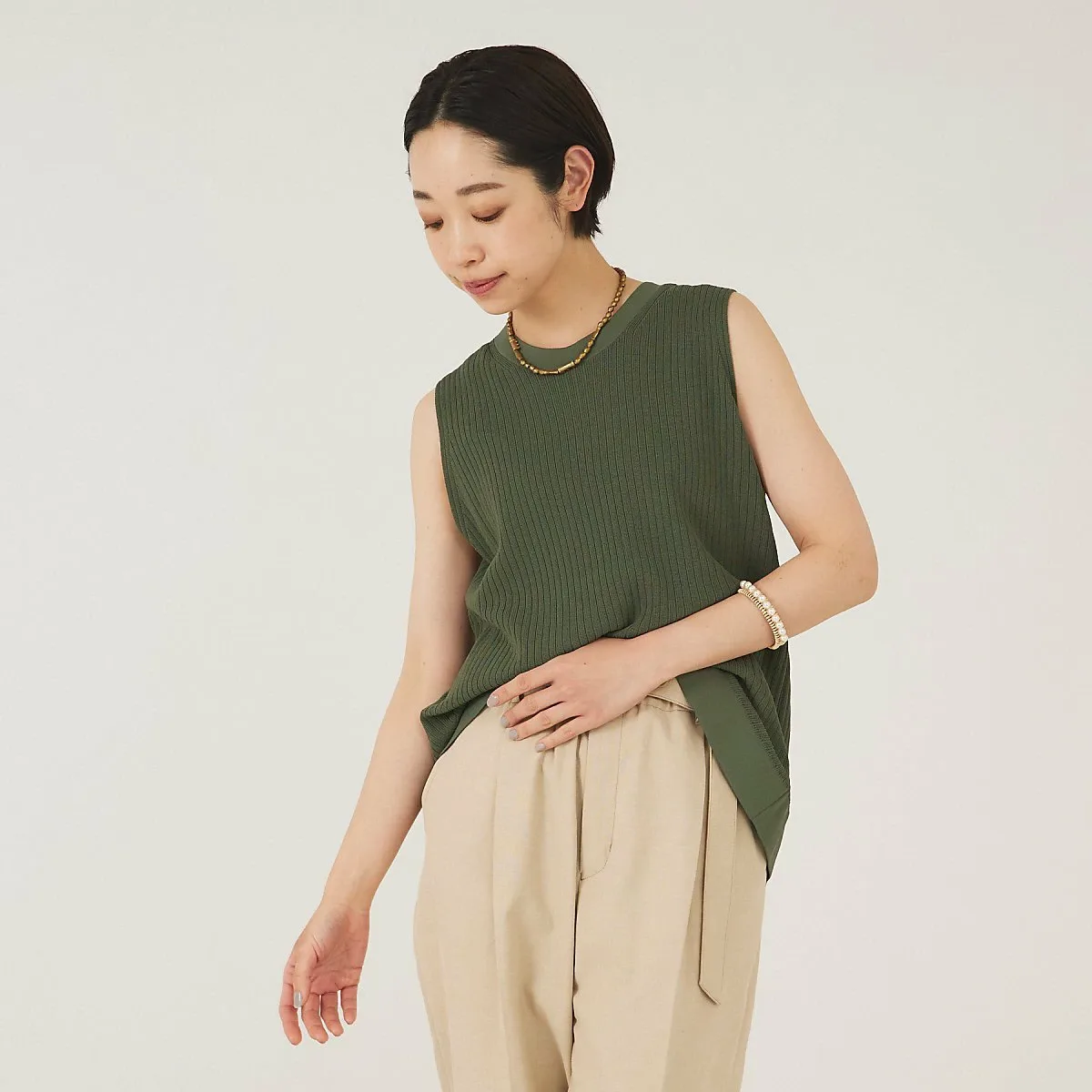 Трикотаж без рукавов с четким силуэтом.