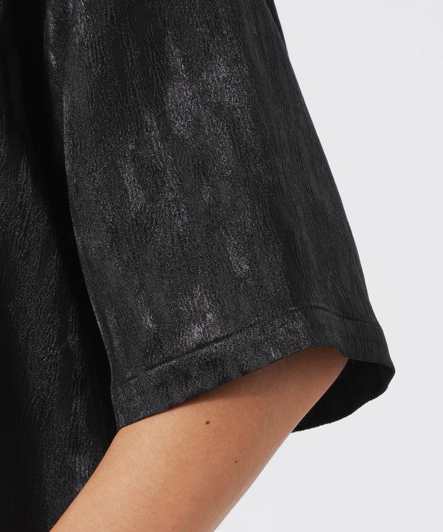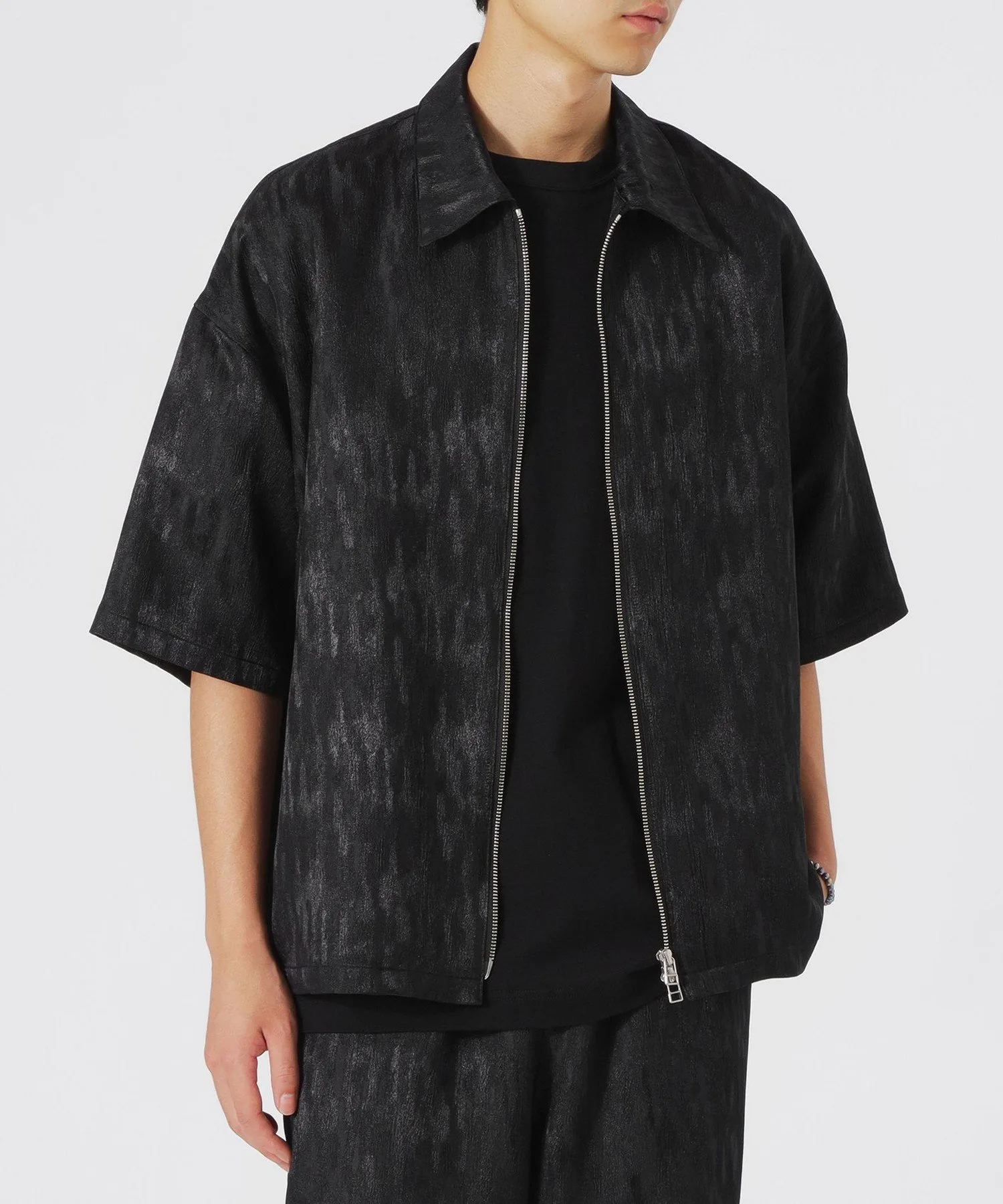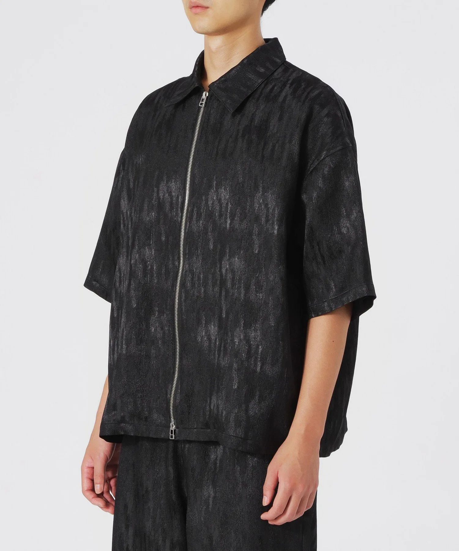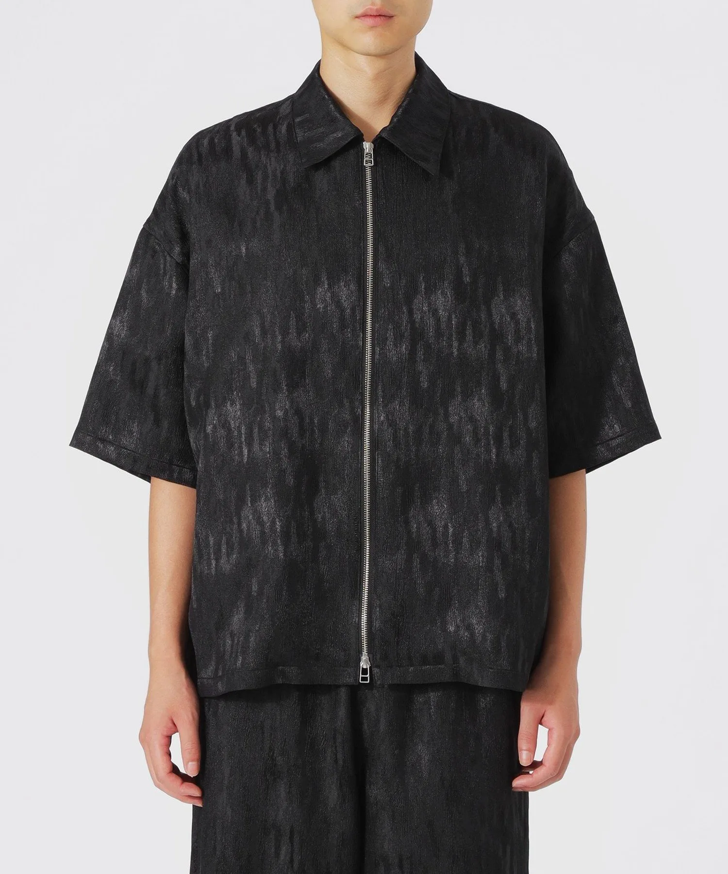 Эта короткая футболка на молнии украшена эффектным, блестящим узором с тональными нюансами.