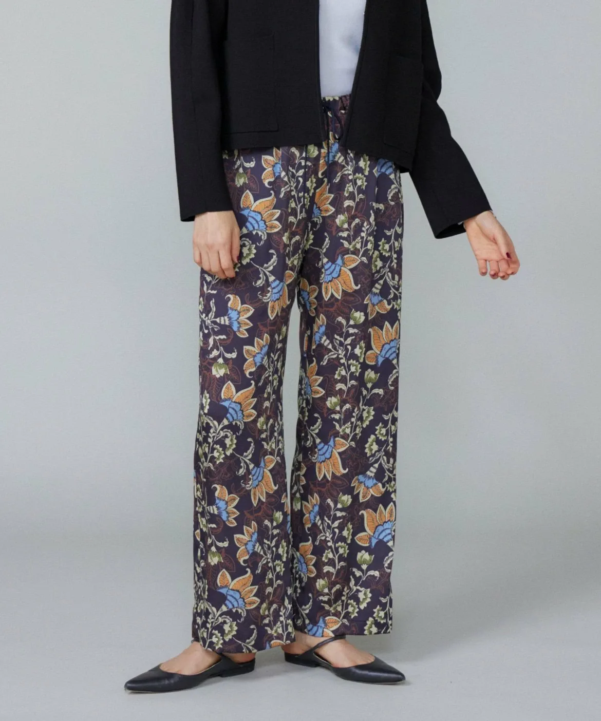 Эти удобные брюки украшены принтом в винтажном стиле. Эластичный пояс, свободный, широкий силуэт и легкий материал делают их комфортными в носке. Затягивающийся шнурок на поясе позволяет регулировать размер. Идеальный силуэт и простые детали, максимально использующие материал, позволяют легко сочетать их с другими вещами, что делает их отличным дополнением к любому образу.