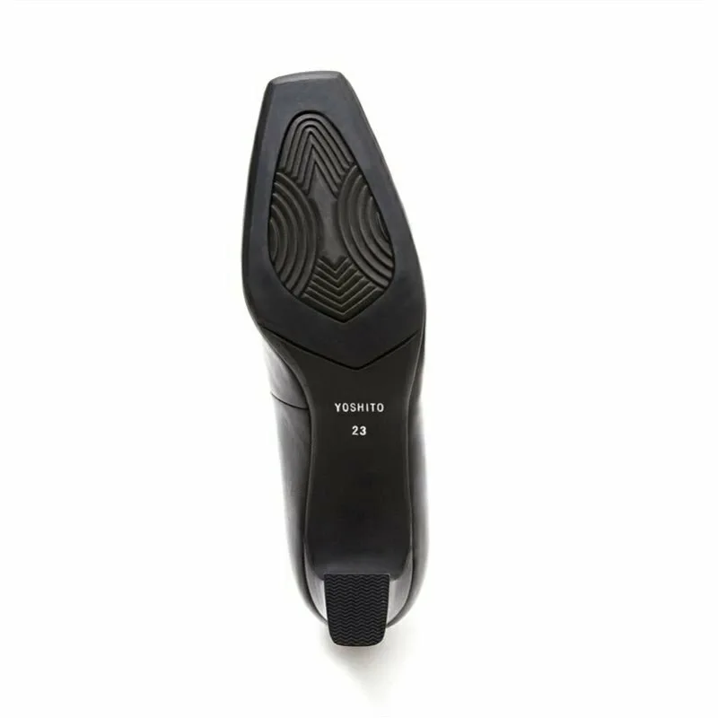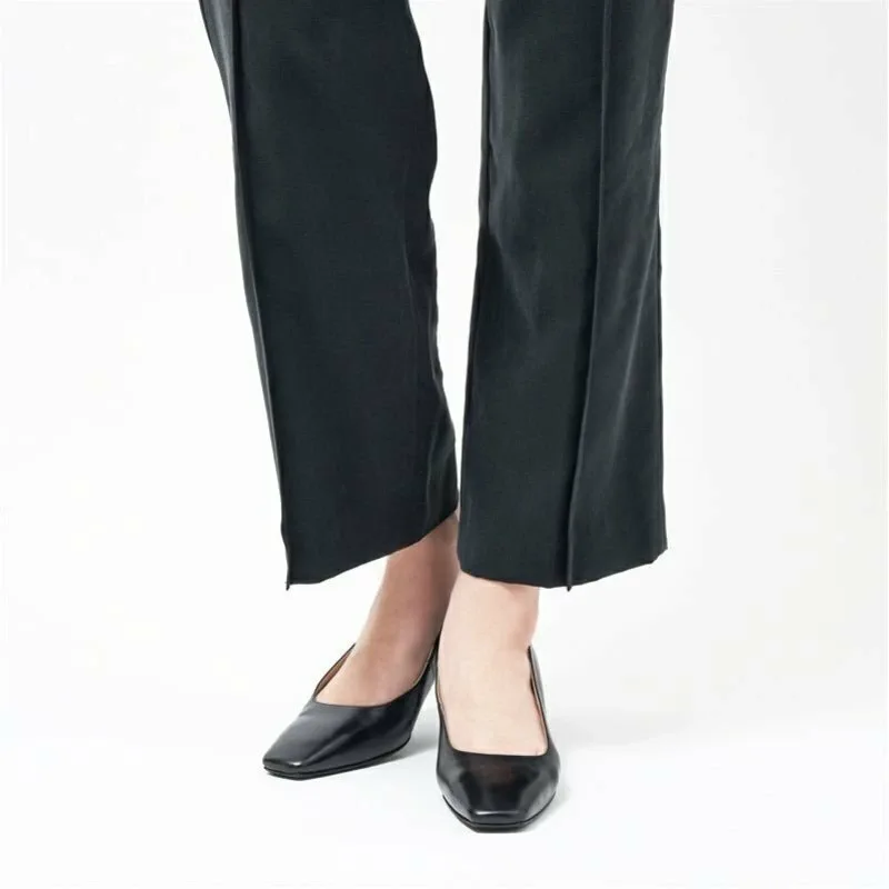 Представляем новую колодку с квадратным носком и каблуком высотой 5 см. Мы создали изящный, но красивый силуэт, соответствующий последним тенденциям. Сочетание расклешенного каблука создает стильный, но не слишком модный образ, делая эти простые туфли универсальным выбором для любого случая. Резиновая подошва изготовлена из высококачественной итальянской телячьей кожи, что делает эту пару обуви практичной и элегантной.