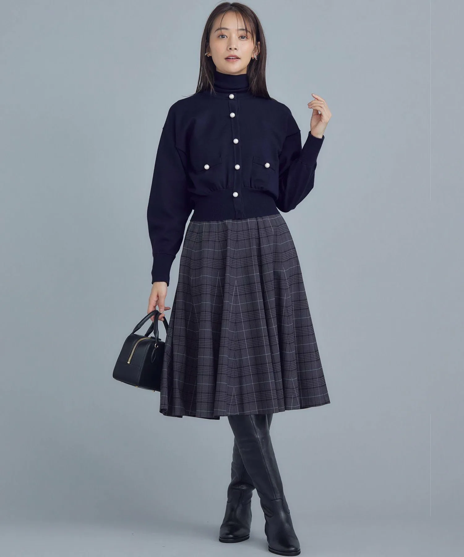 Крупные пуговицы с перламутровым эффектом и укороченная длина добавляют кардигану нужной доли нежности, создавая ощущение жакета.