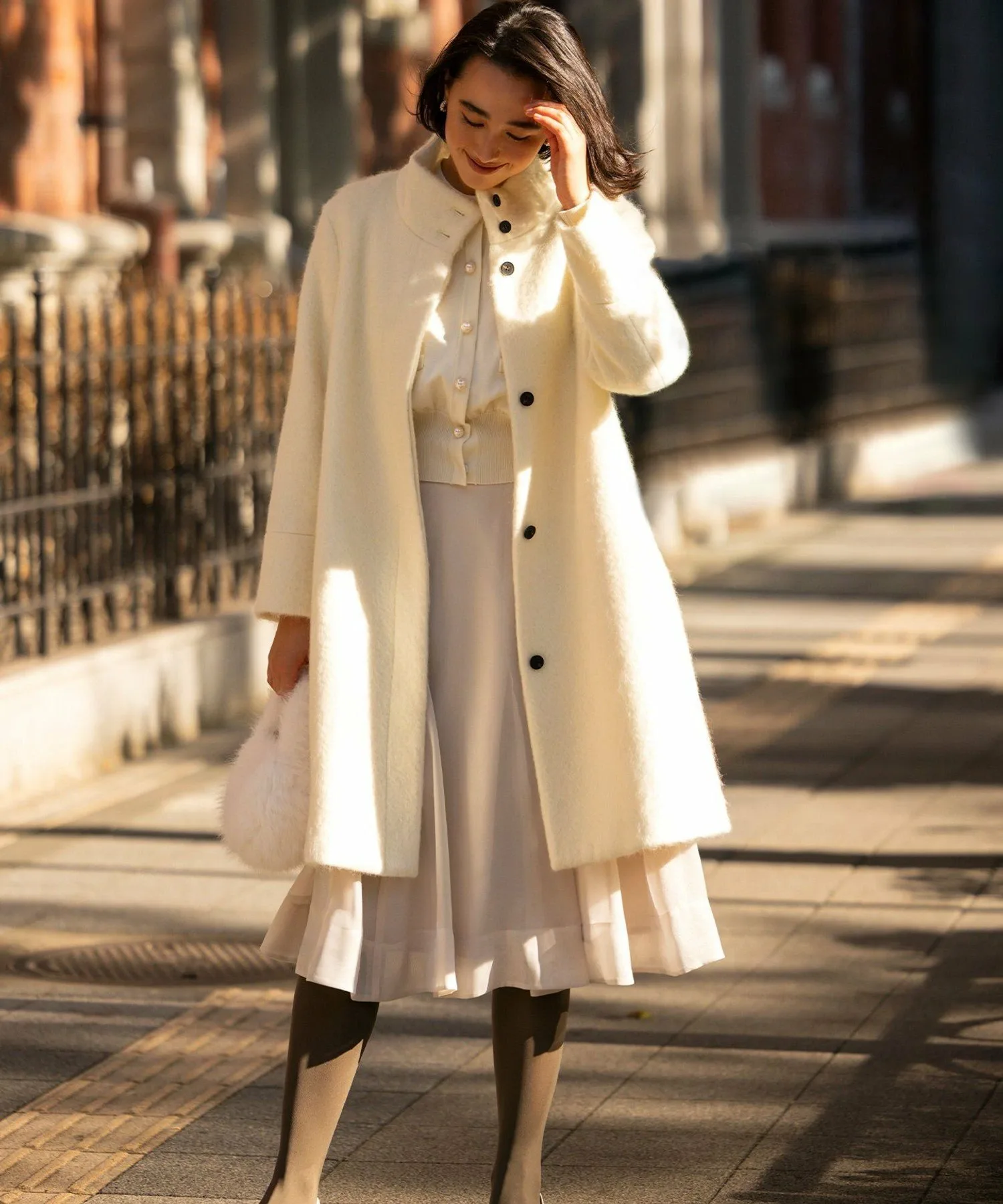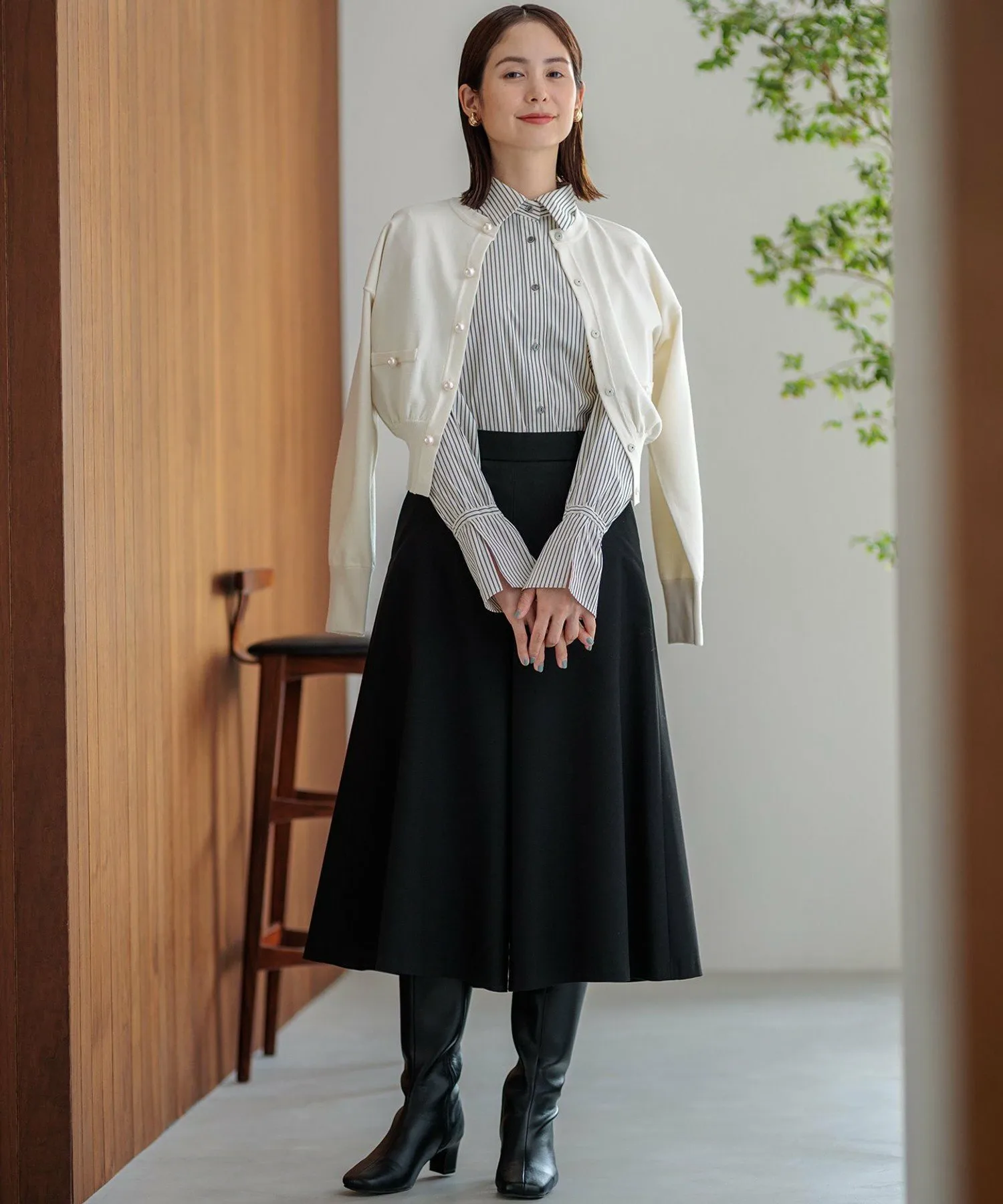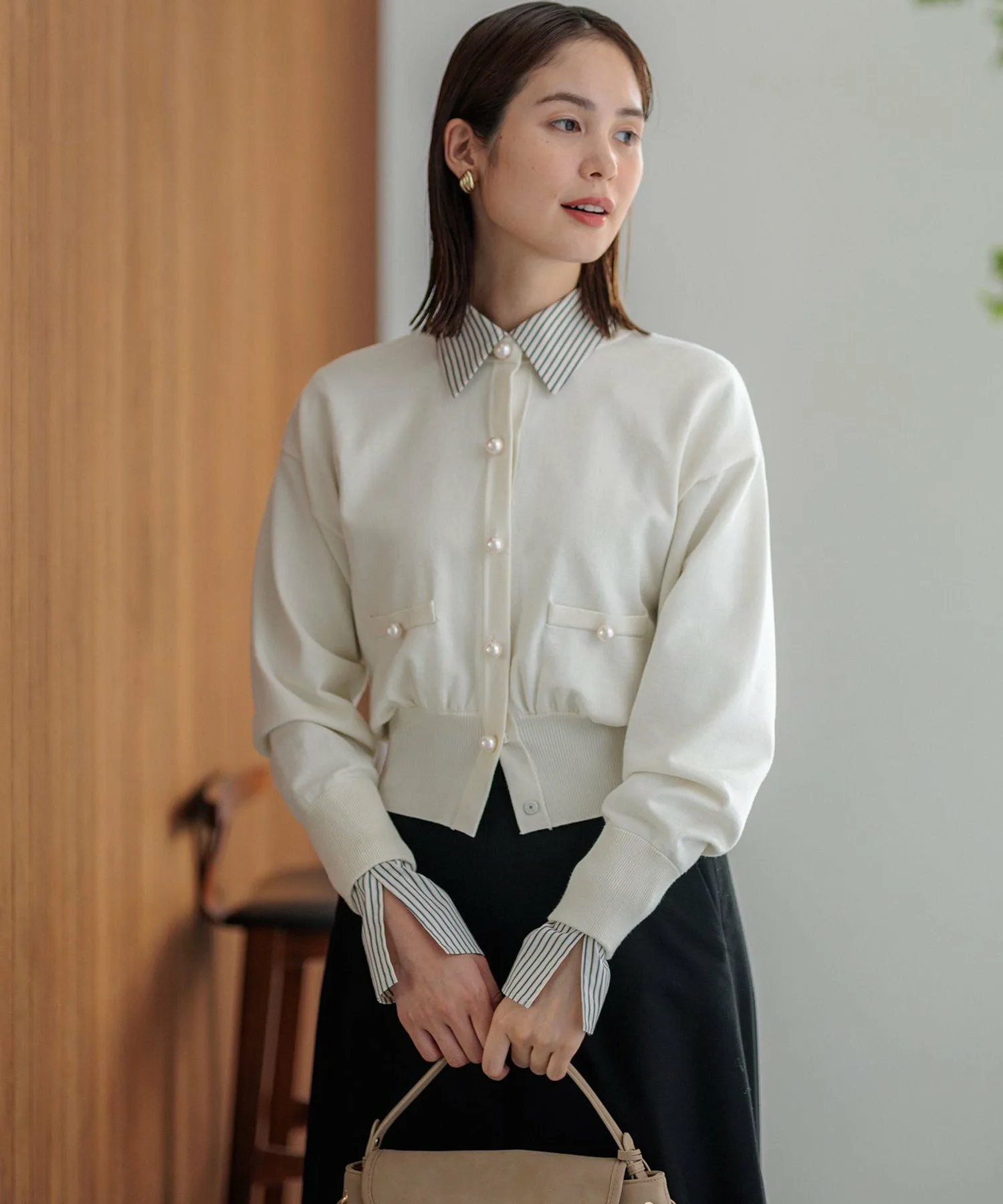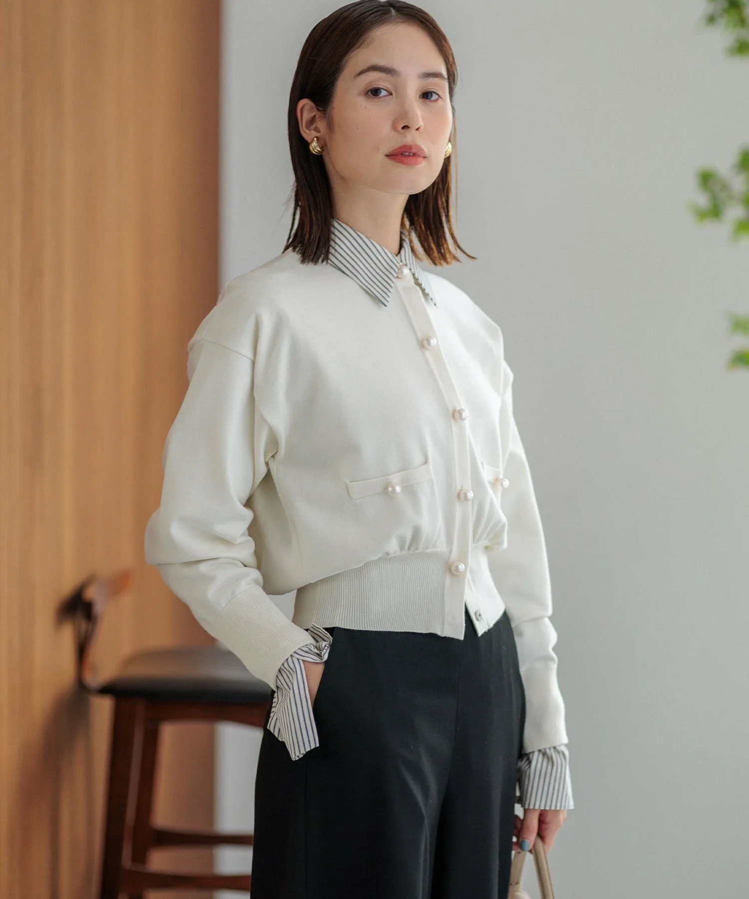 Крупные пуговицы с перламутровым эффектом и укороченная длина добавляют кардигану нужной доли нежности, создавая ощущение жакета.
