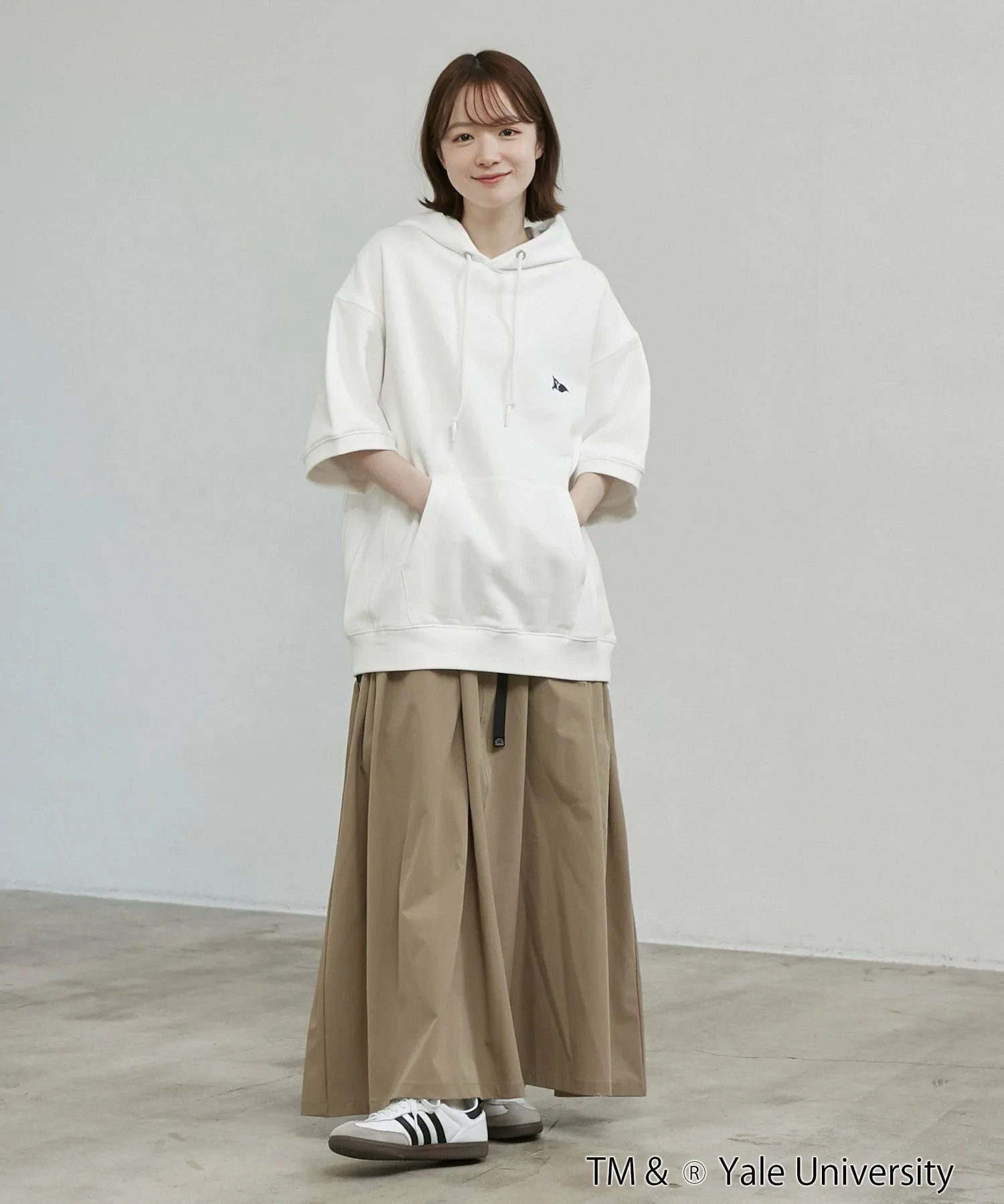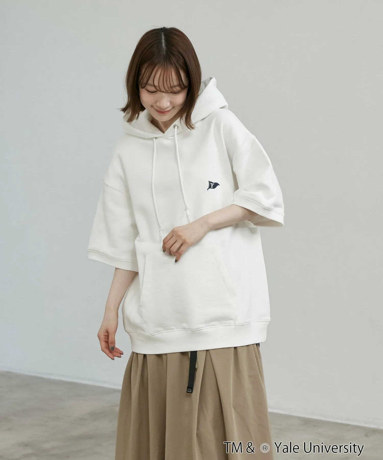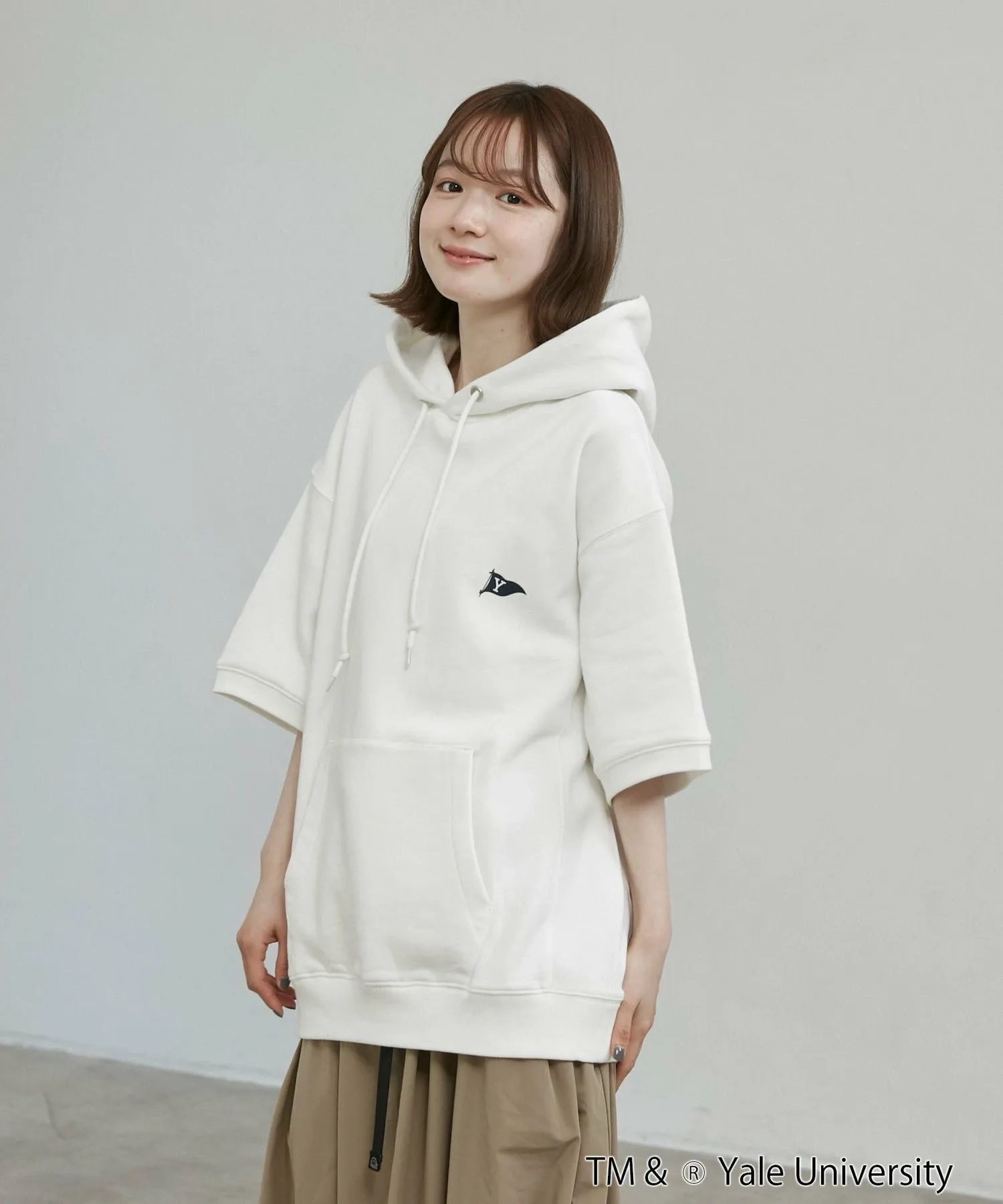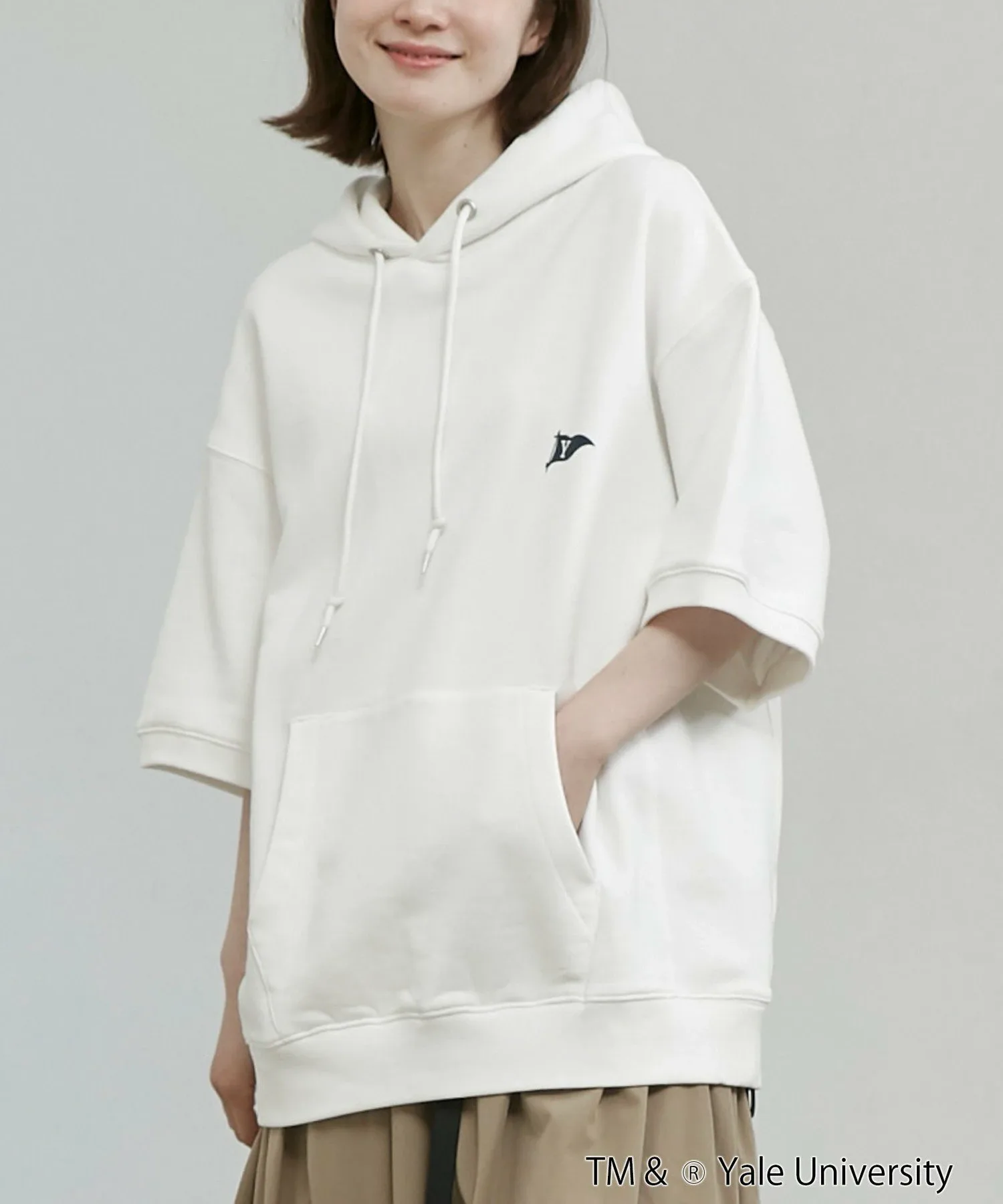 Студенческая одежда для свежего образа Эксклюзивная серия YALE: Толстовка, футболка (75256030442), толстовка, шорты (75456030063), футболка с принтом (75256030444) Дизайн/Материал: Толстовка с короткими рукавами, эксклюзивно представленная в YALE, которую можно носить как самостоятельно, так и в сочетании с другой одеждой. Дизайн в университетском стиле: флаг на левой стороне груди и весло на спине. Изготовлена из хлопкового флисового материала. Идеально подходит в качестве самостоятельной вещи для начала лета. Свободный силуэт со спущенными плечами и изысканный, простой дизайн позволяют легко сочетать эту вещь с широким спектром нарядов. Рекомендуется как для мужчин, так и для женщин.