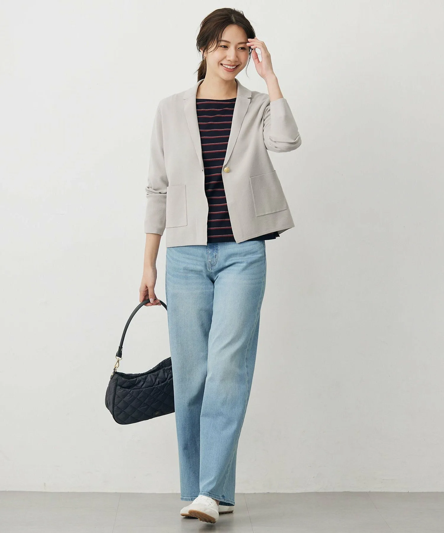 Дизайн: Идеально подходящая для переходных сезонов, эта трикотажная куртка создает изысканный образ всего лишь с помощью пледа. Эта популярная вещь весенне-летнего сезона теперь доступна в осенне-зимних версиях. Несмотря на свободный крой, куртка имеет аккуратный, сбалансированный силуэт, поэтому вы можете носить ее, не чувствуя себя громоздкой. Воротник аккуратно подворачивается, создавая чистый, элегантный вид вокруг лица. Сохраняя изысканный вид куртки, она также сочетает в себе мягкость и комфорт трикотажа для расслабленного ощущения. Она также не мнется и легко стирается вручную дома, что делает ее отличным выбором для простого ухода. Эта простая накидка, идеально подходящая для перехода между сезонами, отлично подойдет для самых разных случаев, от формальных до повседневных.