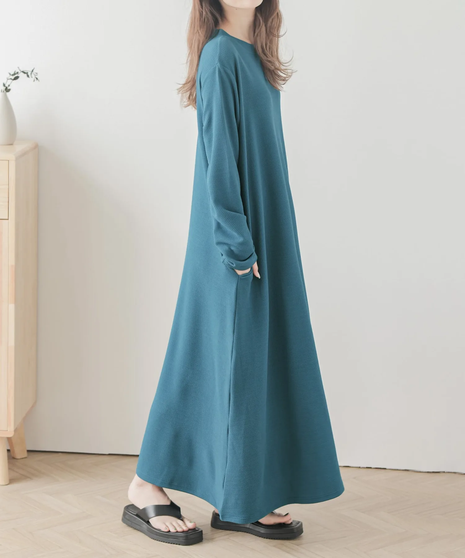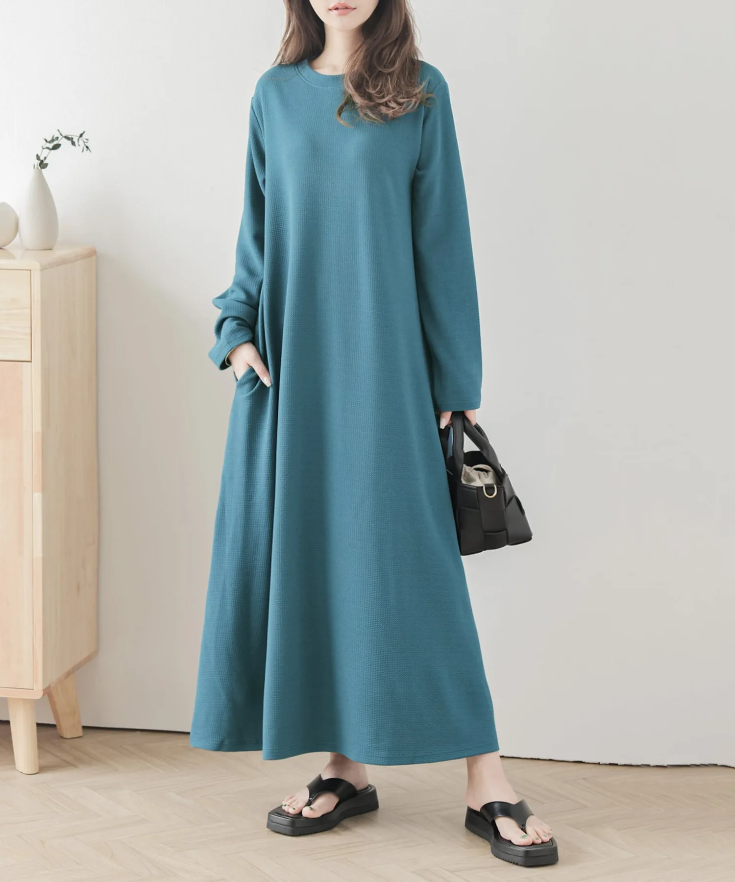 Расклешенное платье, которое по ощущениям напоминает толстовку, но выглядит великолепно.