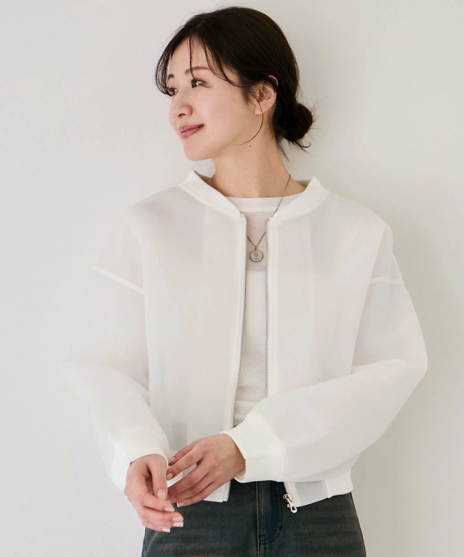 Текстура денима и ощущение легкости и прозрачности. Прозрачная блузон из денима, напоминающего картон, для городской моды. [Дизайн и силуэт]