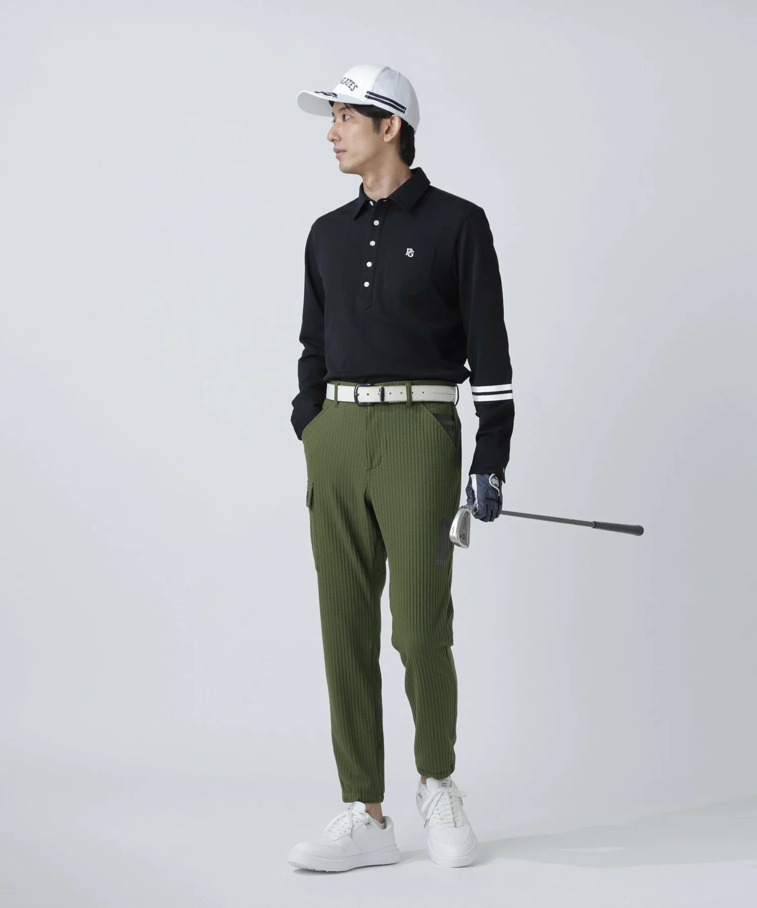Изготовлен из приятного на ощупь и хорошо тянущегося материала, он удобен для ношения на поле для гольфа.