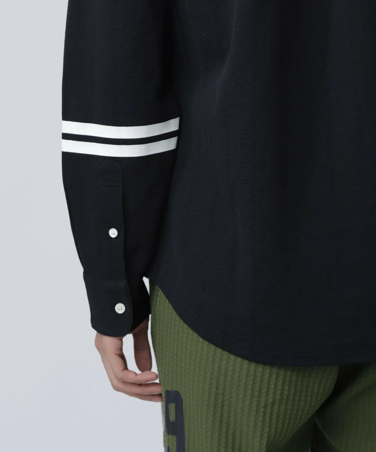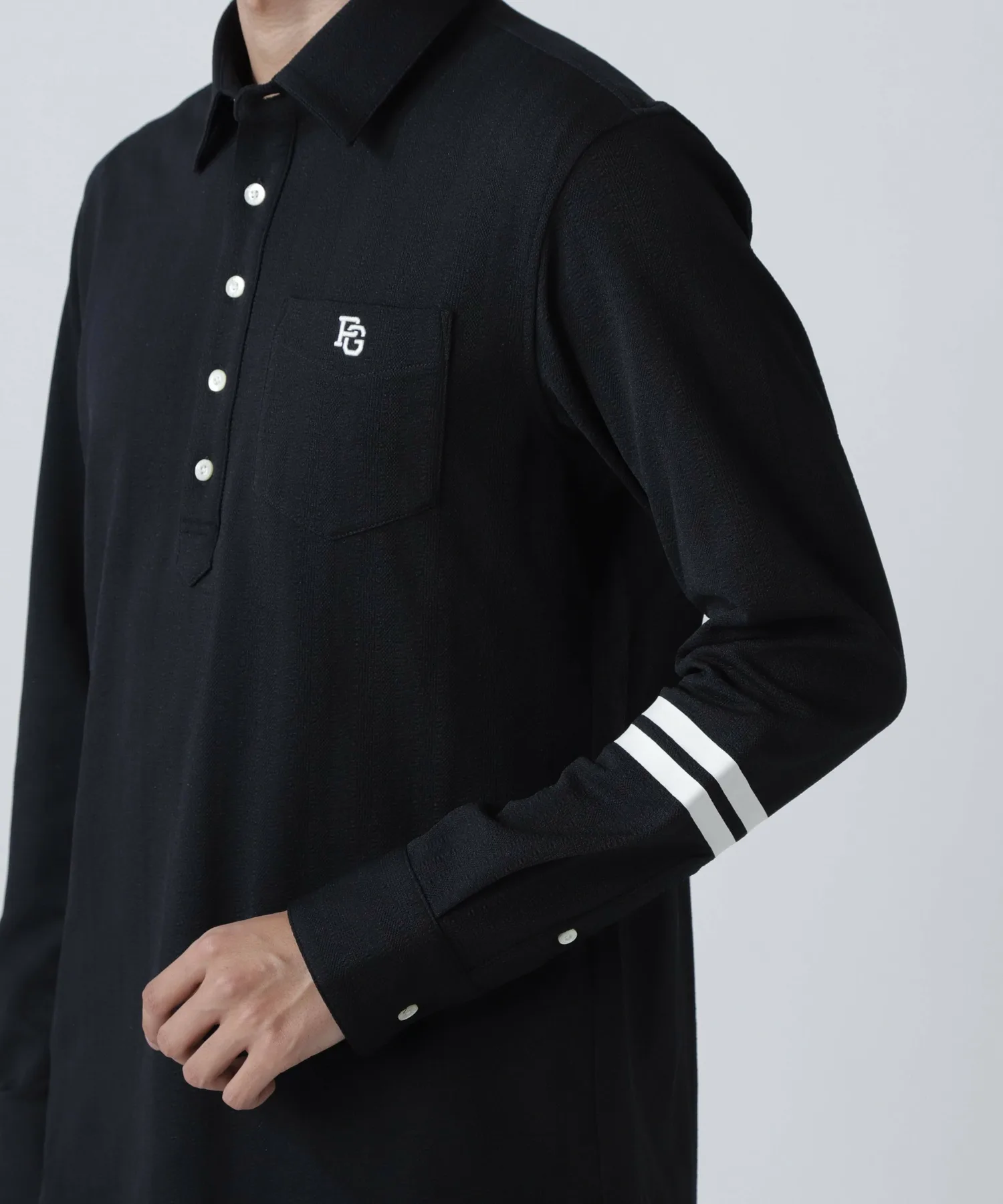 Линии на рукавах и логотип на спине придают ему спортивный вид. Это длиннорукавный пуловер с нагрудным карманом.