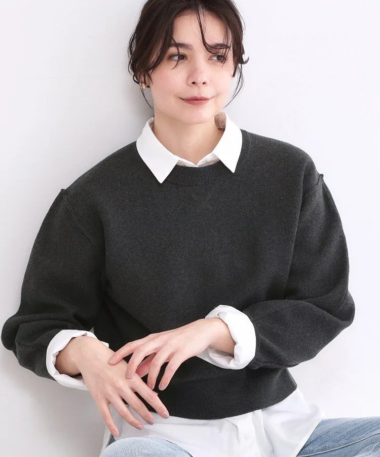 - Трикотаж в стиле толстовки с едва заметной ластовицей на вырезе горловины.