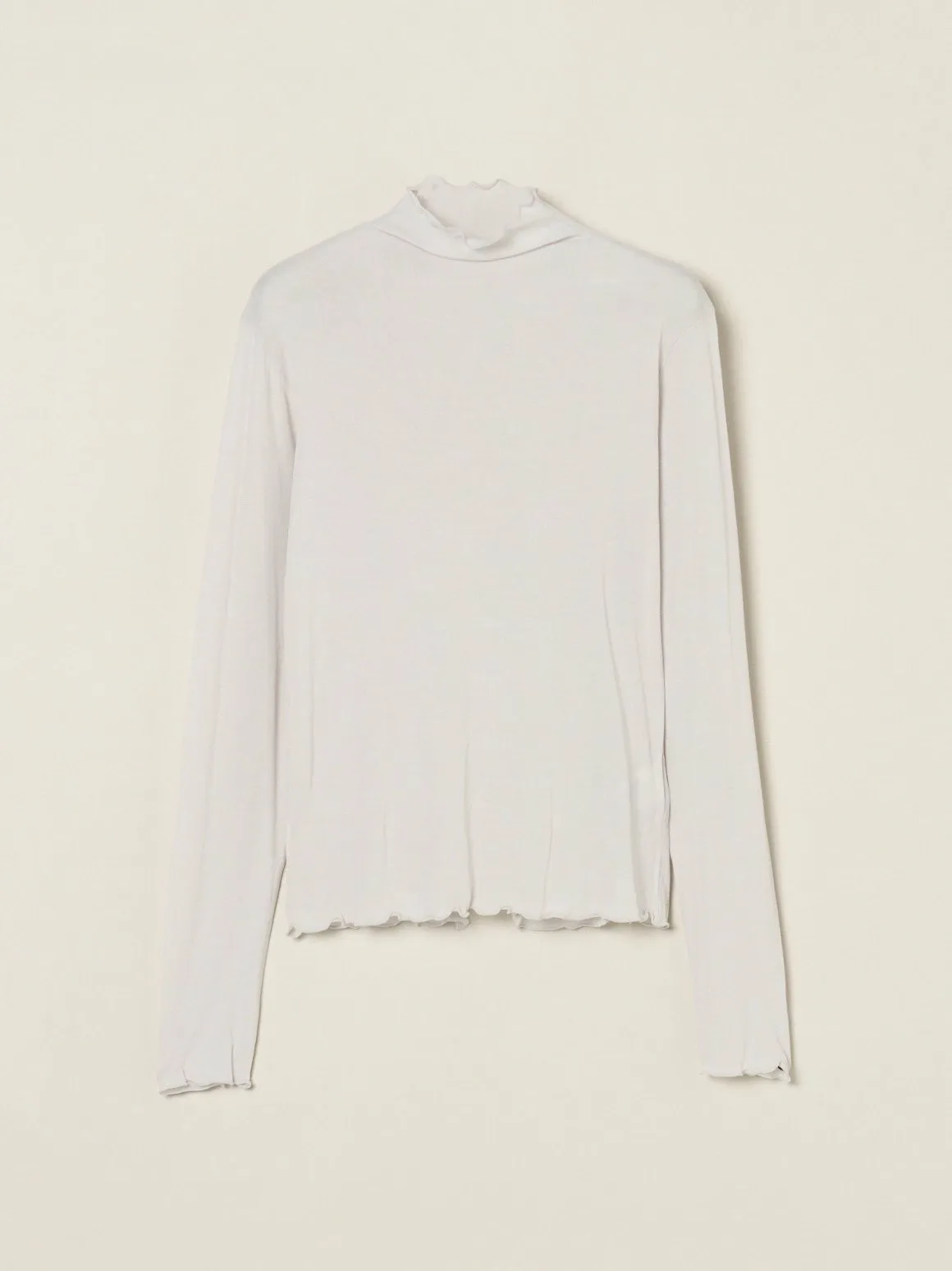 Версия с высоким воротником, изготовленная из популярного мягкого, полупрозрачного хлопкового материала.