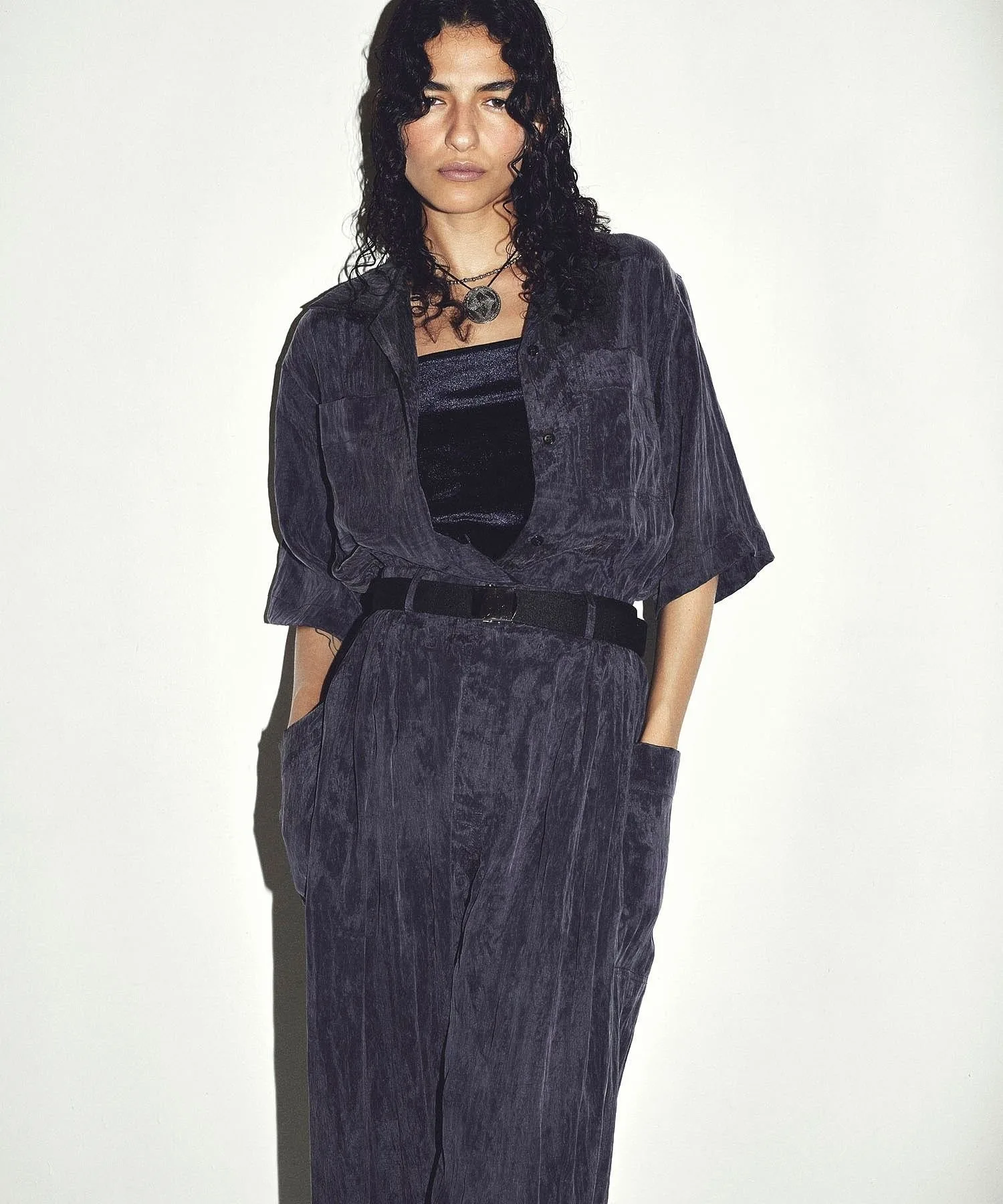 - Изготовлен из фибрилового материала, обладающего нежным блеском и гладкой текстурой, он создает непринужденный, но элегантный образ.