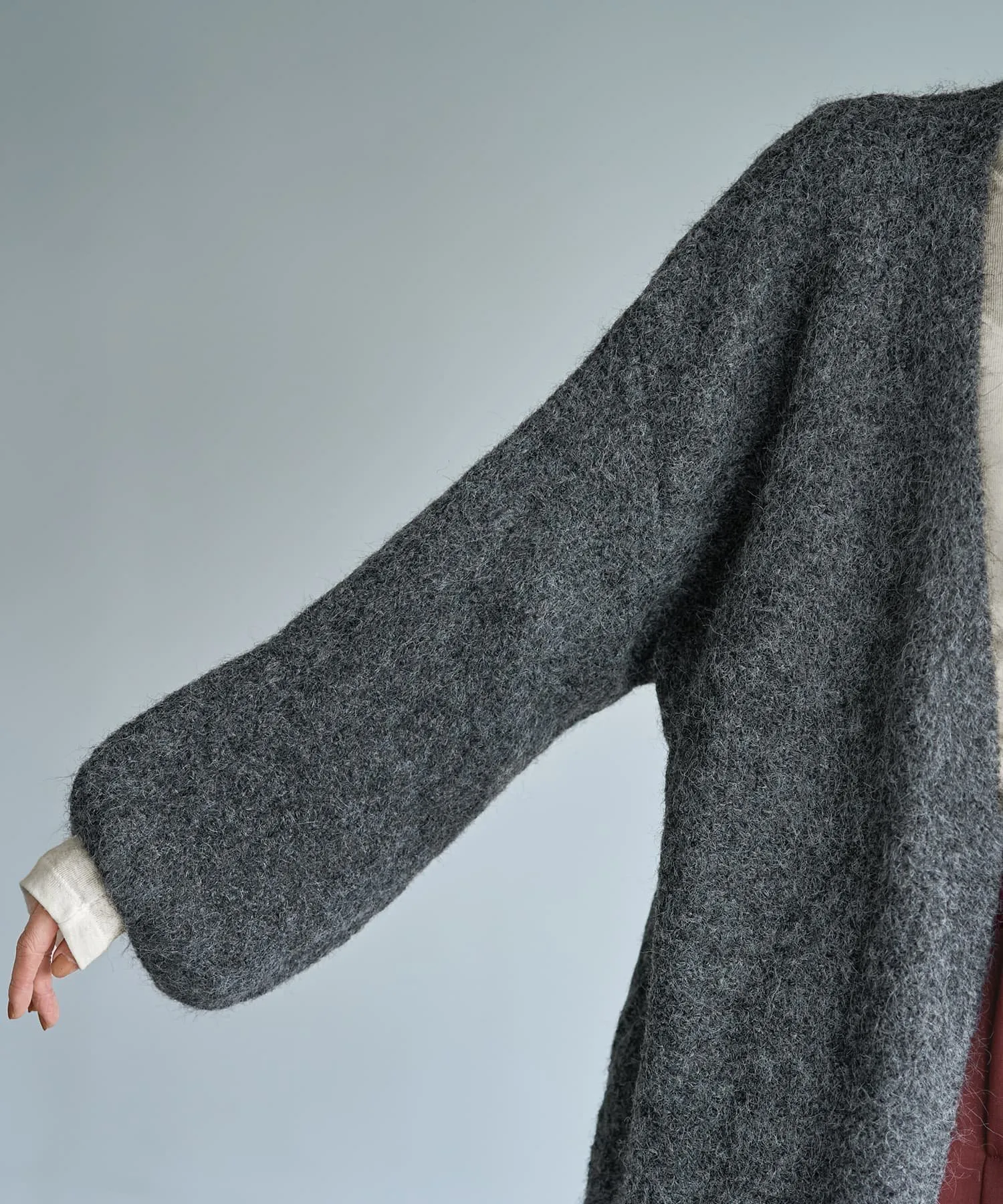 В отличие от своего внешнего вида, он не слишком толстый, что делает его удобным для надевания зимнего пальто. Его можно носить как куртку или кардиган зимой и как легкую верхнюю одежду ранней весной.