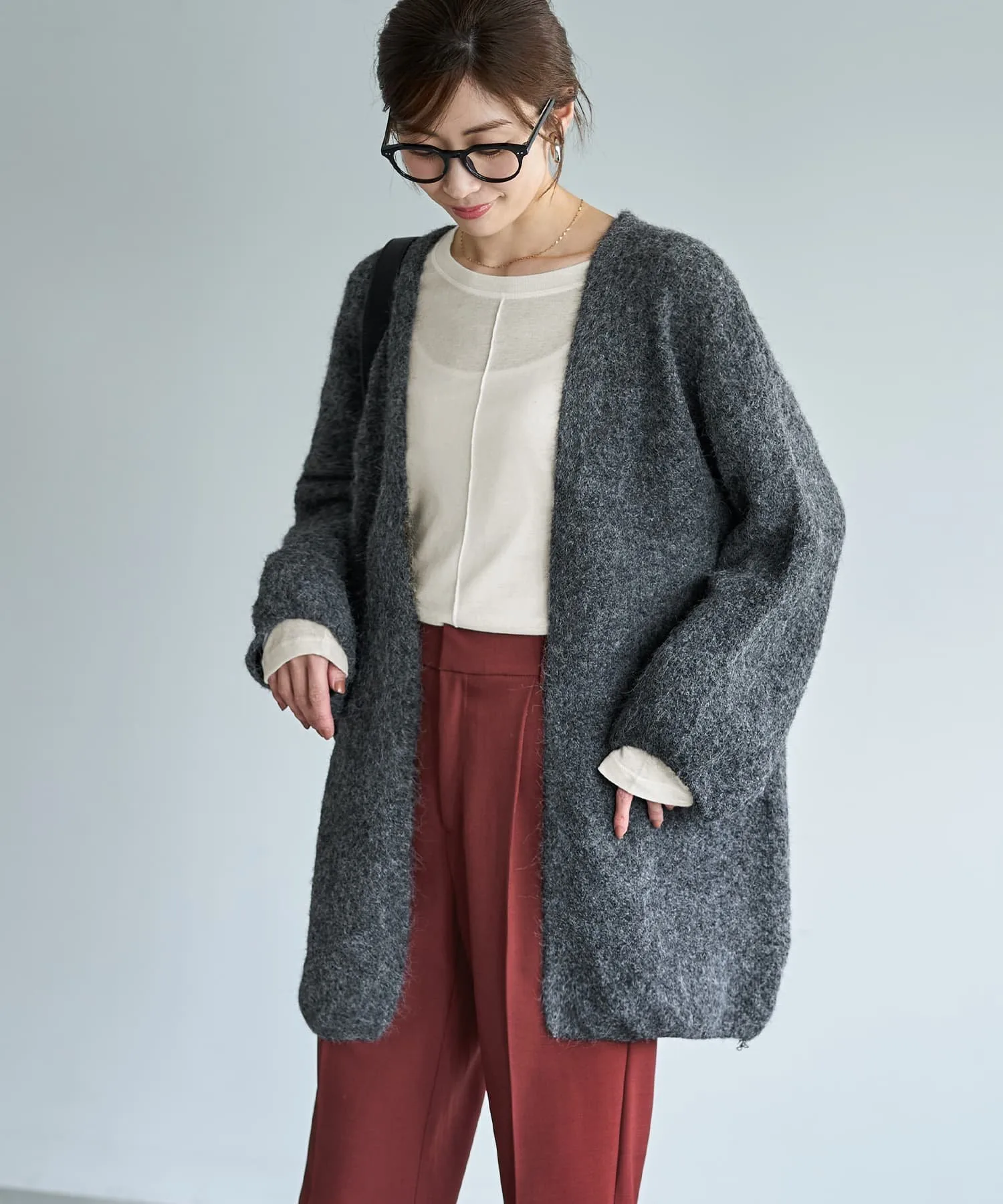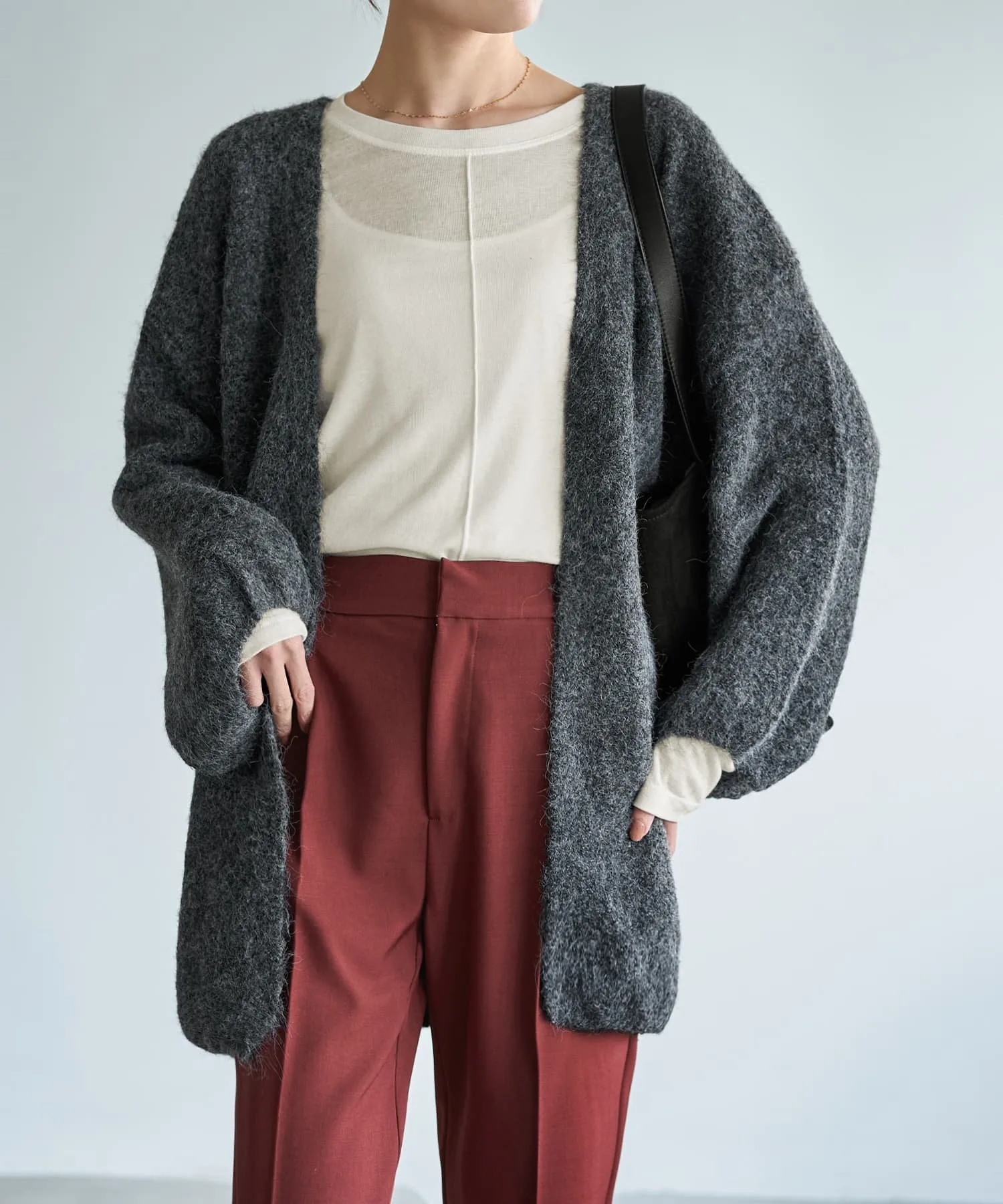 Этот кардиган-топ без пуговиц идеально сочетается с платьями на пуговицах или нарядами с деталями спереди. Свободные рукава позволяют легко сочетать его с нарядами с рукавами, которые иначе было бы сложно надеть поверх.