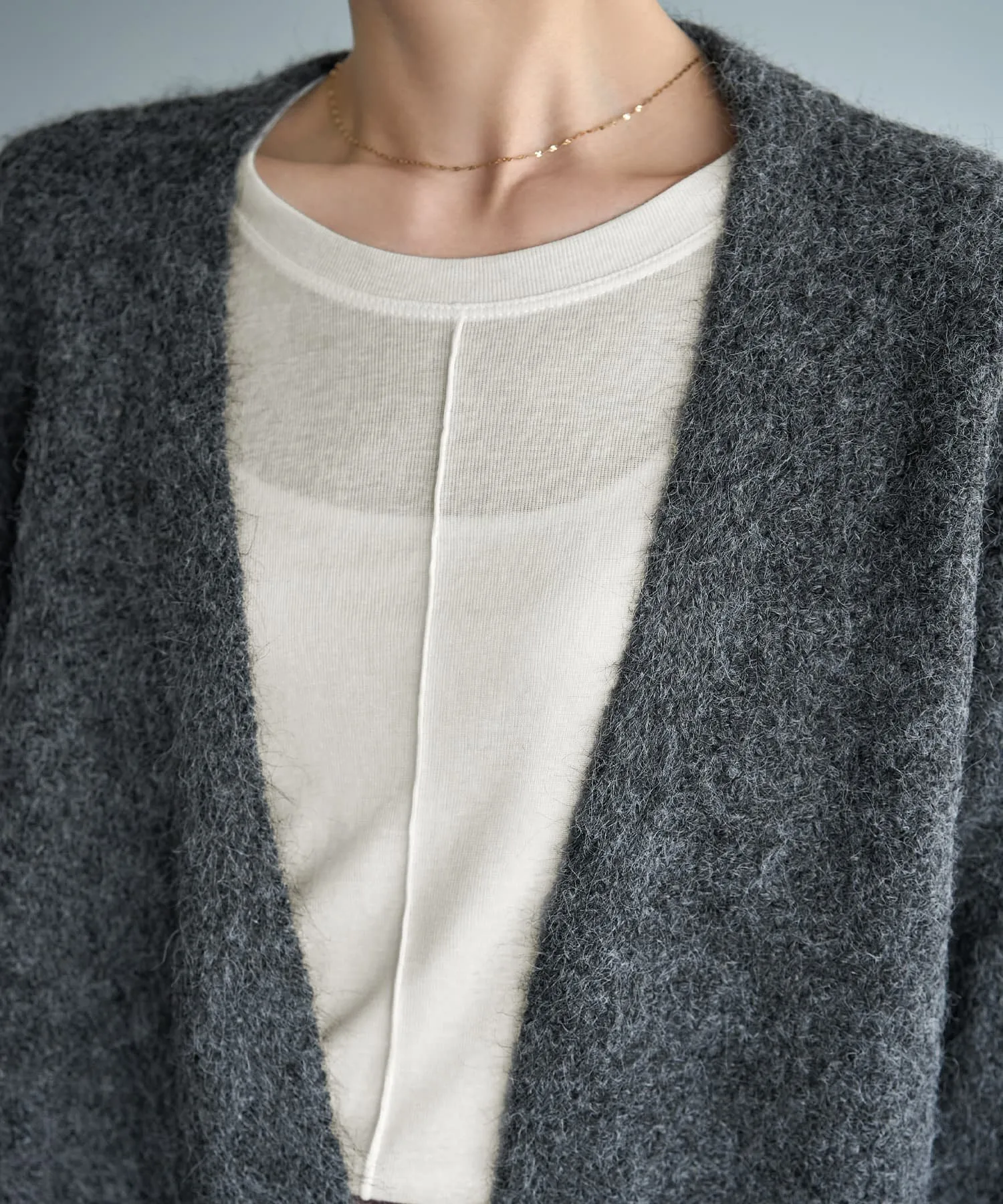 Мягкая, струящаяся текстура этого материала, похожего на мохер, создает женственный и нежный образ, а сам материал невероятно приятен на ощупь.