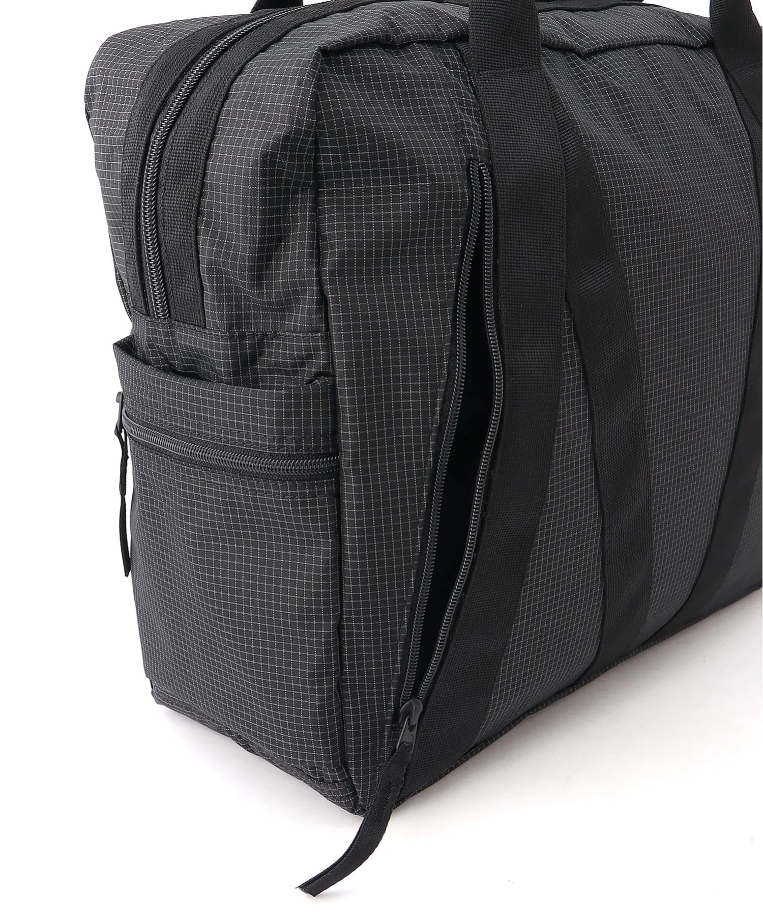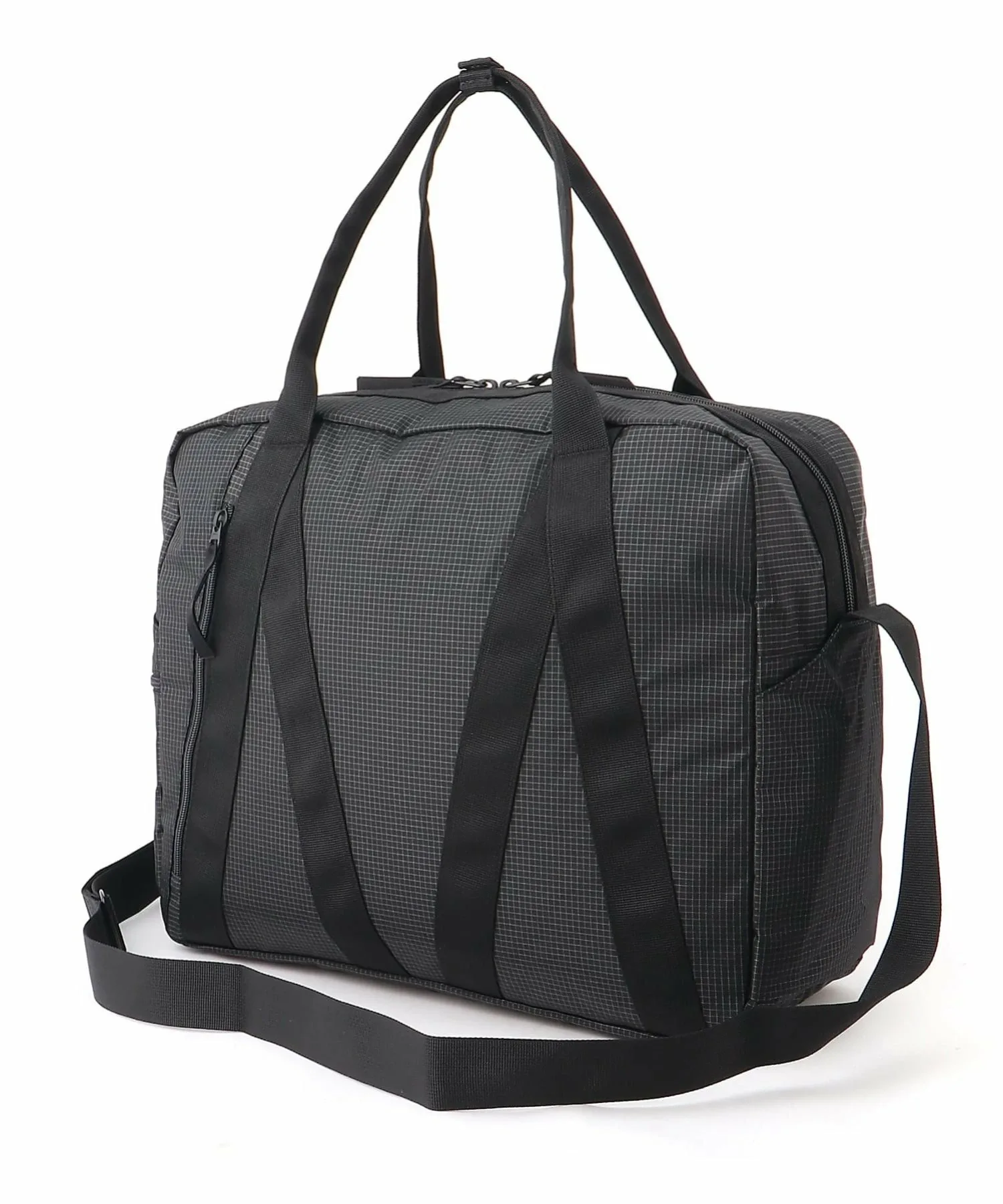 Эта дорожная сумка изготовлена из прочного нейлона с тонкой сетчатой текстурой, создающей выразительный образ.
