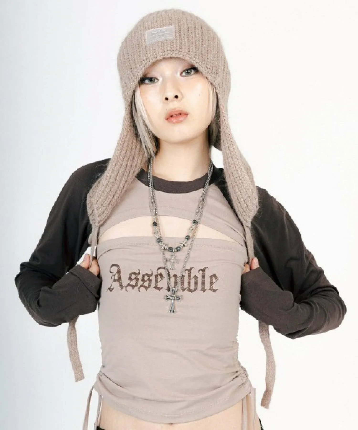 Тройной топ, который можно носить как длинную футболку, укороченную длинную футболку или как топ без рукавов.
