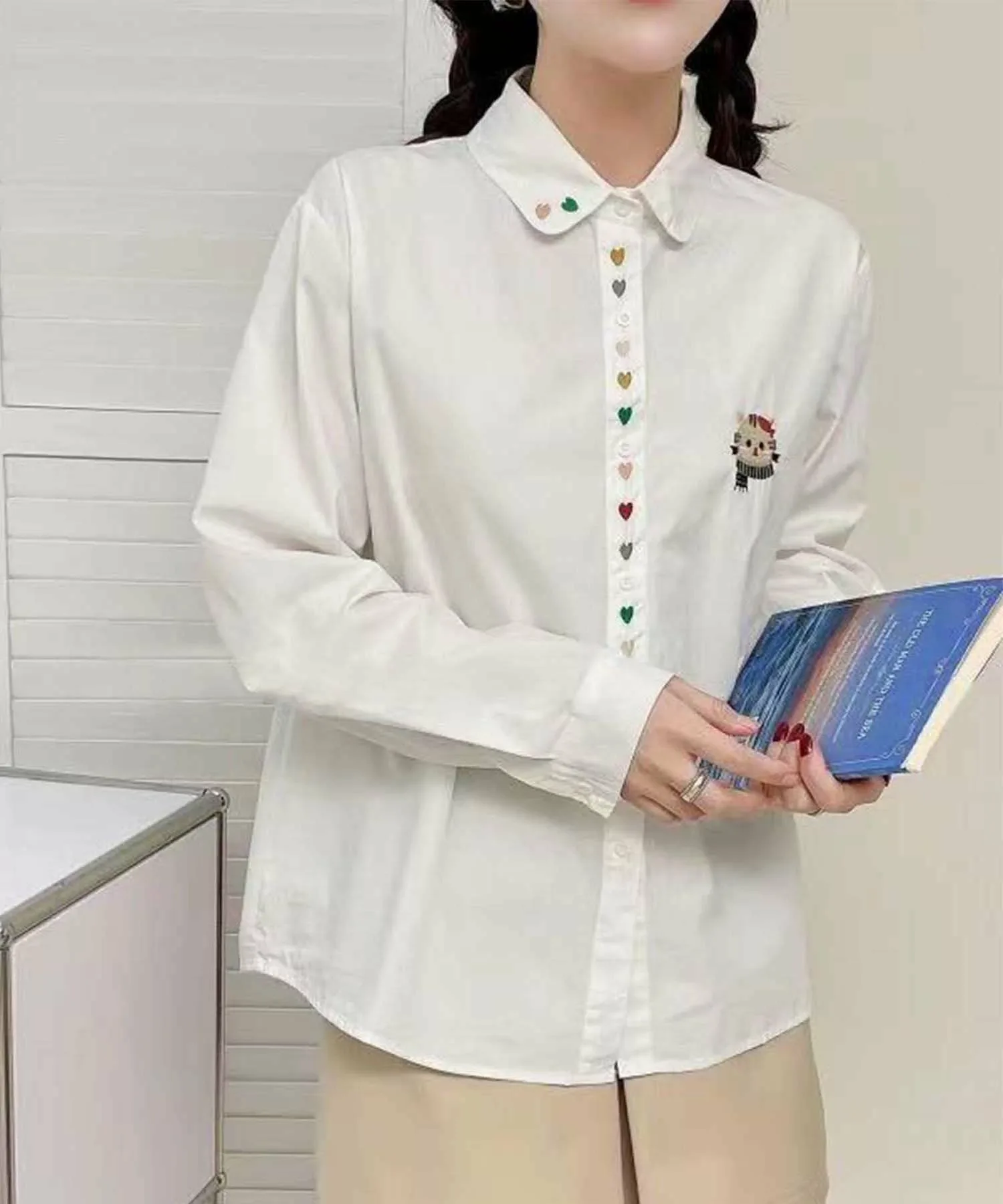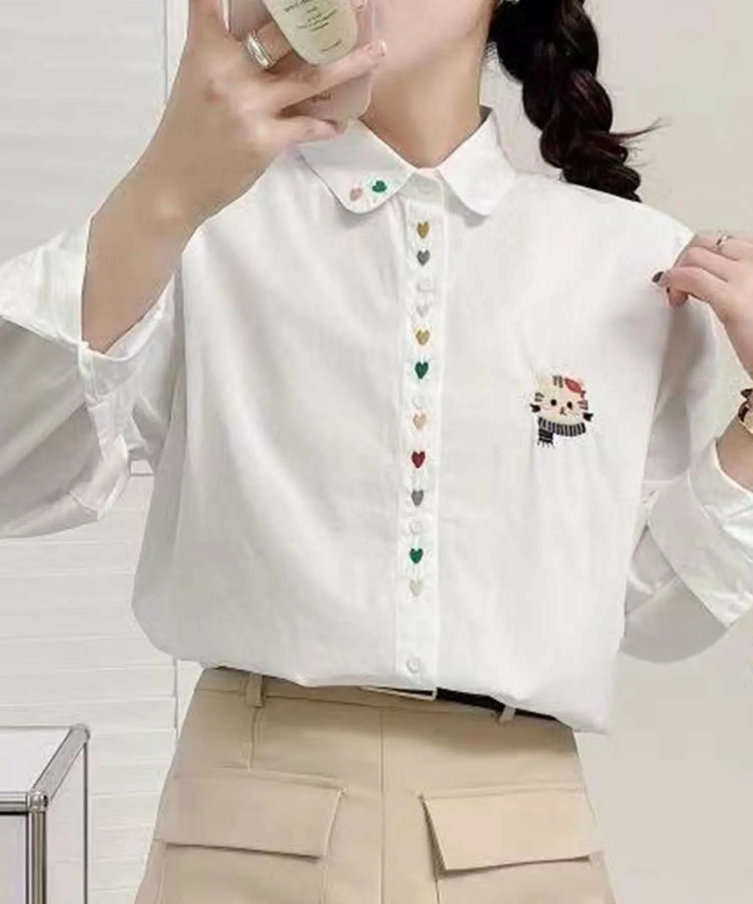 Эта рубашка с длинными рукавами украшена вышивкой на воротнике и планке. Свободный силуэт обеспечивает комфортную и непринужденную посадку. Вышивка подчеркивает простой дизайн, добавляя нотку элегантности и создавая стильное впечатление.