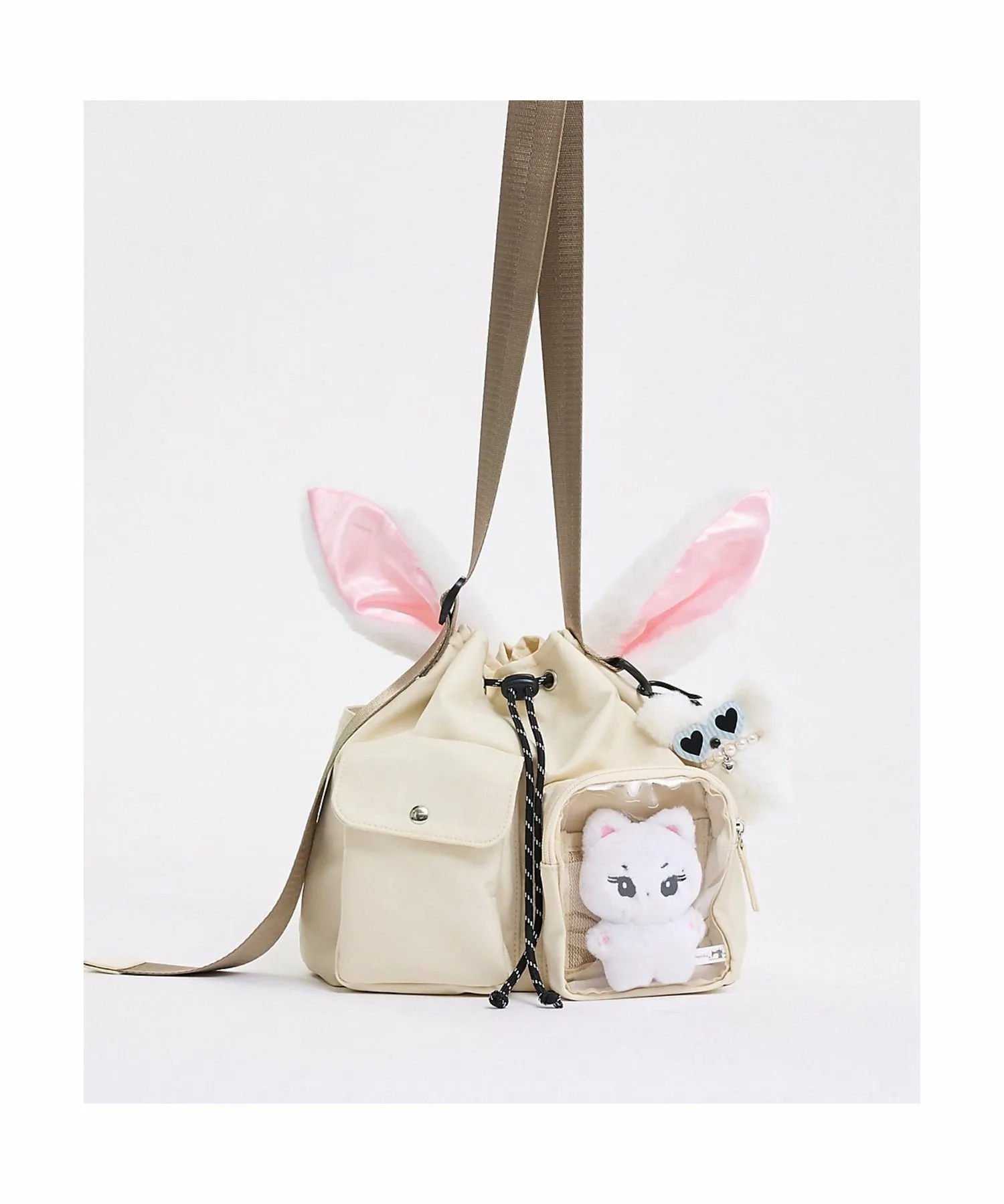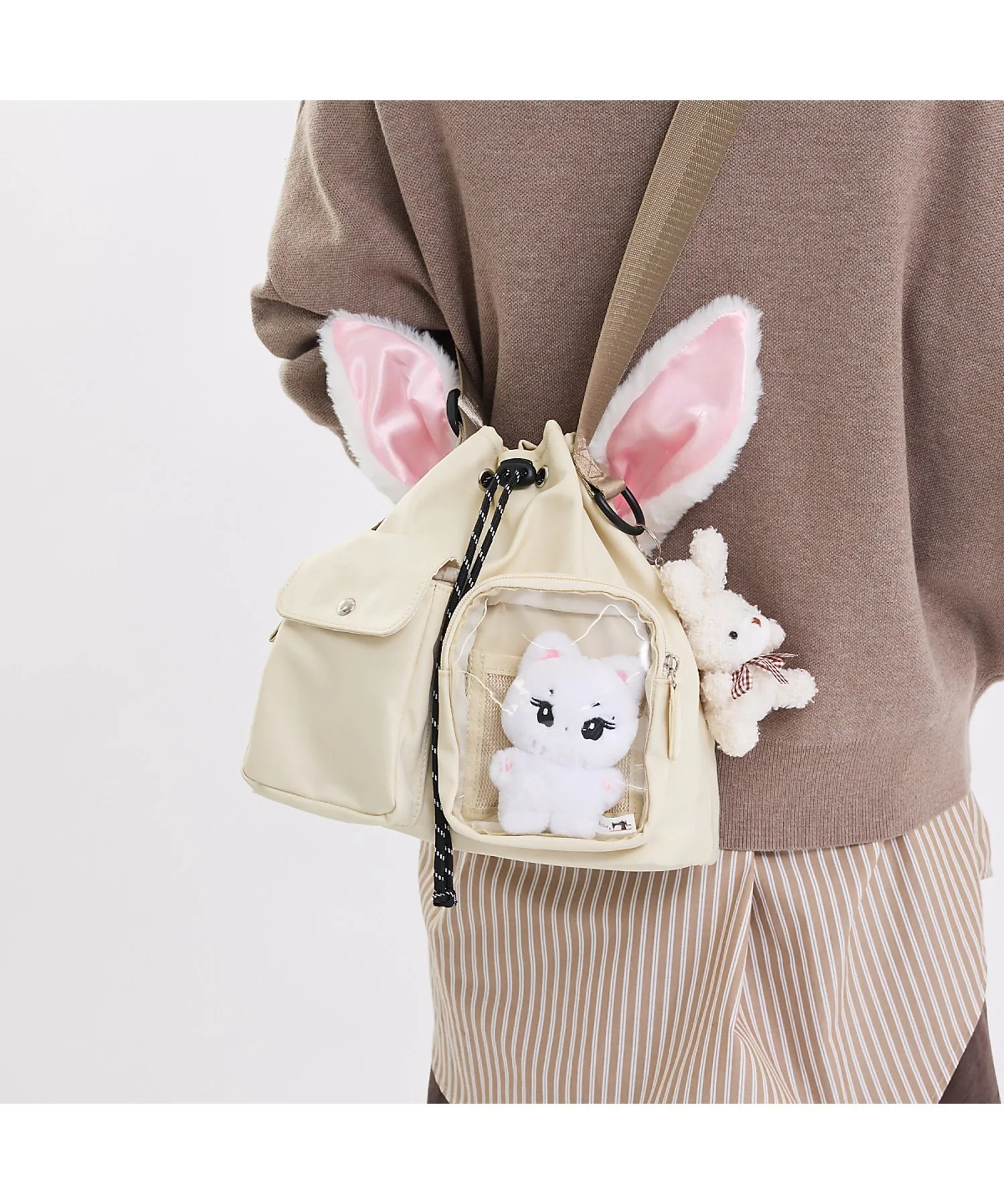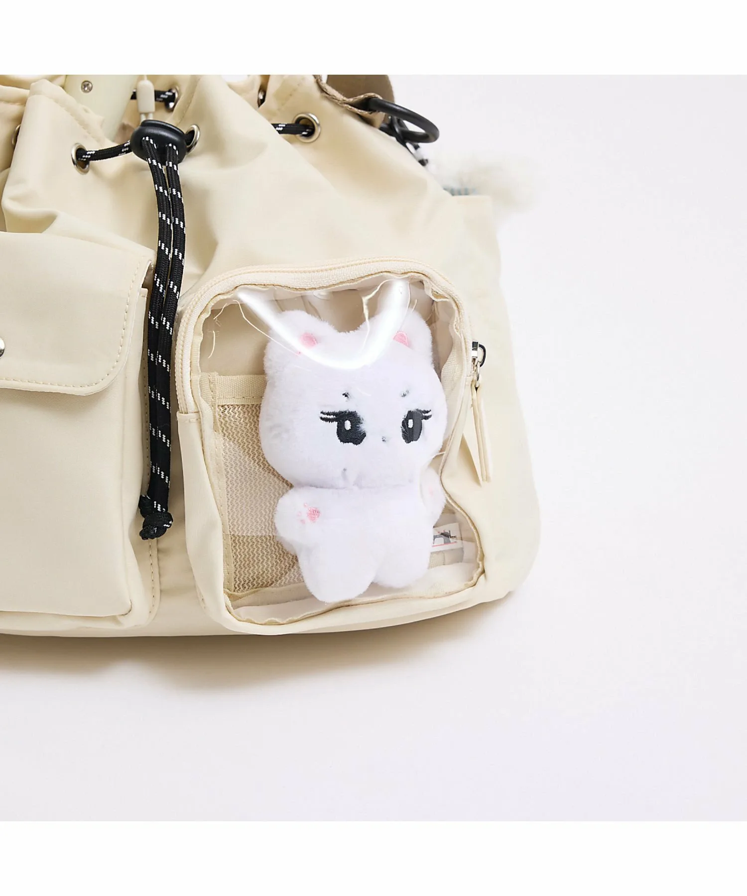 ・Внешний прозрачный карман (ширина 11 см, высота 13 см, глубина 4 см) вмещает ваши любимые мягкие игрушки и акриловые подставки, а также оснащен сетчатым карманом для удобного крепления значков и булавок. Также имеется удобная небольшая функция, позволяющая поместить внутрь смартфон и использовать сумку в качестве подставки для селфи◎