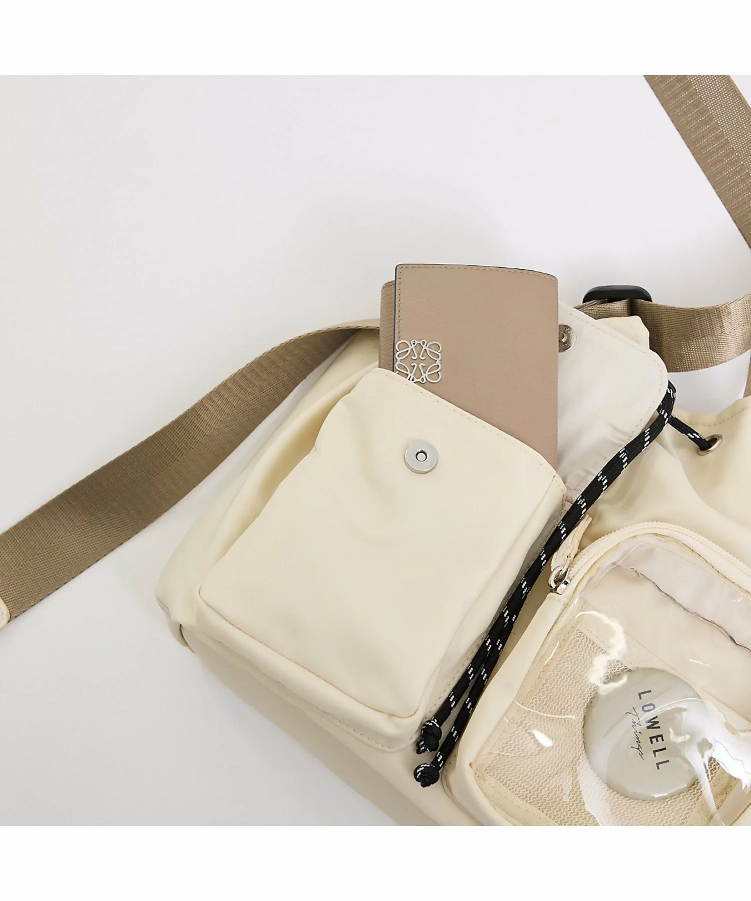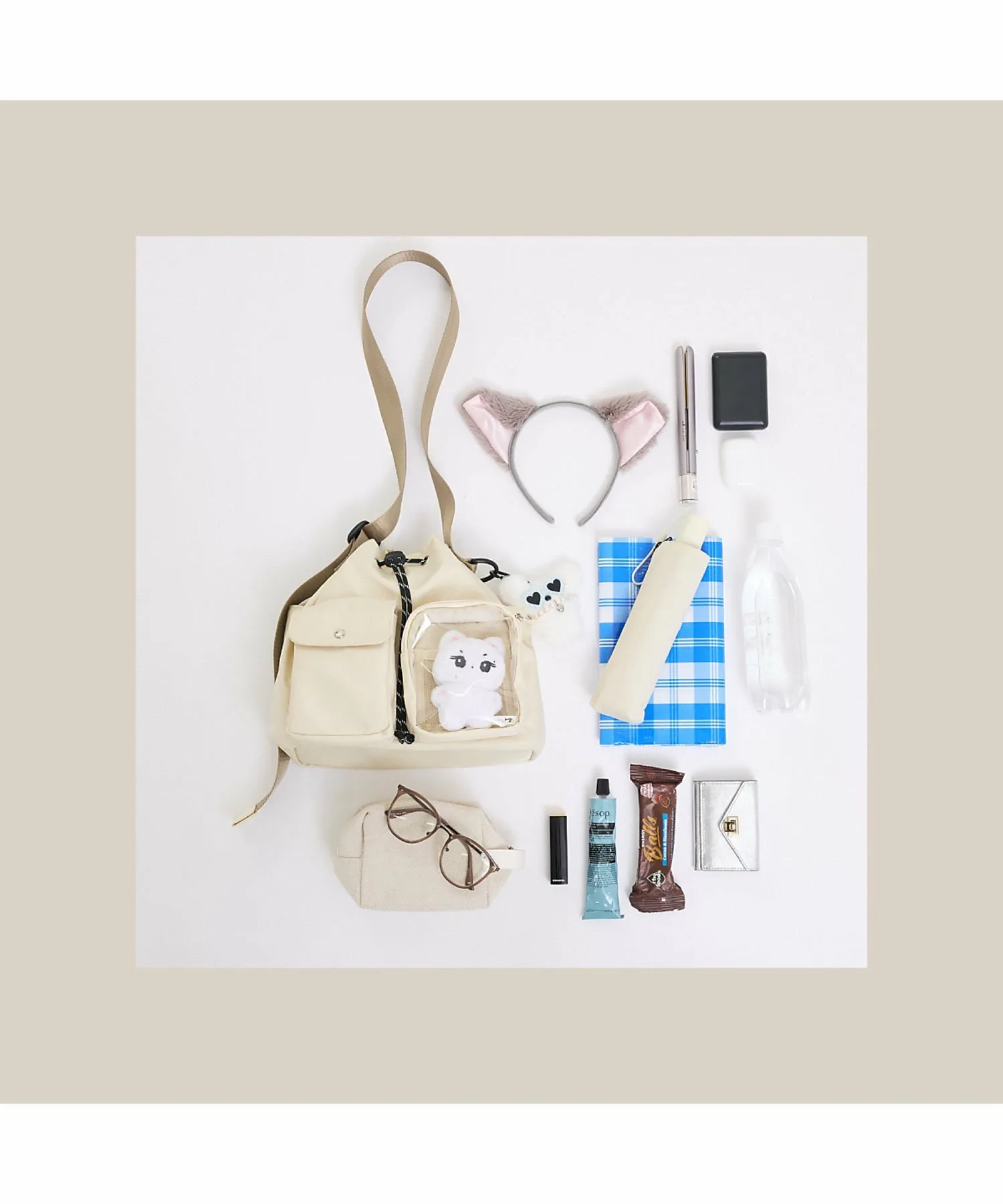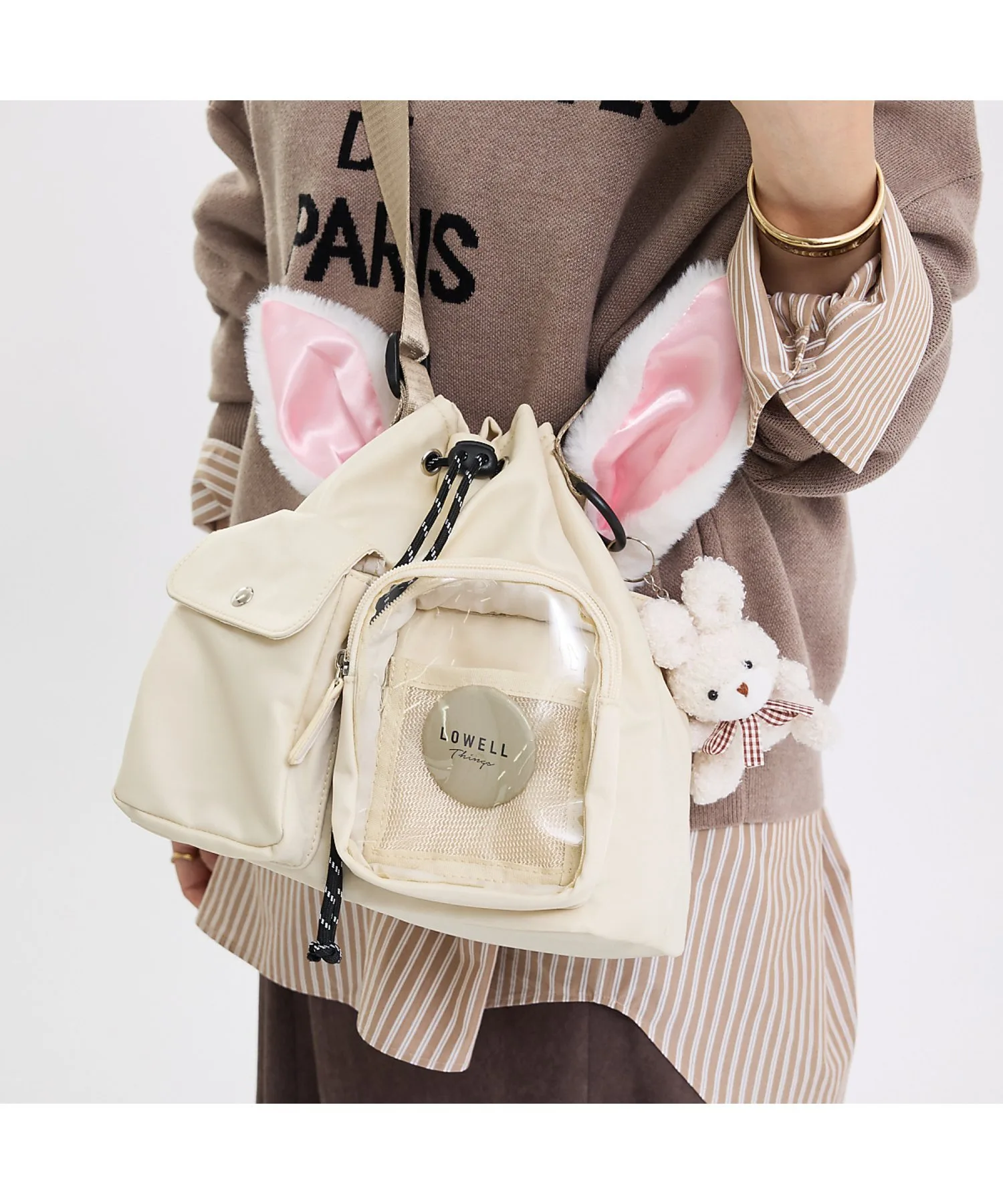 ・Внешний прозрачный карман (ширина 11 см, высота 13 см, глубина 4 см) вмещает ваши любимые мягкие игрушки и акриловые подставки, а также оснащен сетчатым карманом для удобного крепления значков и булавок. Также имеется удобная небольшая функция, позволяющая поместить внутрь смартфон и использовать сумку в качестве подставки для селфи◎