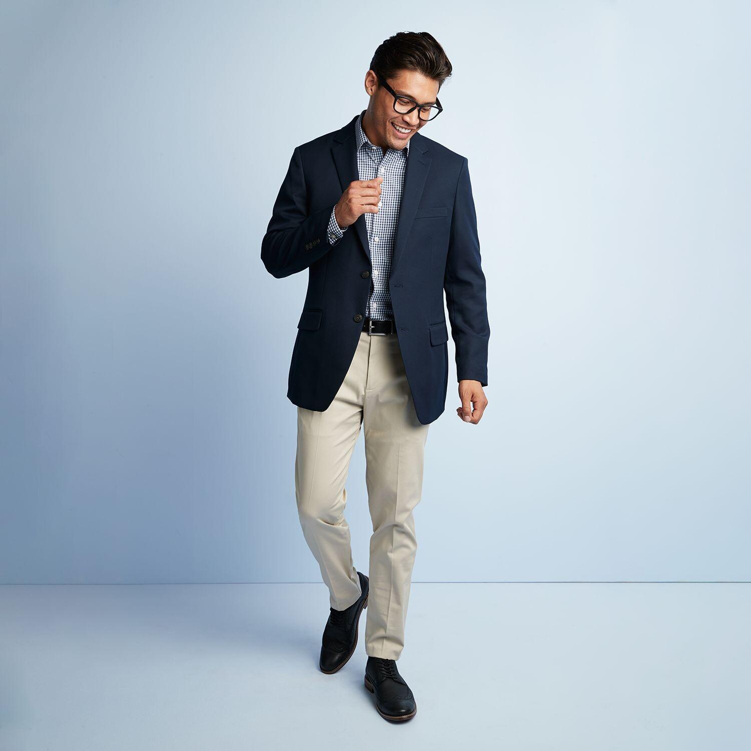 Незабываемый стиль. Этот мужской пиджак от Haggar создает изысканный образ, который не скоро забудется. Он имеет индивидуальный крой и современный вид. Эластичная ткань обеспечивает комфорт на весь день.