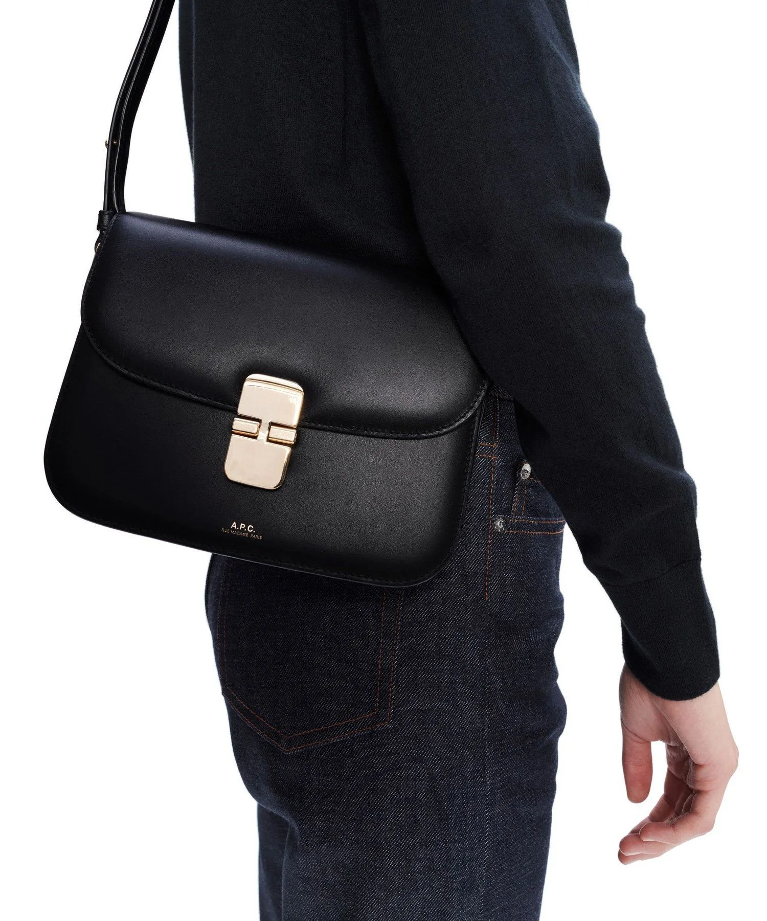 *Золотистый логотип 'APCRueMadameParis' с гравировкой.